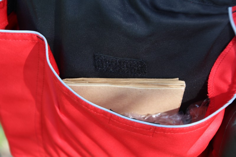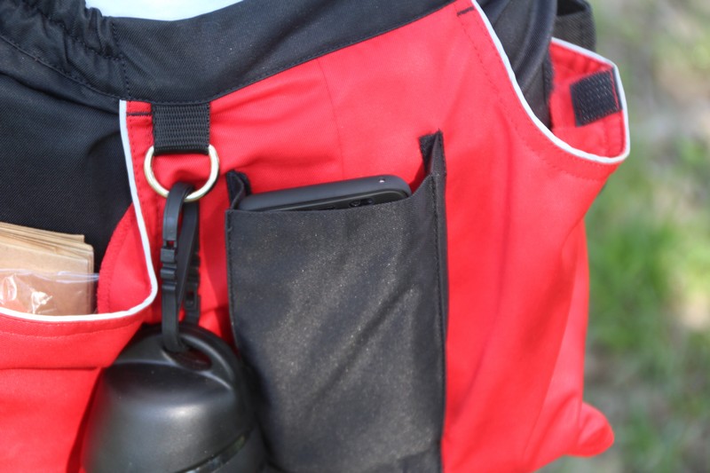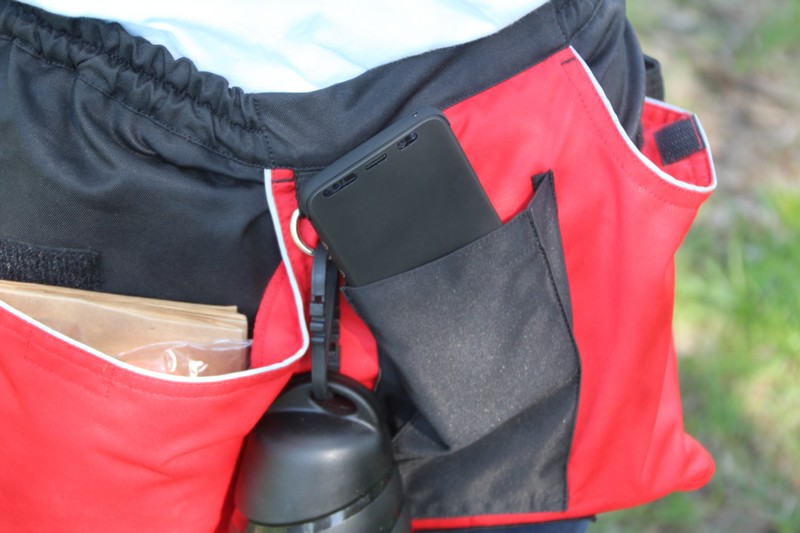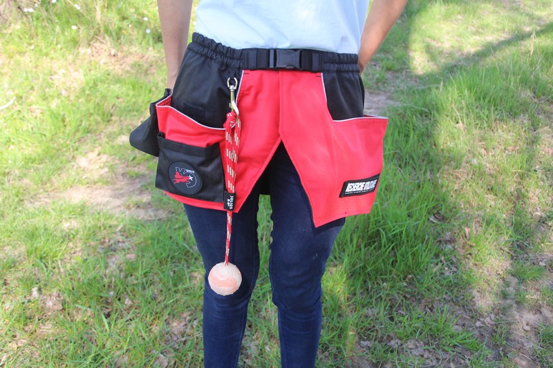 J’ai trouvé ce tablier de travail de chez Julius k9, je le trouve pratique et très bien pensé ! on peut y loger un grand nombre de choses, chaque poche se ferme avec un velcro, on trouve des crochets pour suspendre des objets, comme une gourde ! Il suffit de plonger la main pour en sortir ce qu’il nous faut.