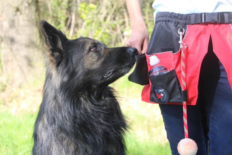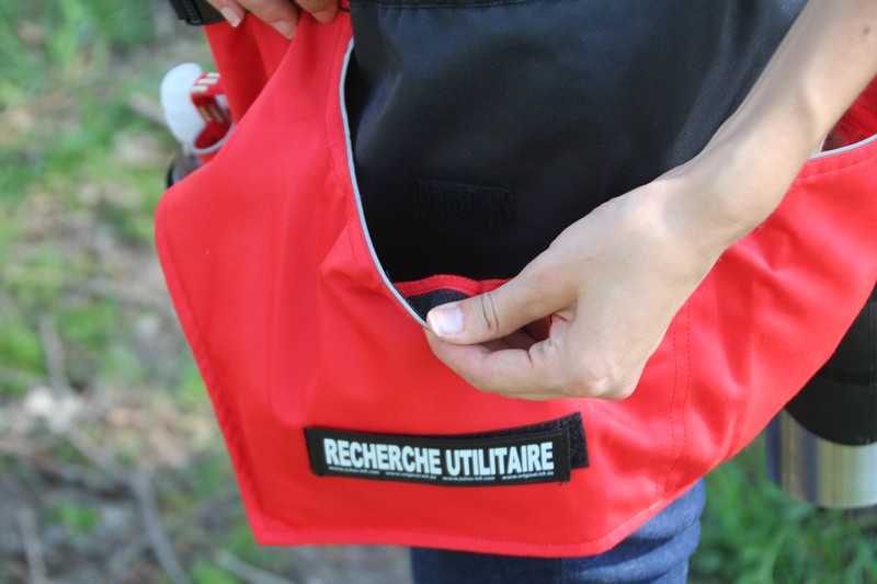 Eh oui ! Quand on pratique le mantrailing, la recherche utilitaire ou toute autre discipline avec les chiens, il est indispensable d’avoir avec nous, une veste de travail ou un sac à dos afin de garder à portée de main les friandises, jouets, eau, portable et tout autre objet propre a chaque discipline.