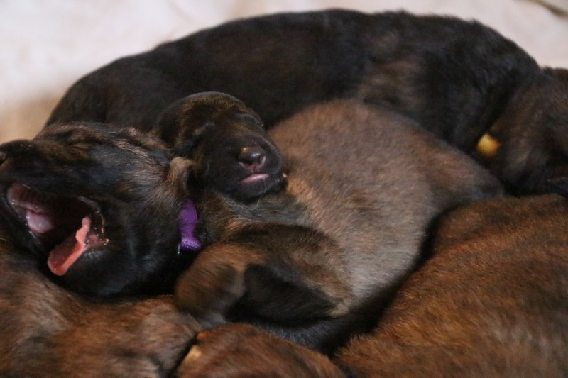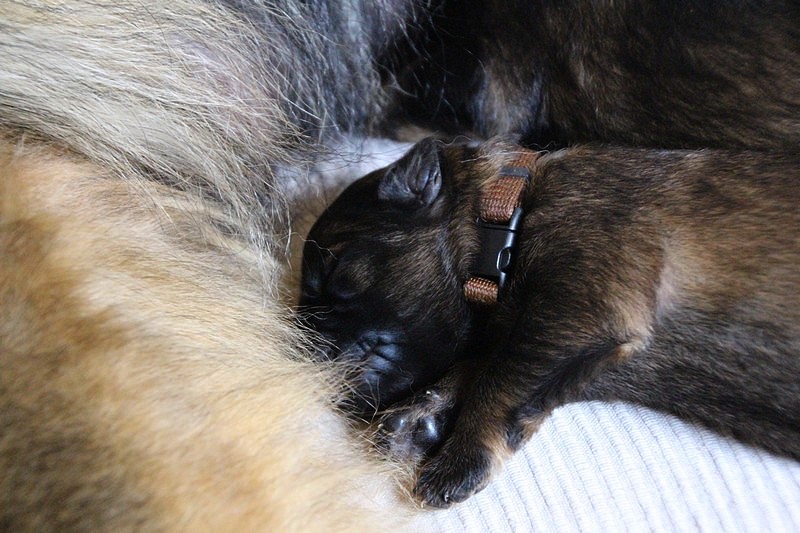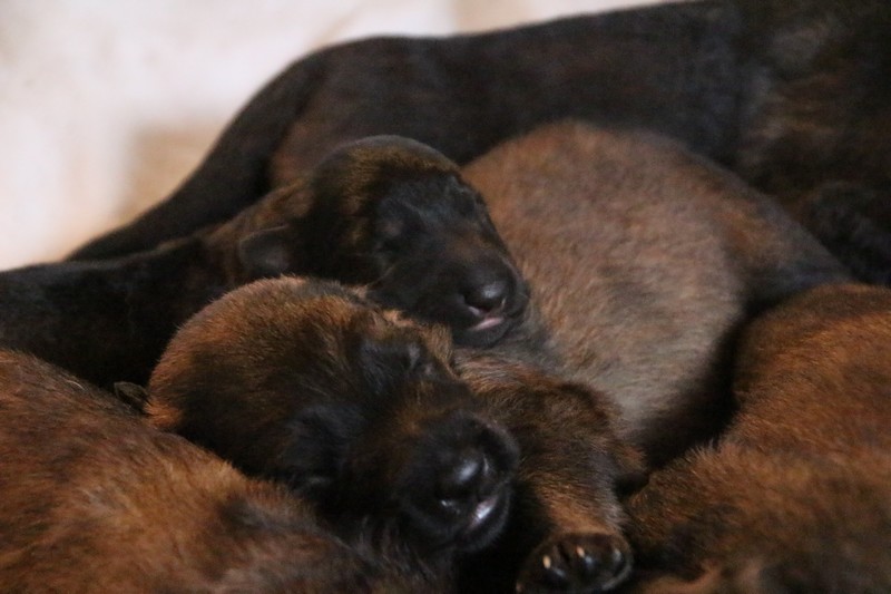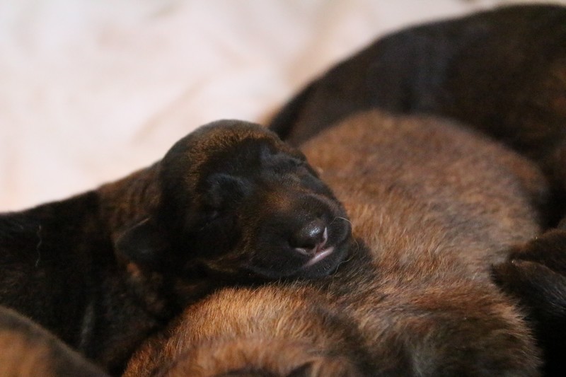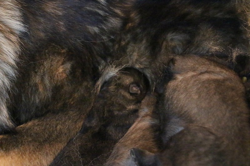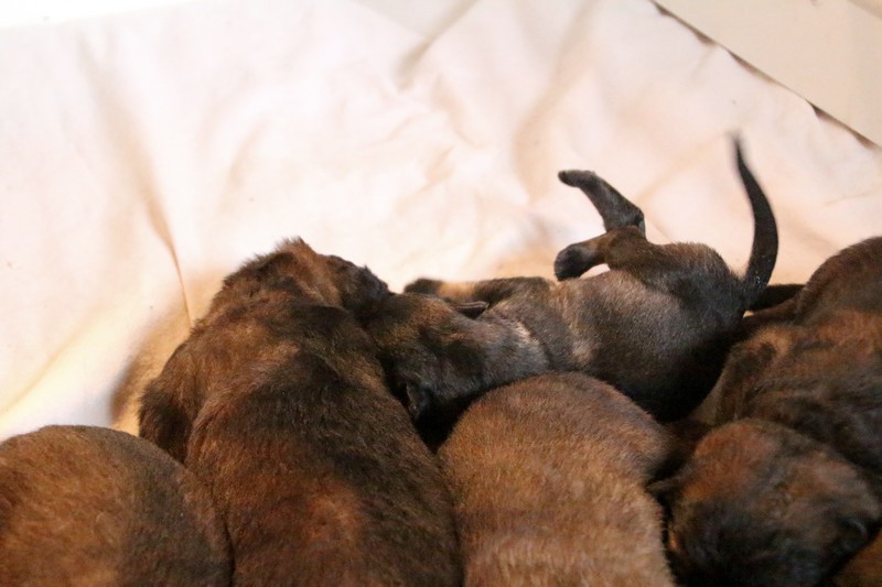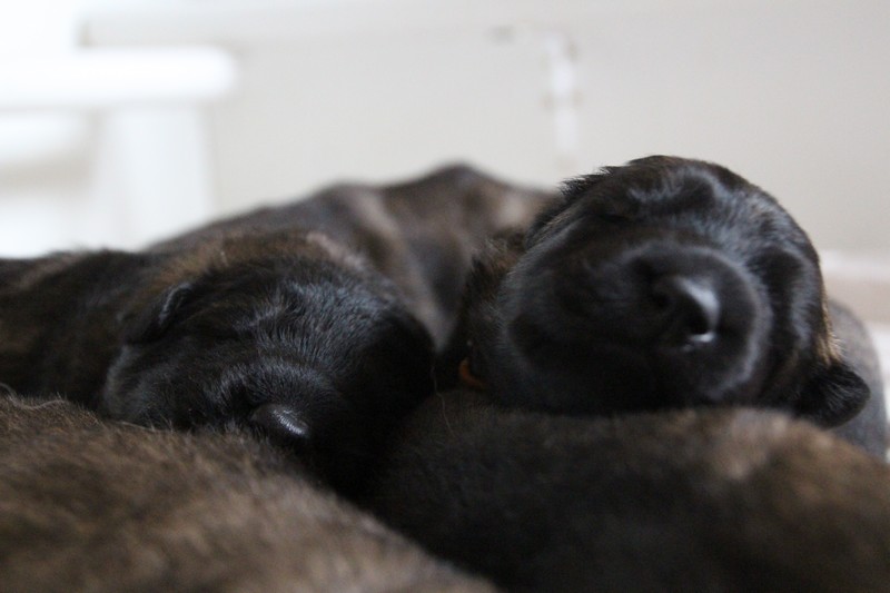 Aujourd’hui c’est une grande première, certains d’entre nous ont ouvert les yeux pour la première fois, alors ce n’étais pas pour admirer miss grosse tête d’à côté, non c’est parce que nous avons 12 jours et que c’est à peut prés à cette age que les petits yeux s’ouvrent.. Nous avons également eu la visite de notre demi sœur, sa maman a dû aller chez le vétérinaire et c’est donc notre maman qui s’est occupé d’elle pendant son absence, nous avons bien voulu lui faire une petite place et avons fait attention de ne pas l’écrabouiller…