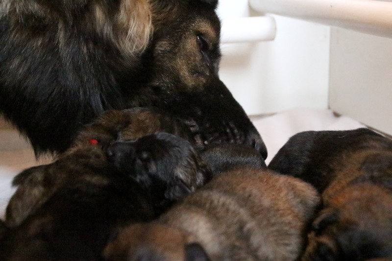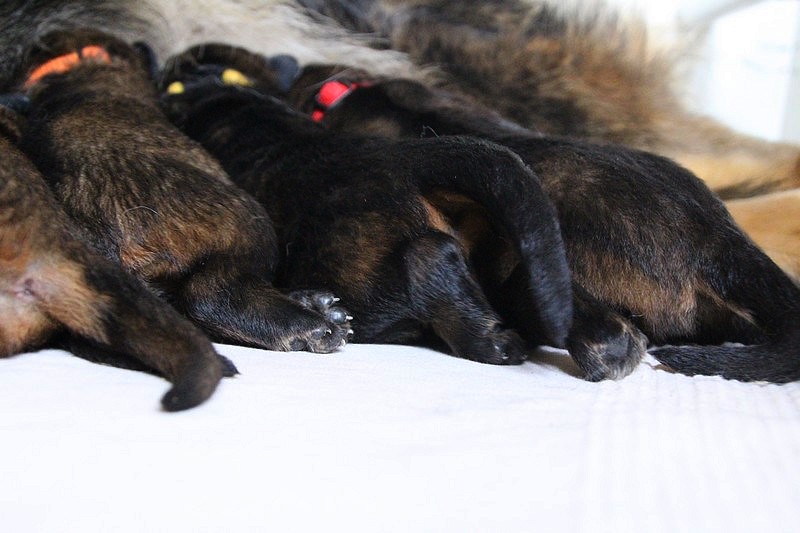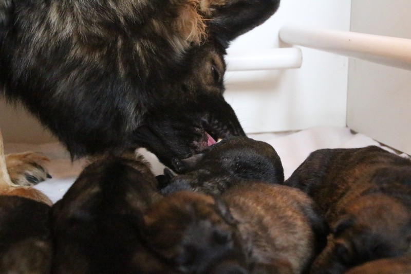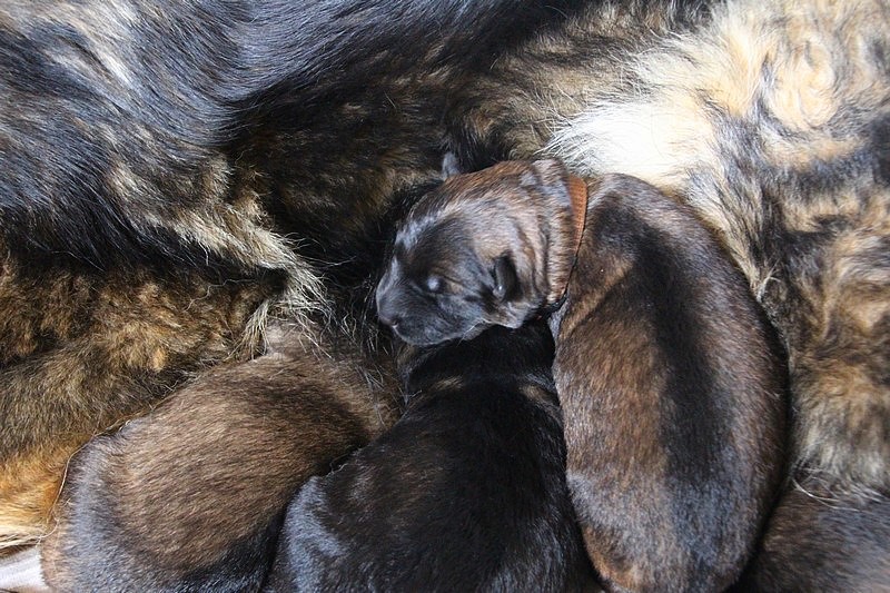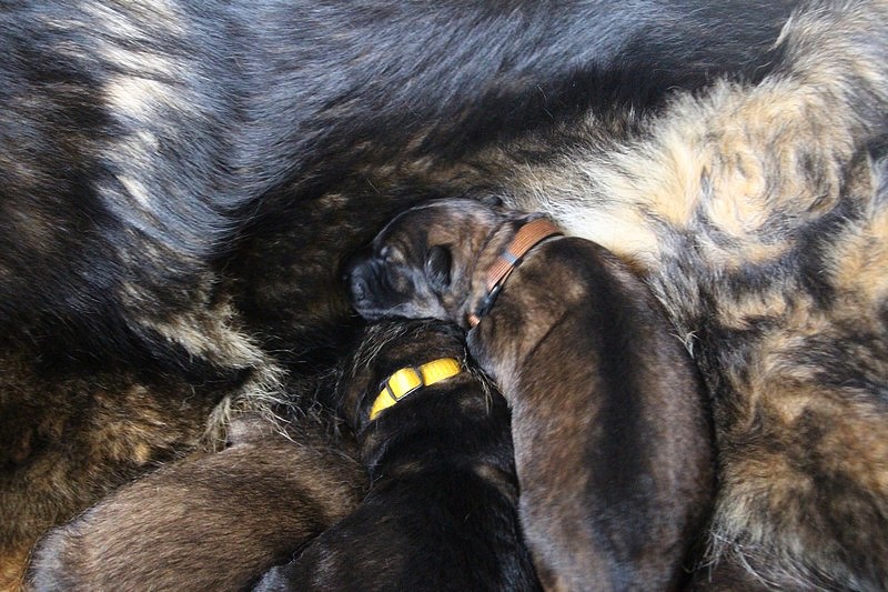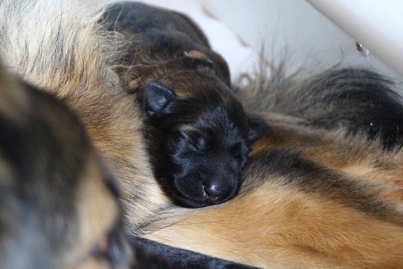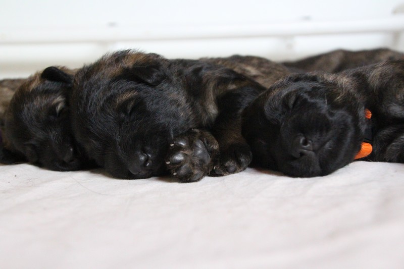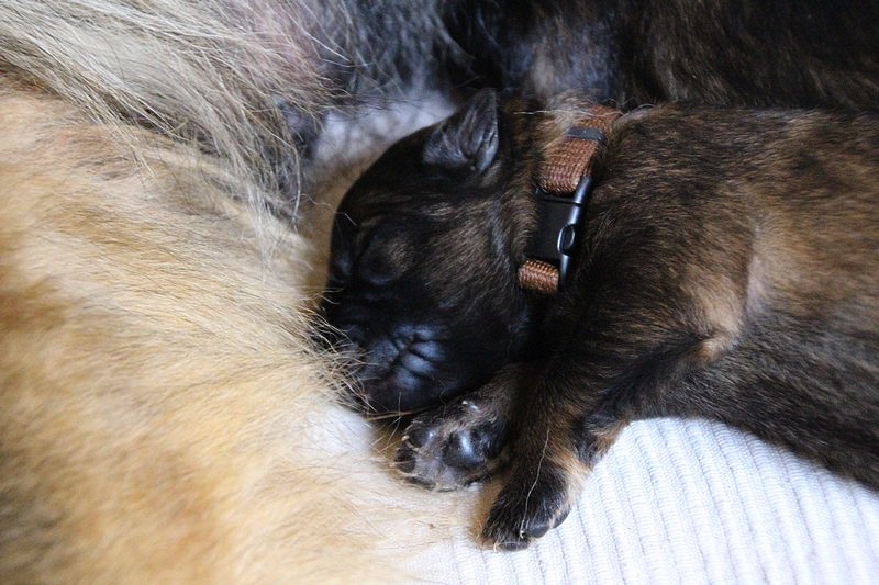 Aujourd’hui c’est une grande première, certains d’entre nous ont ouvert les yeux pour la première fois, alors ce n’étais pas pour admirer miss grosse tête d’à côté, non c’est parce que nous avons 12 jours et que c’est à peut prés à cette age que les petits yeux s’ouvrent.. Nous avons également eu la visite de notre demi sœur, sa maman a dû aller chez le vétérinaire et c’est donc notre maman qui s’est occupé d’elle pendant son absence, nous avons bien voulu lui faire une petite place et avons fait attention de ne pas l’écrabouiller…