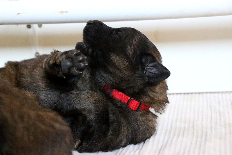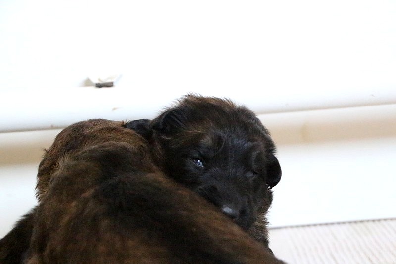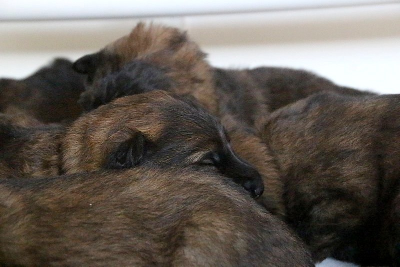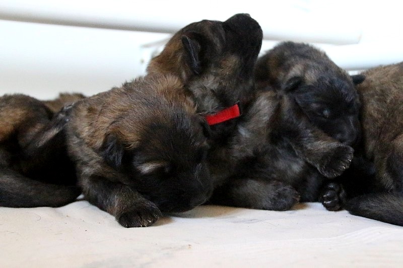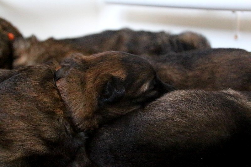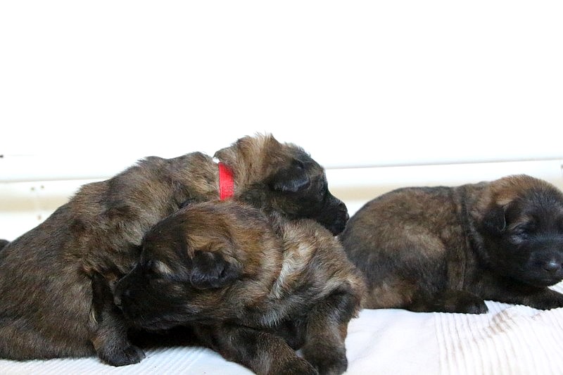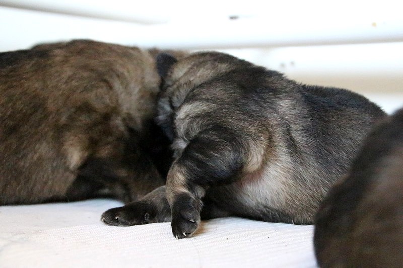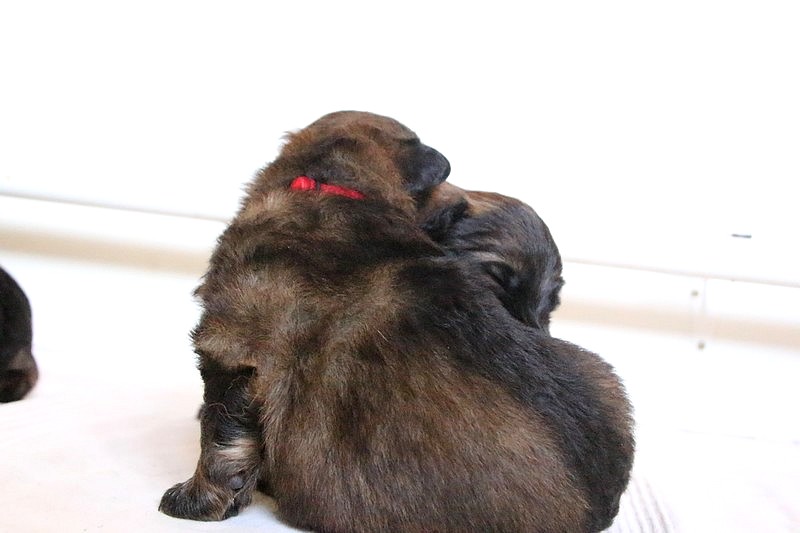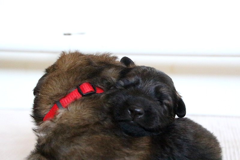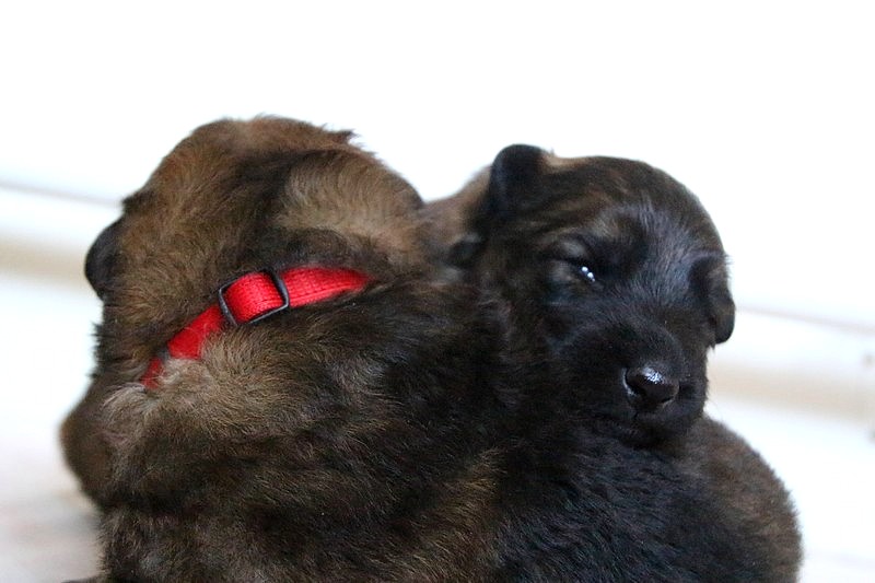 Et oui, nous nous portons à merveille ! nous commençons à bien nous déplacer et si nos yeux sont ouvert ce n’est pas pour autant qu’il est plus facile de se diriger, car comme notre ami André la taupe, nous sommes encore complétement miro.. Côté Voix, nous avons appris des nouveaux sons et le soir nous donnons en direct de notre cocon une représentation d’imitation d’aboiement.