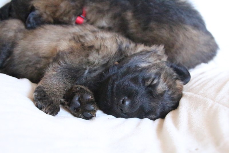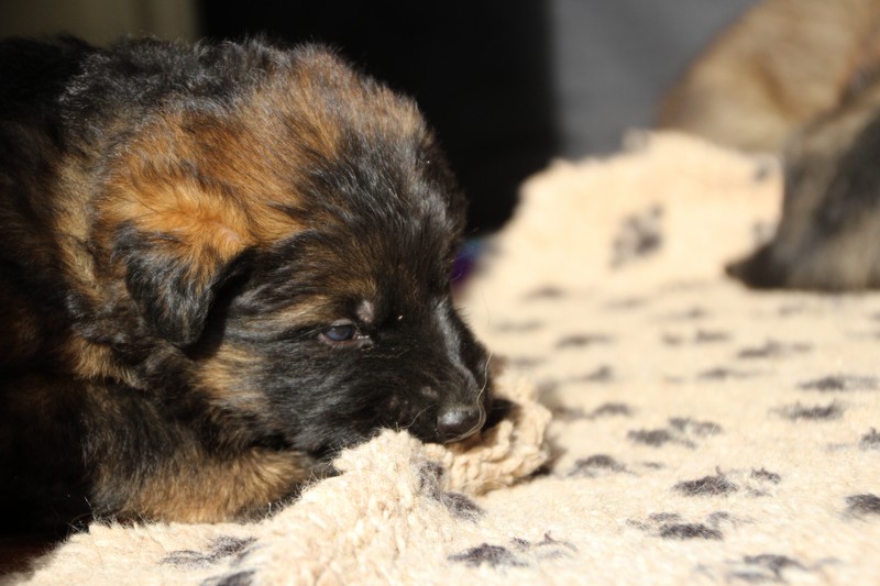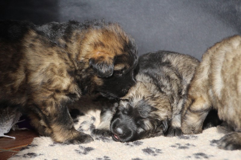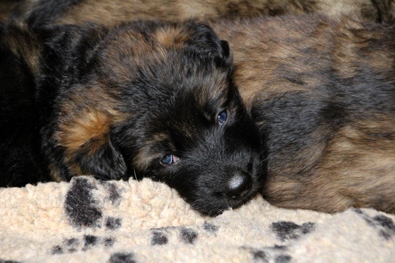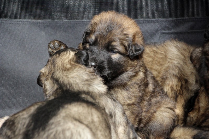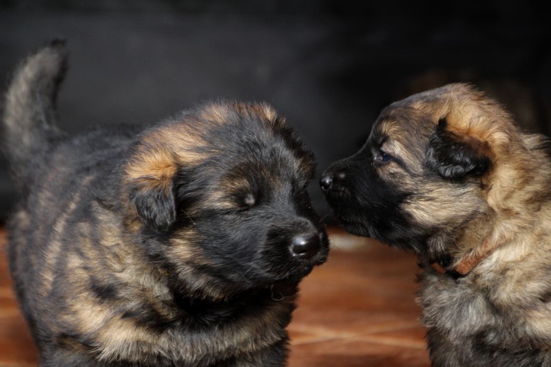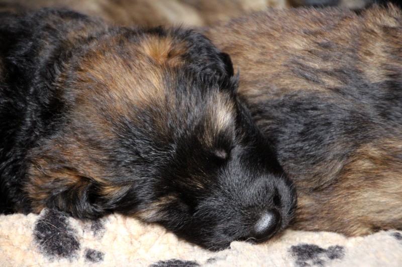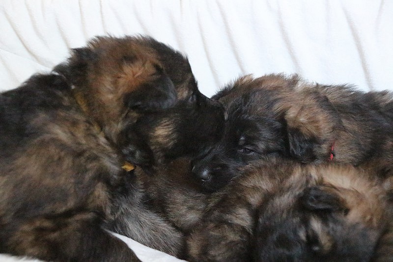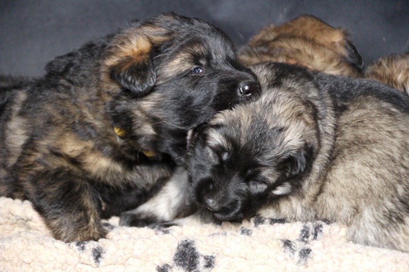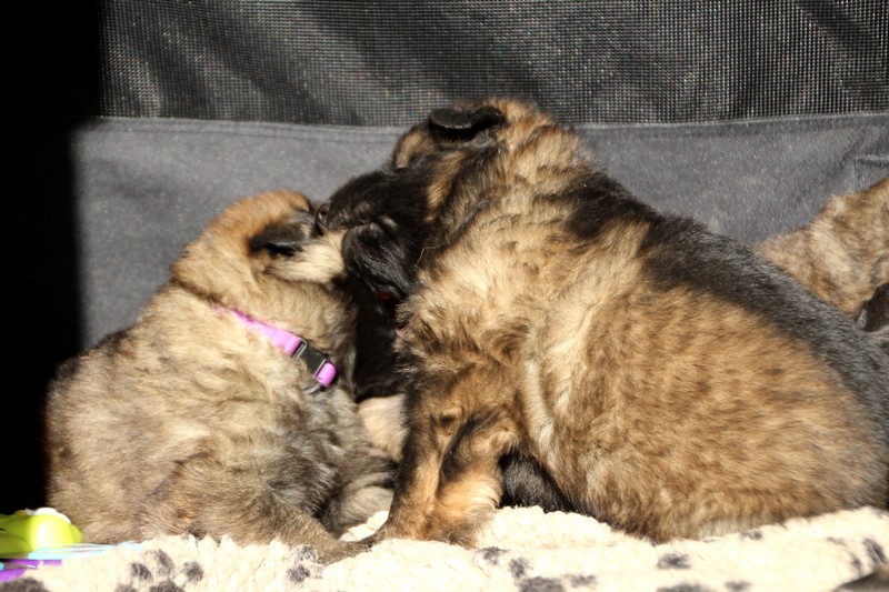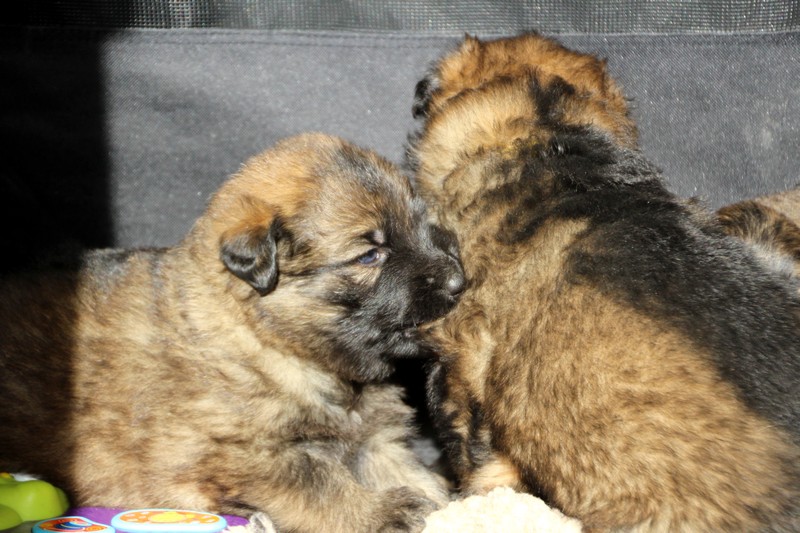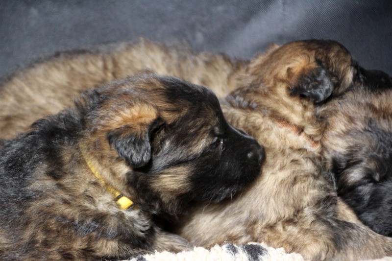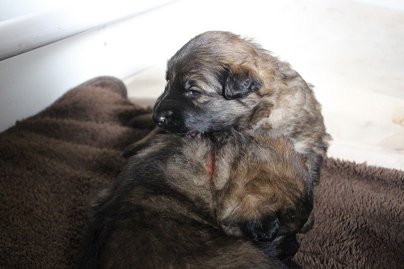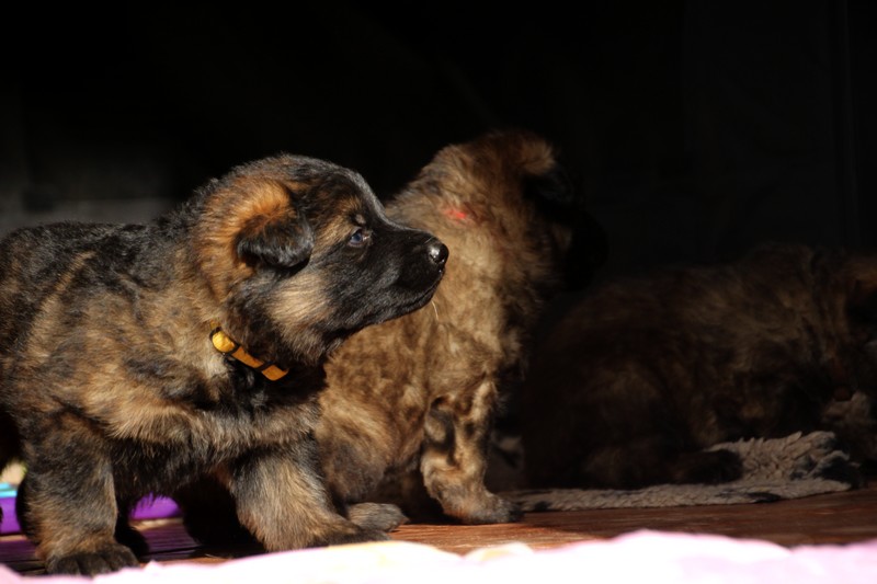 Coucou tout le monde, nous revoilà pour vous donner des nouvelles!! la semaine a été remplie de découvertes, déjà la bouillie, c’est vraiment trop bon et ça glisse quand on marche dans l’assiette puis ça colle aux poils, ce qui nous fait des petites réserves de nourriture. Nous commençons à bien nous déplacer, il parait que cette semaine nous allons aller dehors pour continuer les découvertes ! Nous savons aussi aboyer, la voix déraille par moment mais nous avons quand même notre mot à dire et savons nous faire entendre…