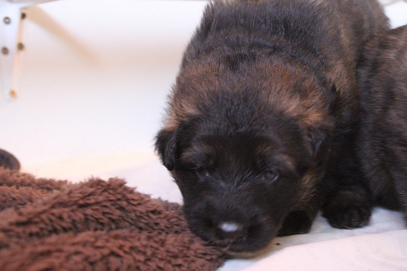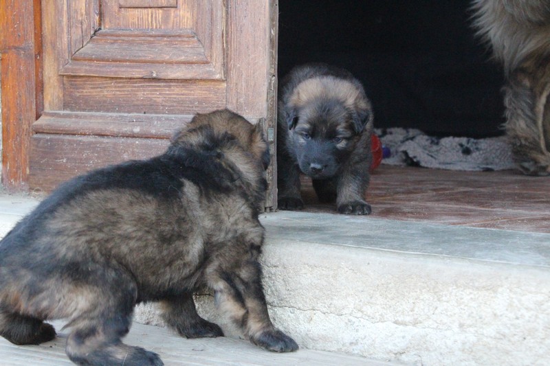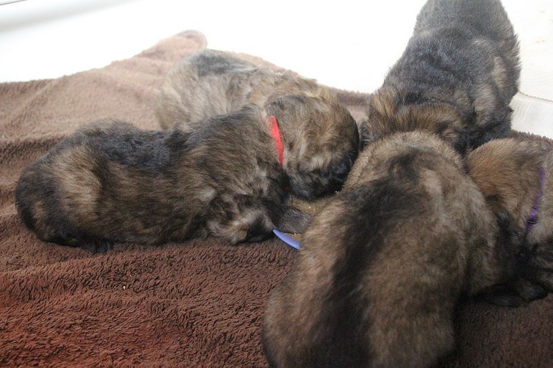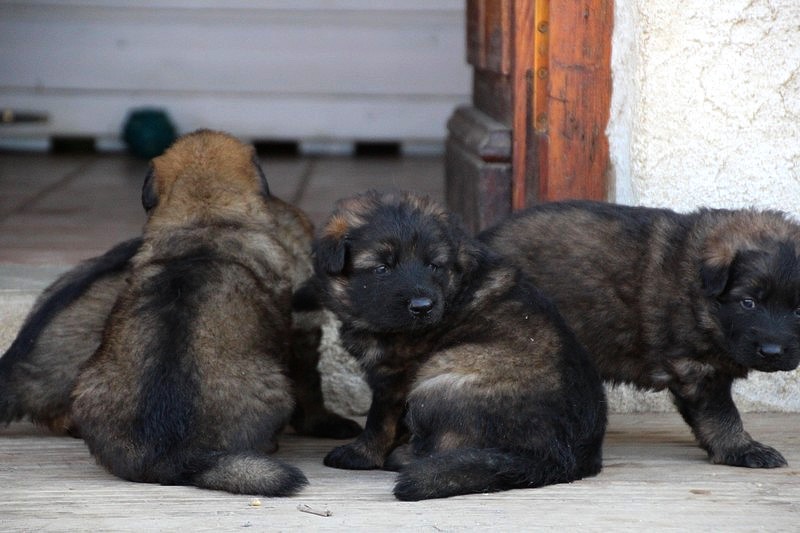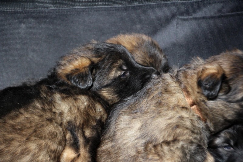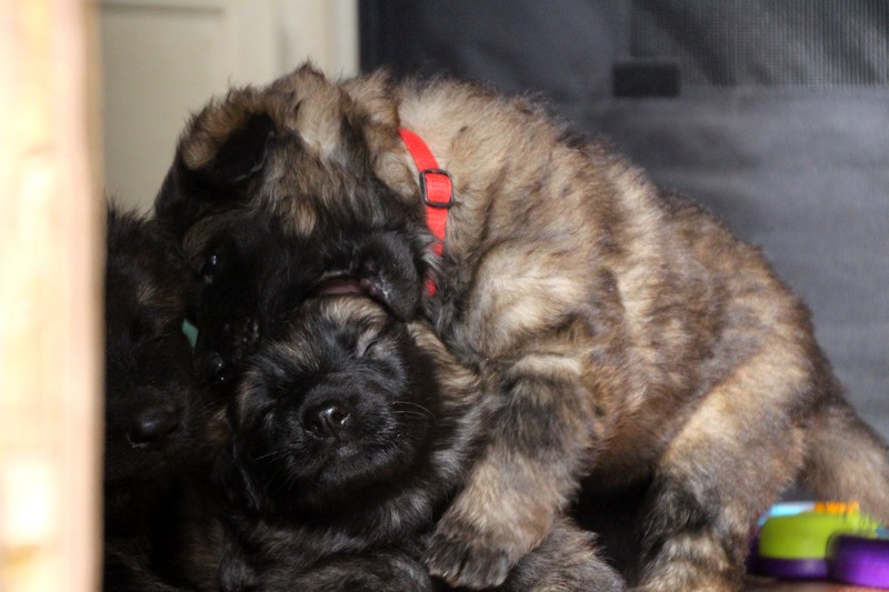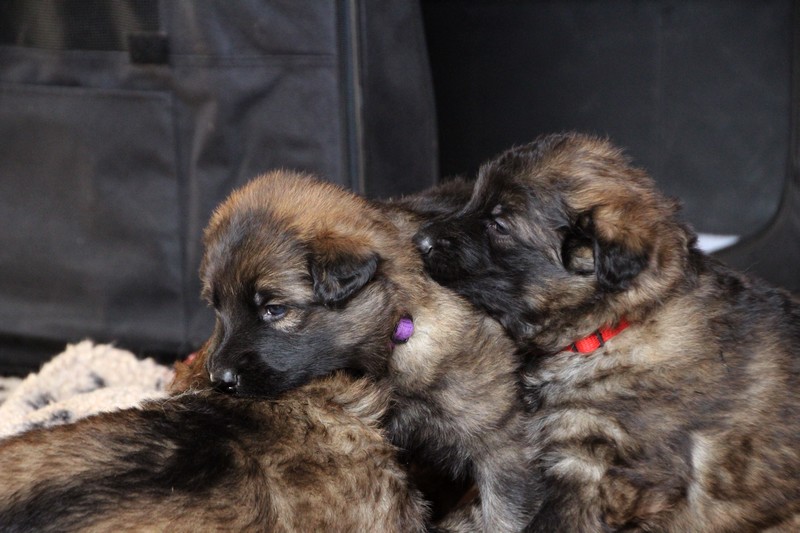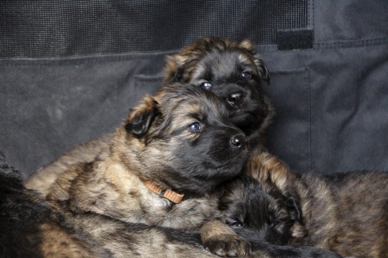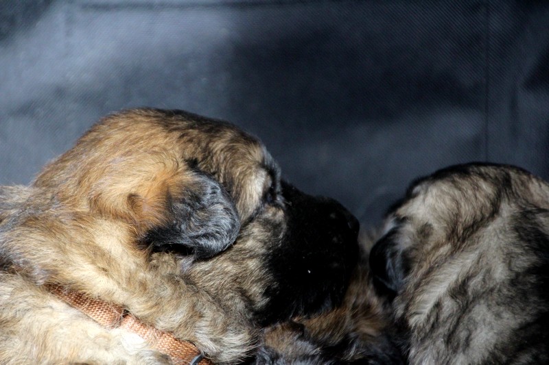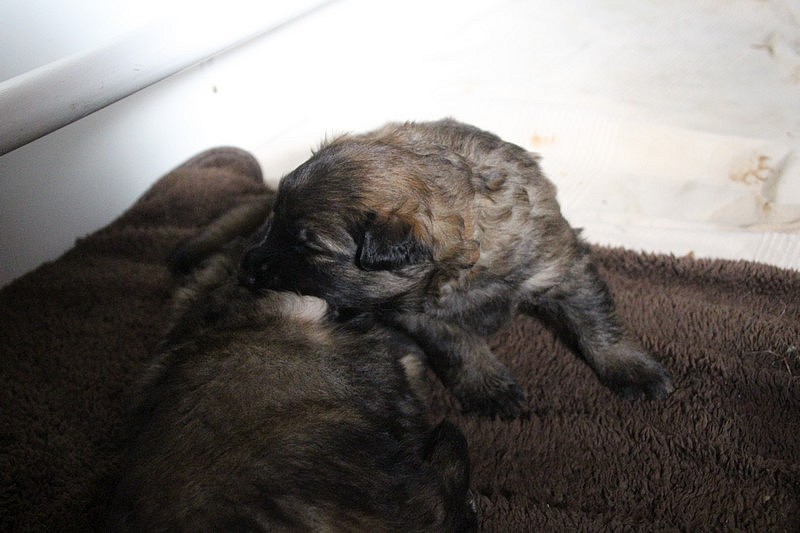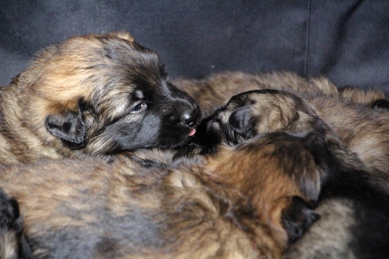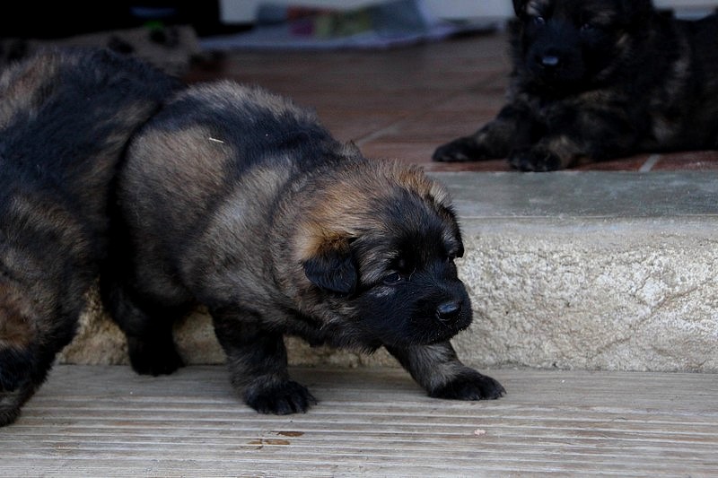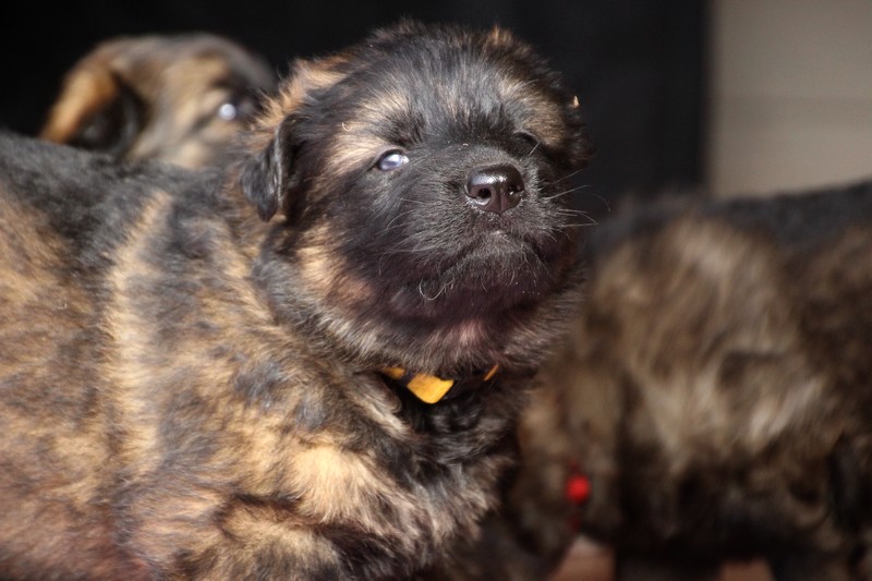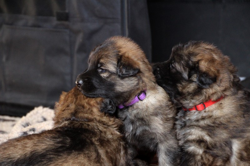 Coucou tout le monde, nous revoilà pour vous donner des nouvelles!! la semaine a été remplie de découvertes, déjà la bouillie, c’est vraiment trop bon et ça glisse quand on marche dans l’assiette puis ça colle aux poils, ce qui nous fait des petites réserves de nourriture. Nous commençons à bien nous déplacer, il parait que cette semaine nous allons aller dehors pour continuer les découvertes ! Nous savons aussi aboyer, la voix déraille par moment mais nous avons quand même notre mot à dire et savons nous faire entendre…