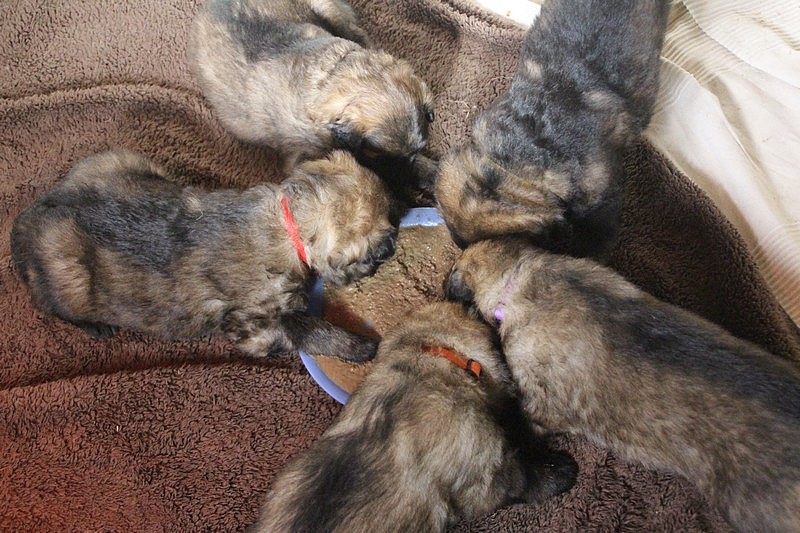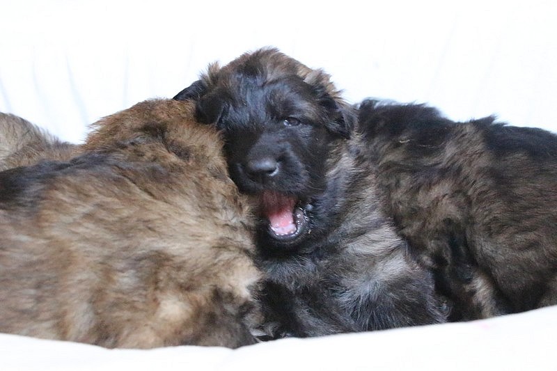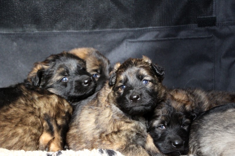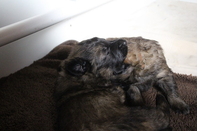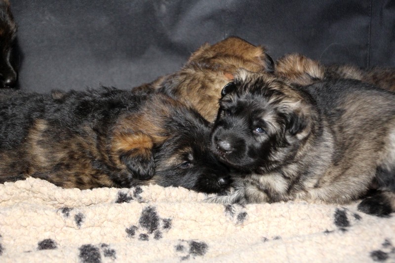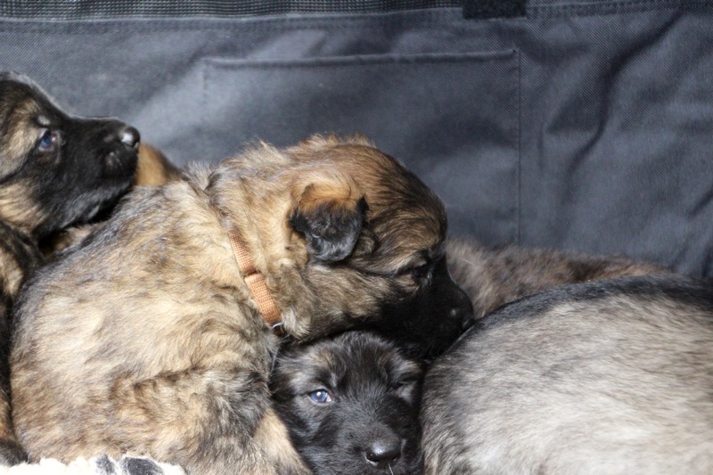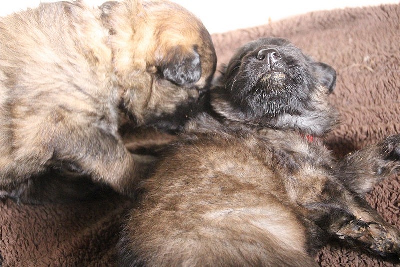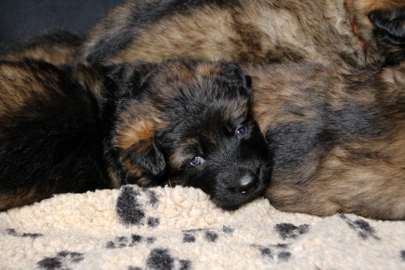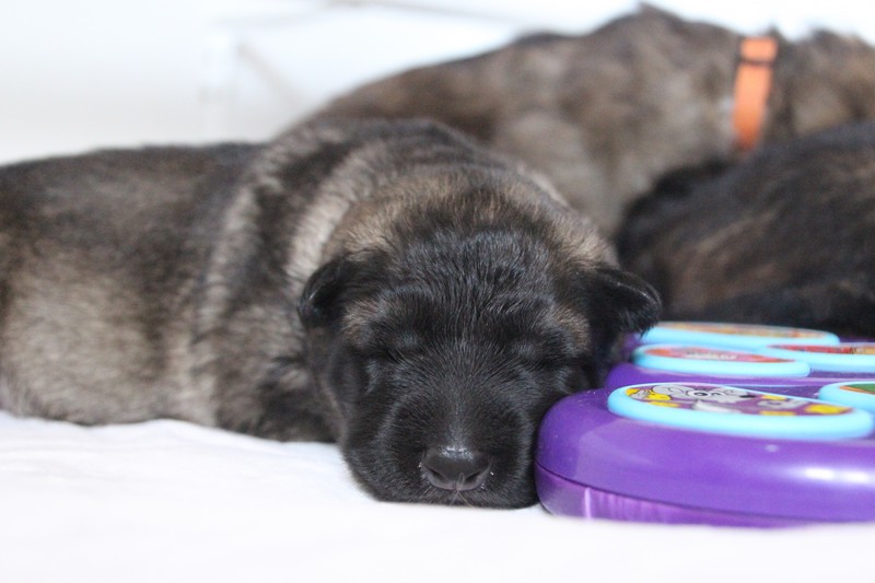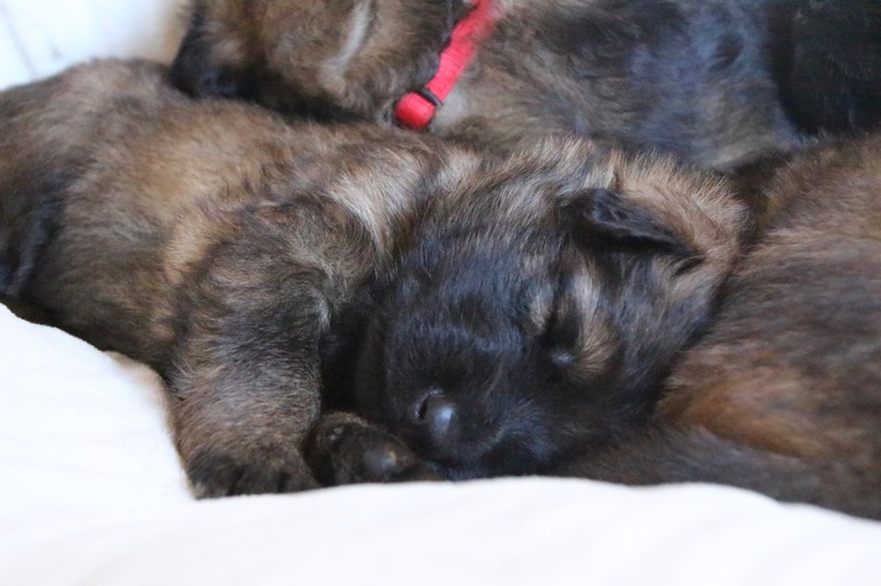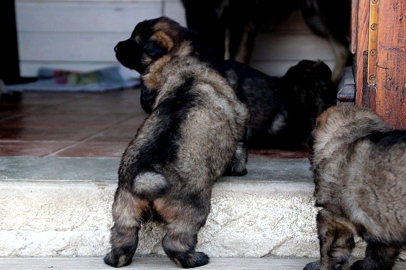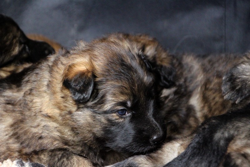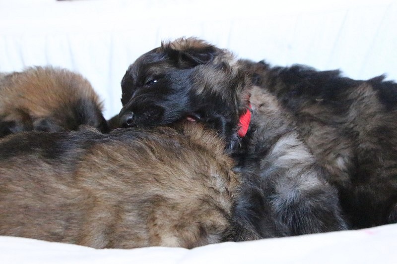 Coucou tout le monde, nous revoilà pour vous donner des nouvelles!! la semaine a été remplie de découvertes, déjà la bouillie, c’est vraiment trop bon et ça glisse quand on marche dans l’assiette puis ça colle aux poils, ce qui nous fait des petites réserves de nourriture. Nous commençons à bien nous déplacer, il parait que cette semaine nous allons aller dehors pour continuer les découvertes ! Nous savons aussi aboyer, la voix déraille par moment mais nous avons quand même notre mot à dire et savons nous faire entendre…