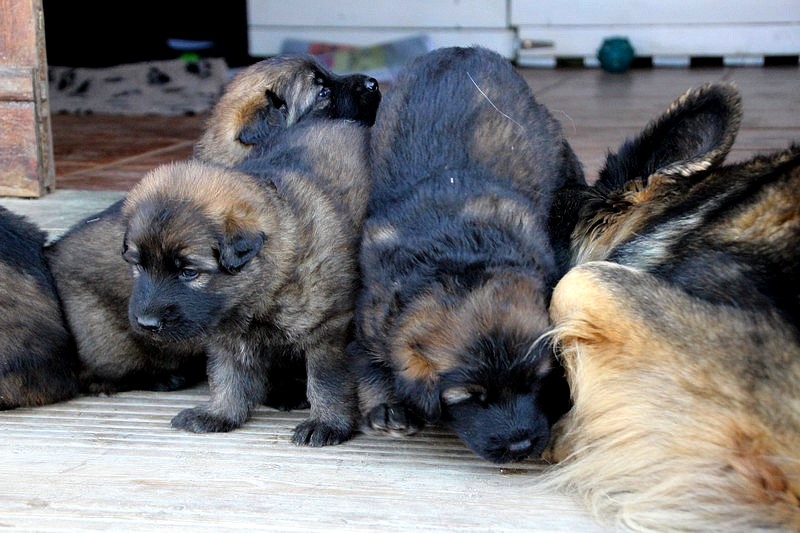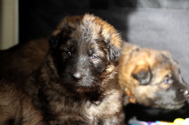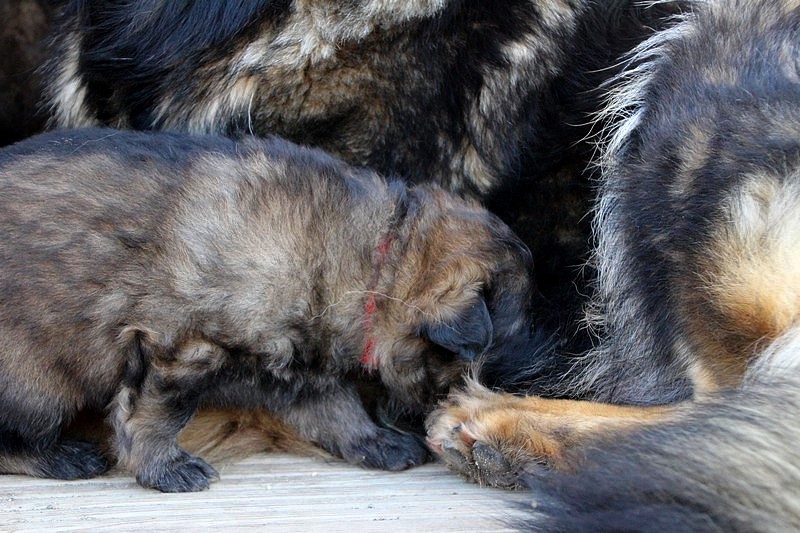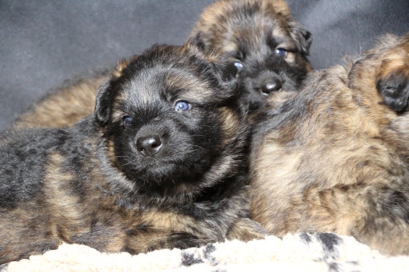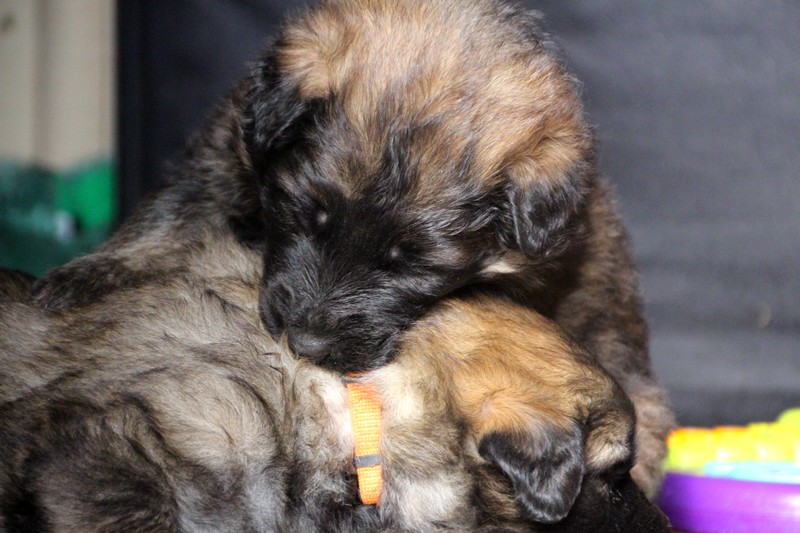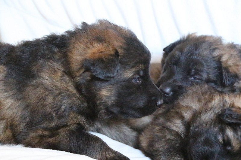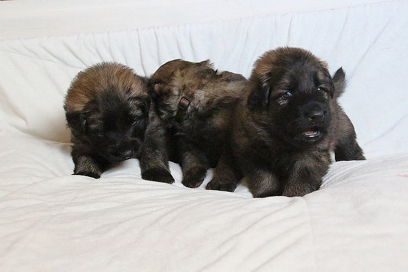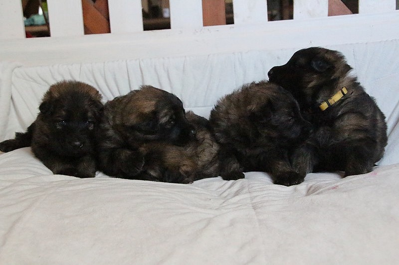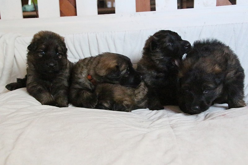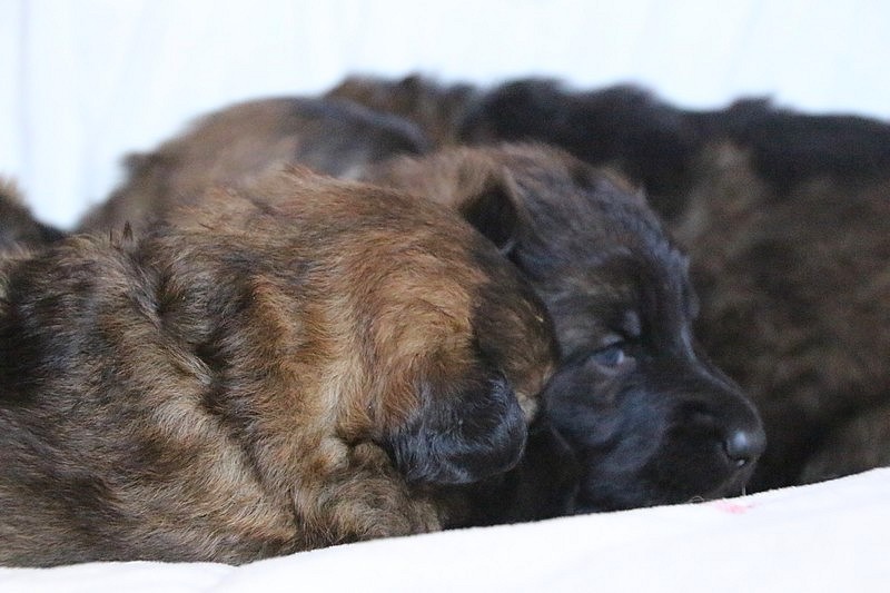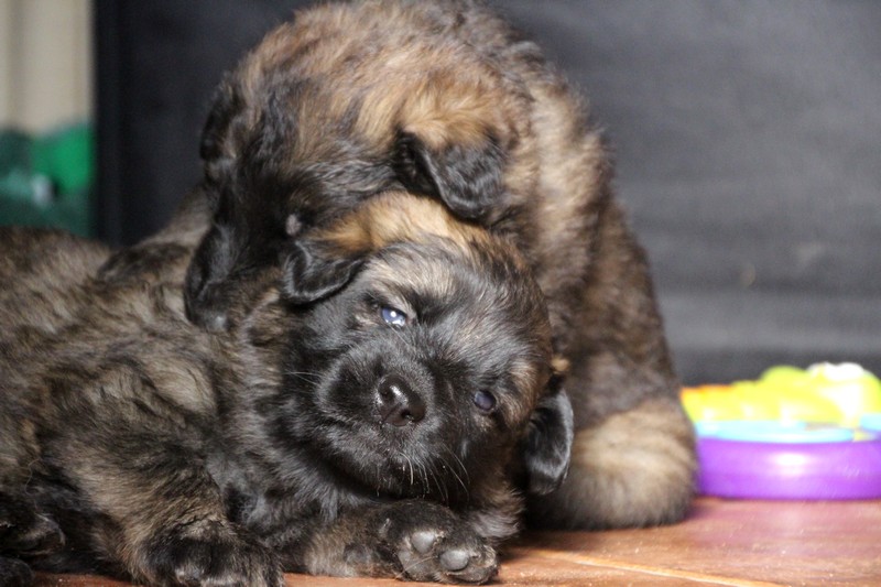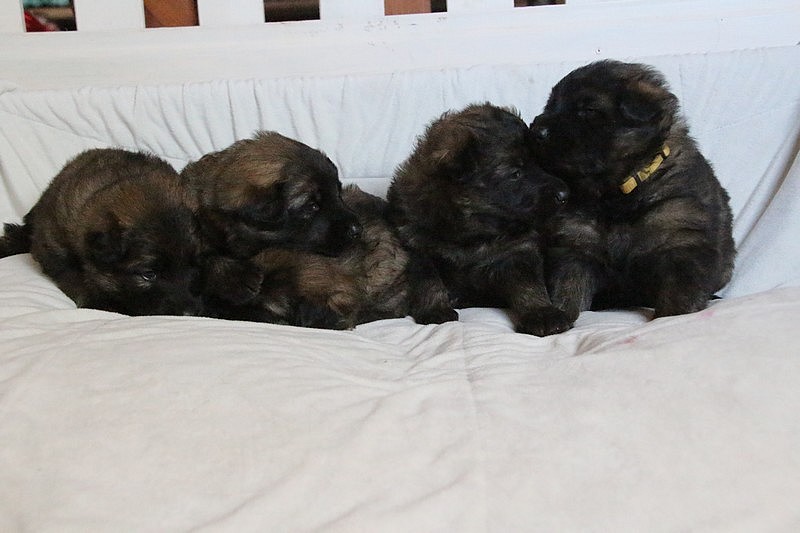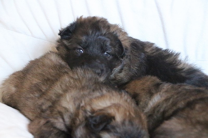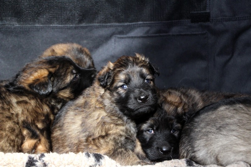 Coucou tout le monde, nous revoilà pour vous donner des nouvelles!! la semaine a été remplie de découvertes, déjà la bouillie, c’est vraiment trop bon et ça glisse quand on marche dans l’assiette puis ça colle aux poils, ce qui nous fait des petites réserves de nourriture. Nous commençons à bien nous déplacer, il parait que cette semaine nous allons aller dehors pour continuer les découvertes ! Nous savons aussi aboyer, la voix déraille par moment mais nous avons quand même notre mot à dire et savons nous faire entendre…