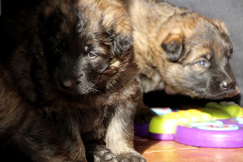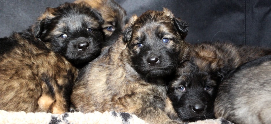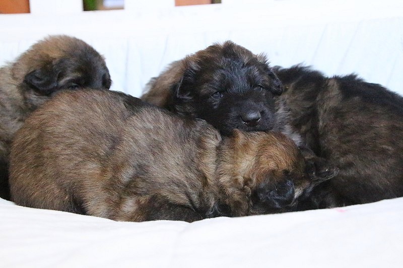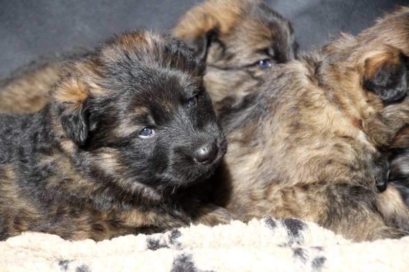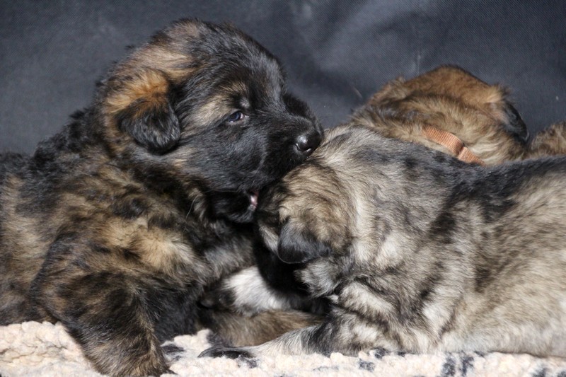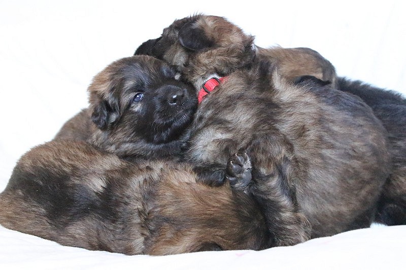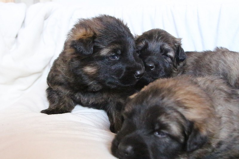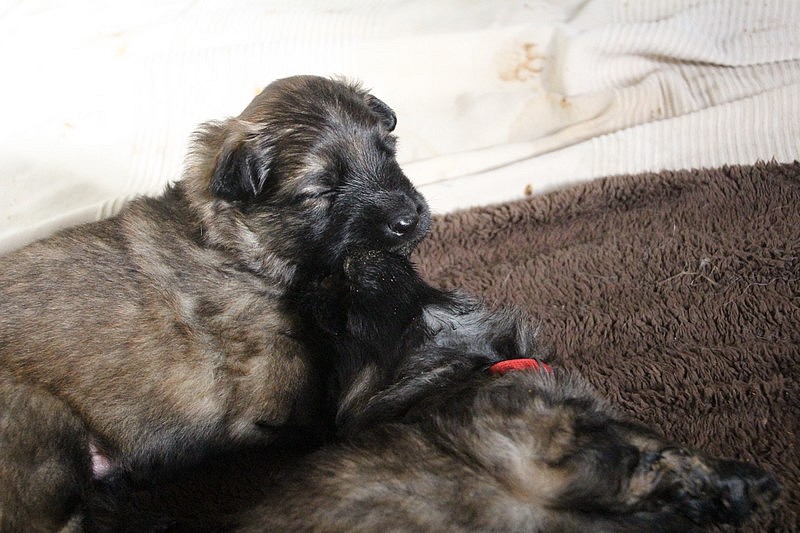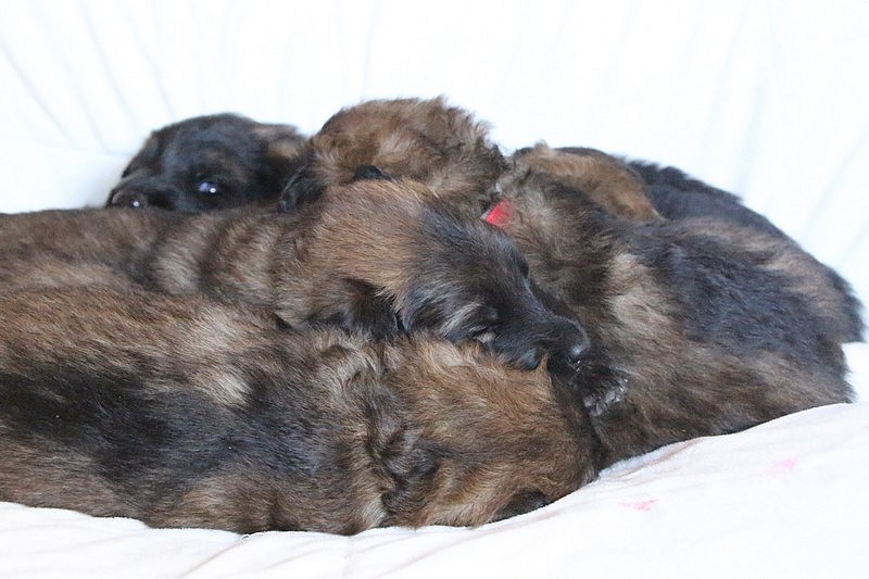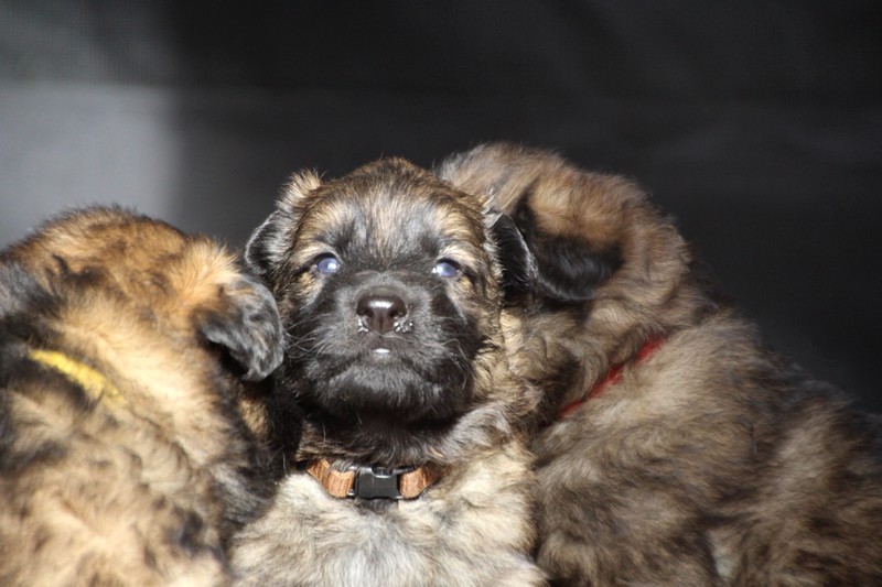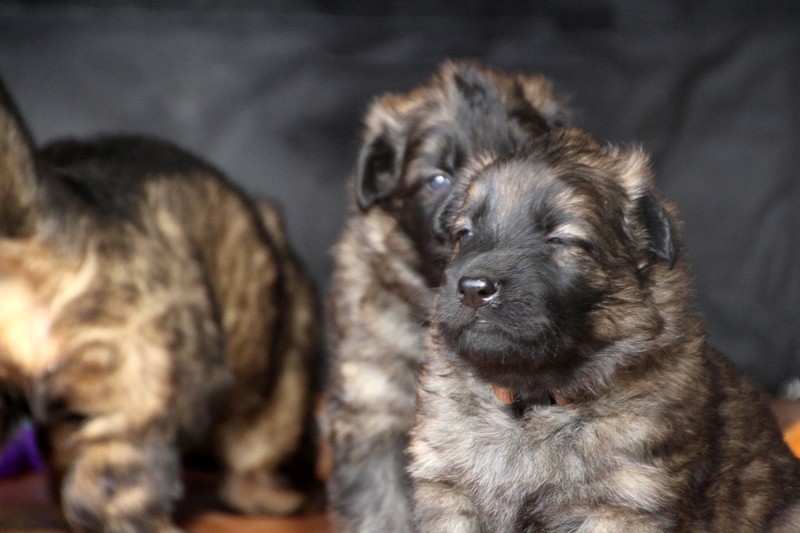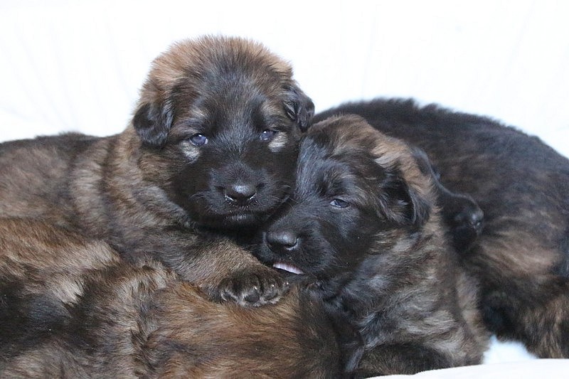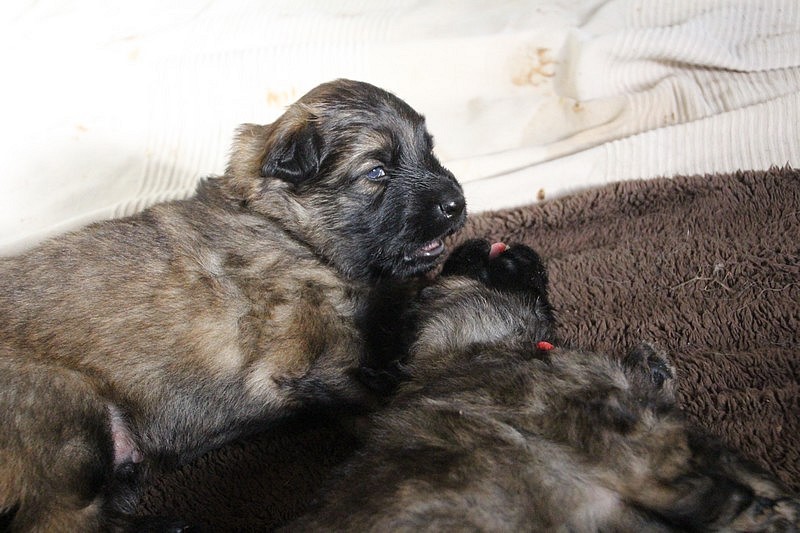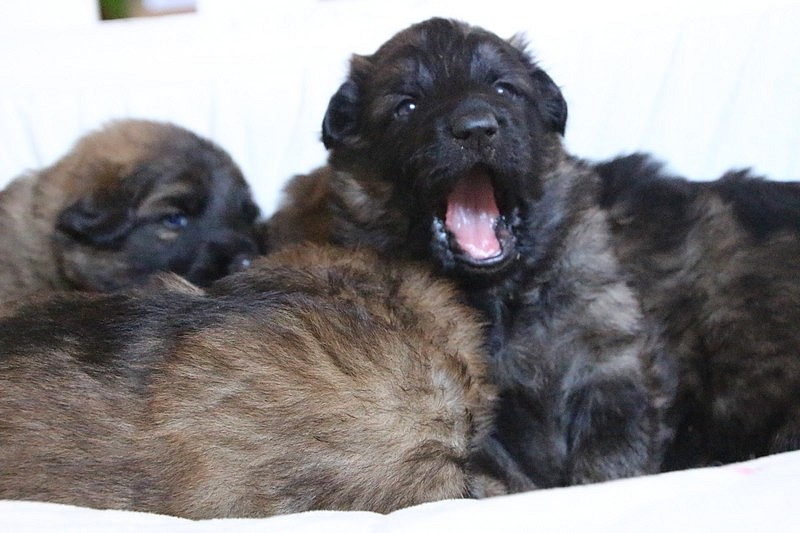 Coucou tout le monde, nous revoilà pour vous donner des nouvelles!! la semaine a été remplie de découvertes, déjà la bouillie, c’est vraiment trop bon et ça glisse quand on marche dans l’assiette puis ça colle aux poils, ce qui nous fait des petites réserves de nourriture. Nous commençons à bien nous déplacer, il parait que cette semaine nous allons aller dehors pour continuer les découvertes ! Nous savons aussi aboyer, la voix déraille par moment mais nous avons quand même notre mot à dire et savons nous faire entendre…