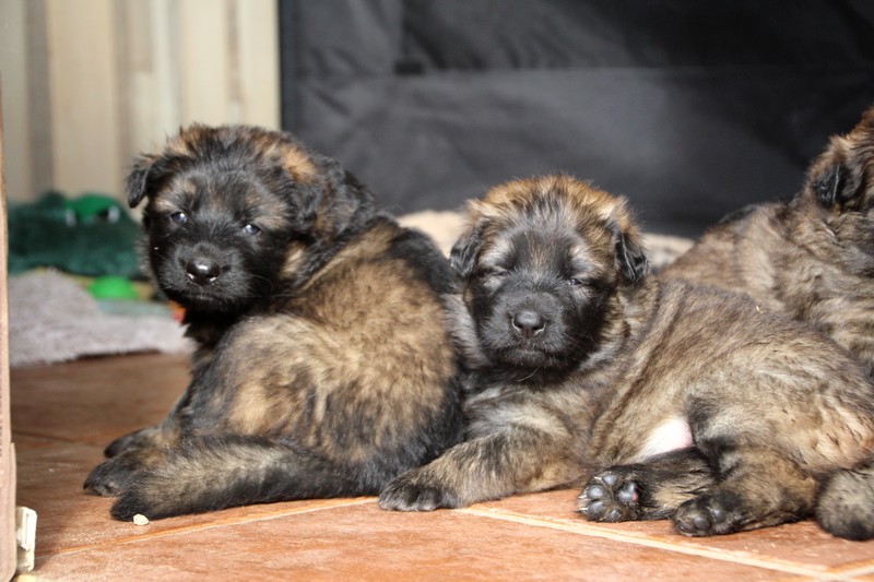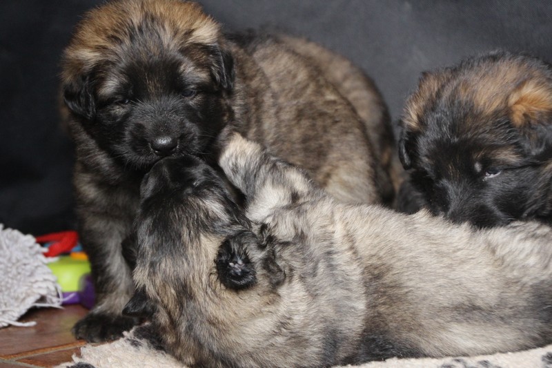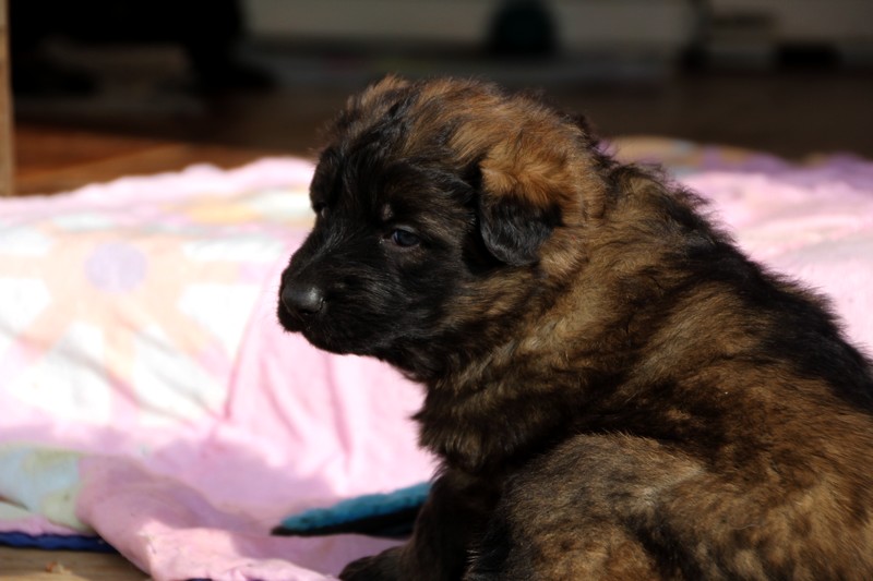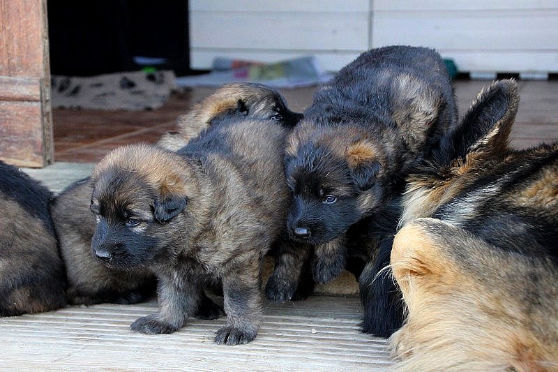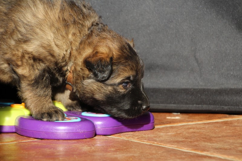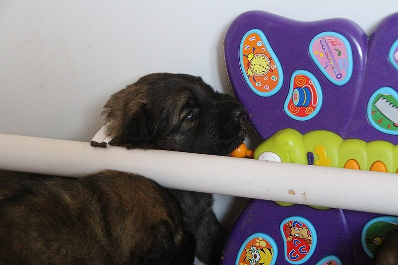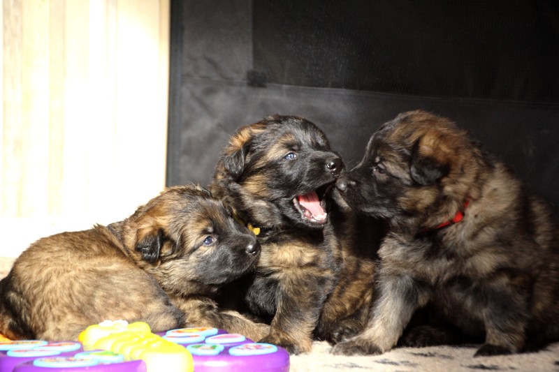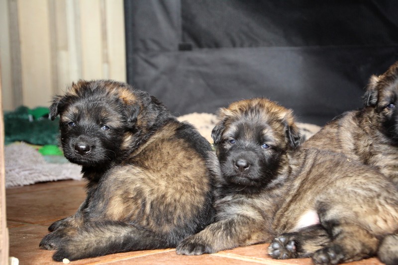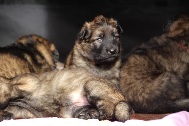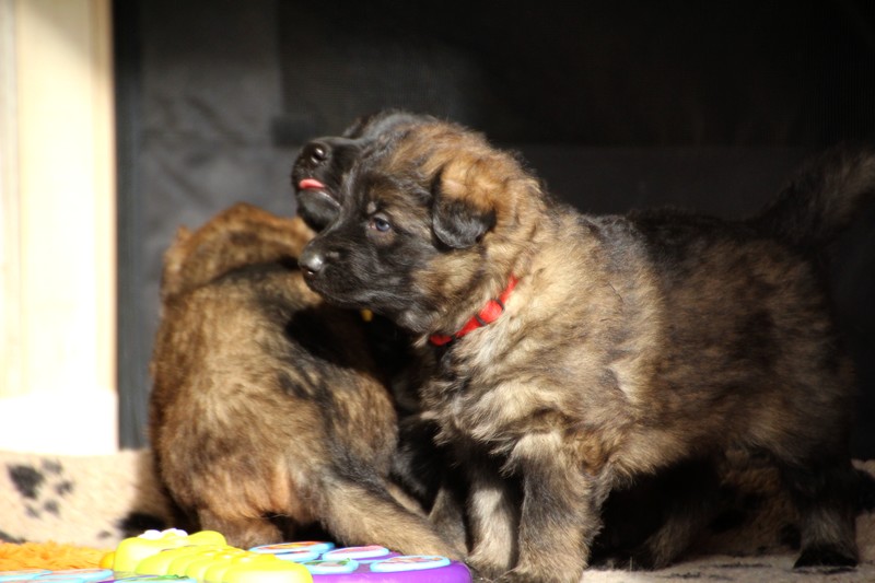 Aujourd’hui était un grand jour, nous avons quitté la nurserie et oui nous sommes des petits grands maintenant! Nous venons de rentrer au jardin des chiots, fini la caisse blanche, nous avons le droit de nous déplacer dans toute la pièce et nous sommes même sortis dehors, enfin pour les plus courageux… c’est maman qui nous a montré le chemin. Les autres grands de la meute viennent aussi nous voir et nous avons des nouveaux jeux. Assez papoter lla suite de cette belle découverte en photo.