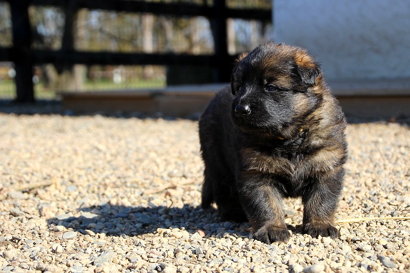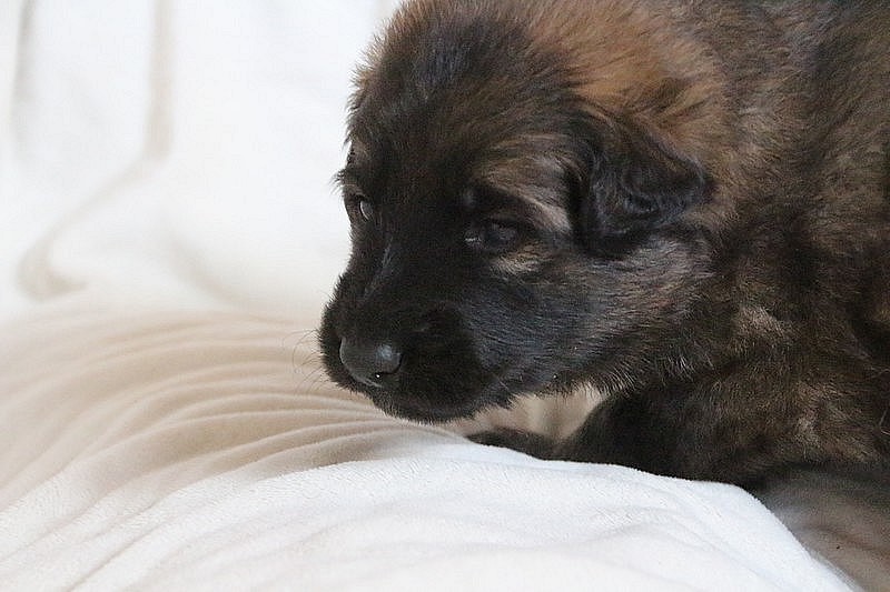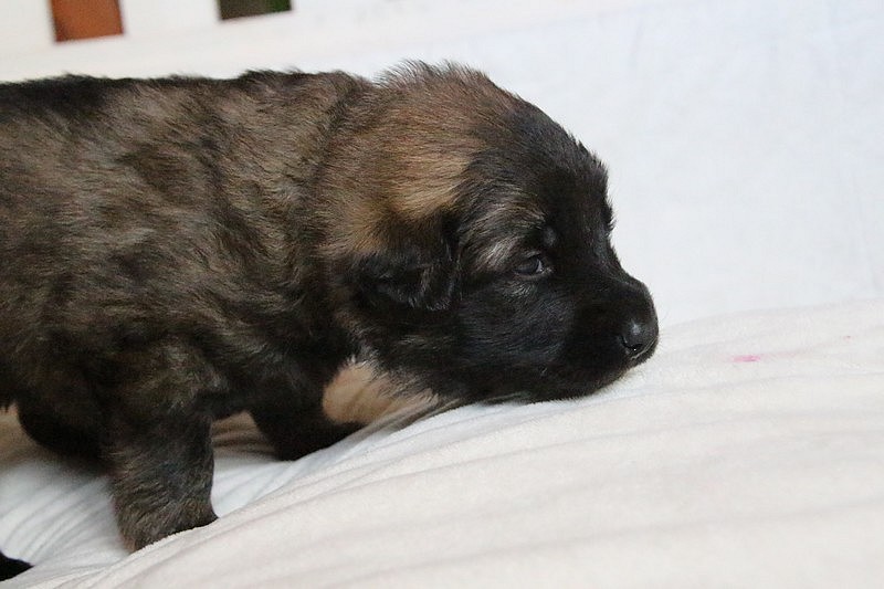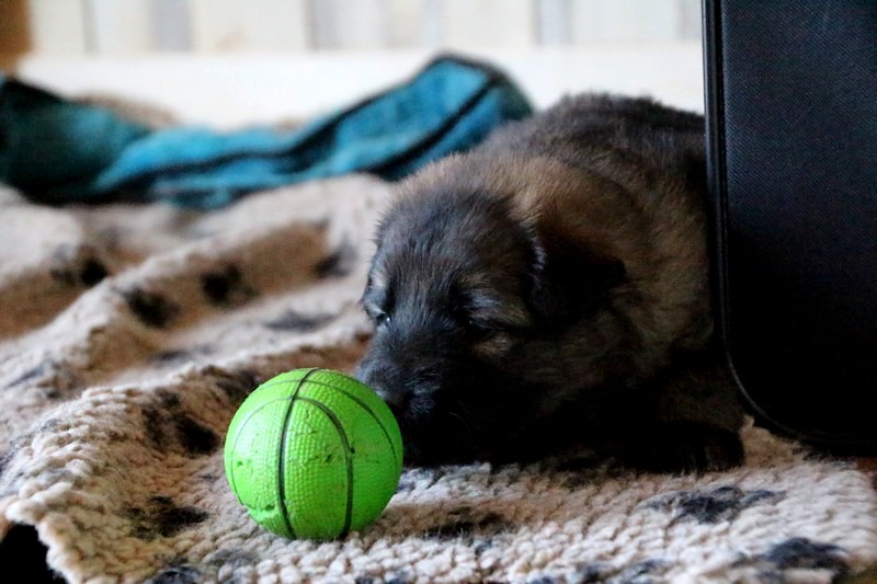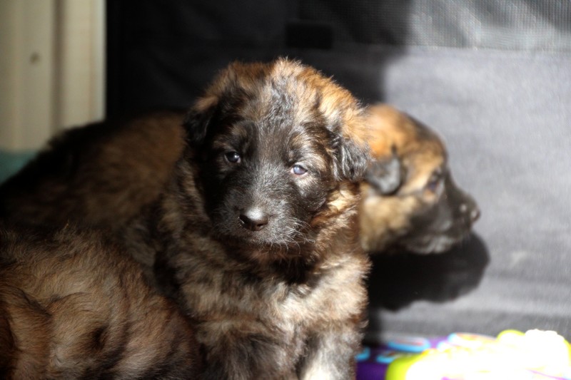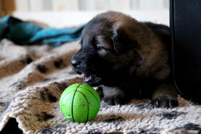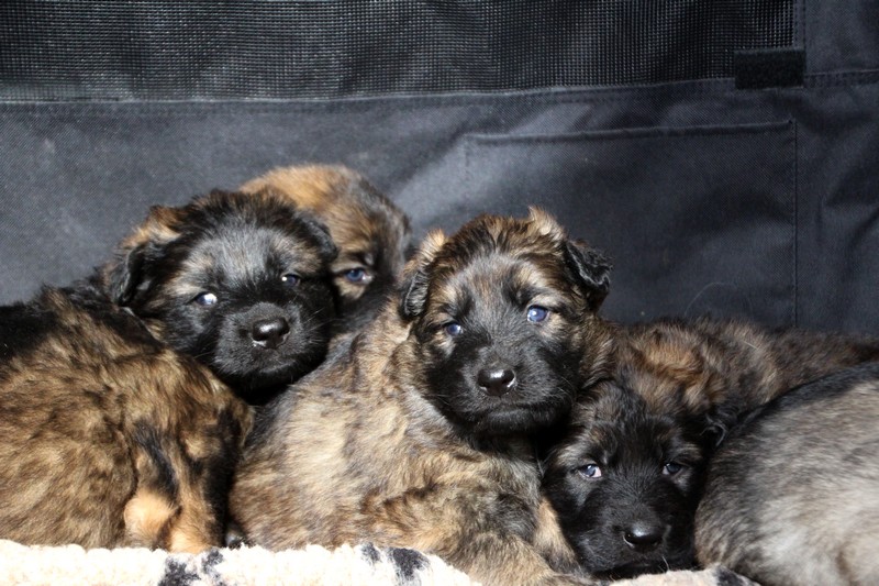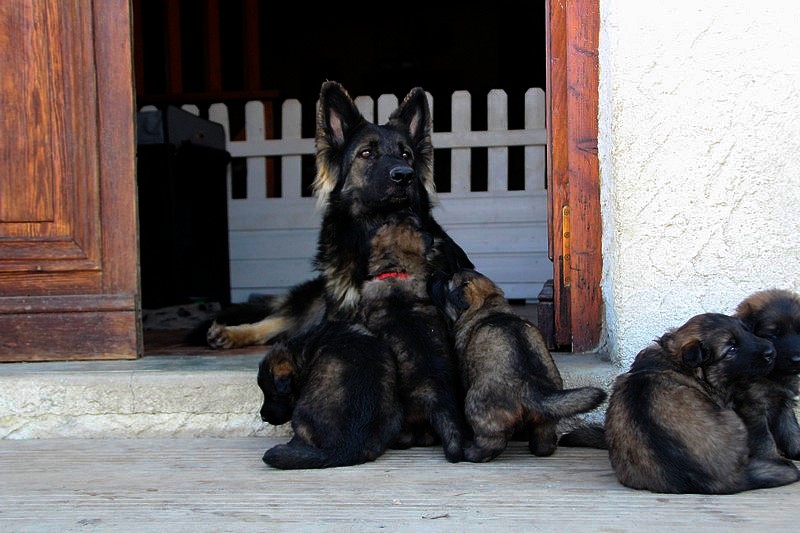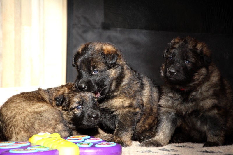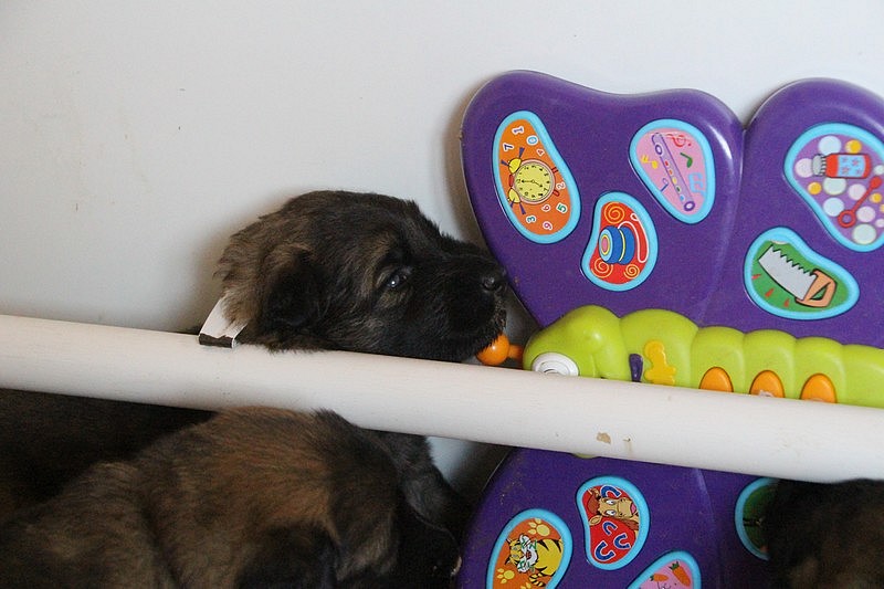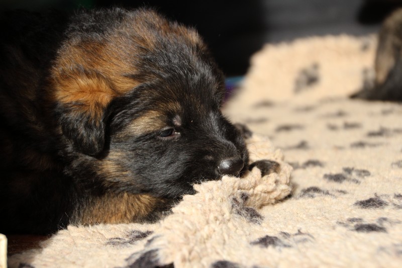 Aujourd’hui était un grand jour, nous avons quitté la nurserie et oui nous sommes des petits grands maintenant! Nous venons de rentrer au jardin des chiots, fini la caisse blanche, nous avons le droit de nous déplacer dans toute la pièce et nous sommes même sortis dehors, enfin pour les plus courageux… c’est maman qui nous a montré le chemin. Les autres grands de la meute viennent aussi nous voir et nous avons des nouveaux jeux. Assez papoter lla suite de cette belle découverte en photo.