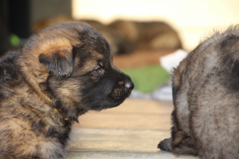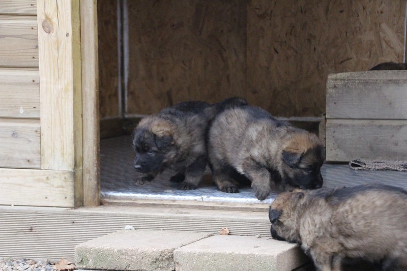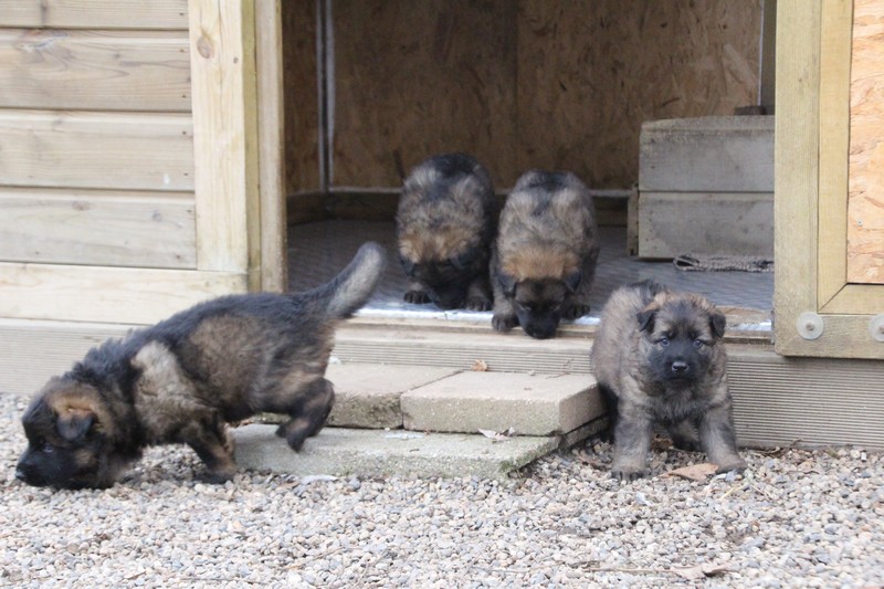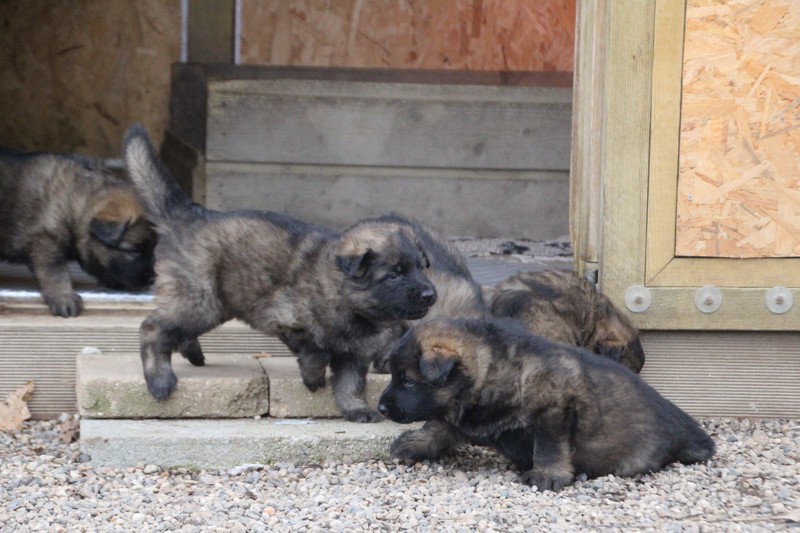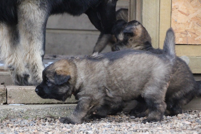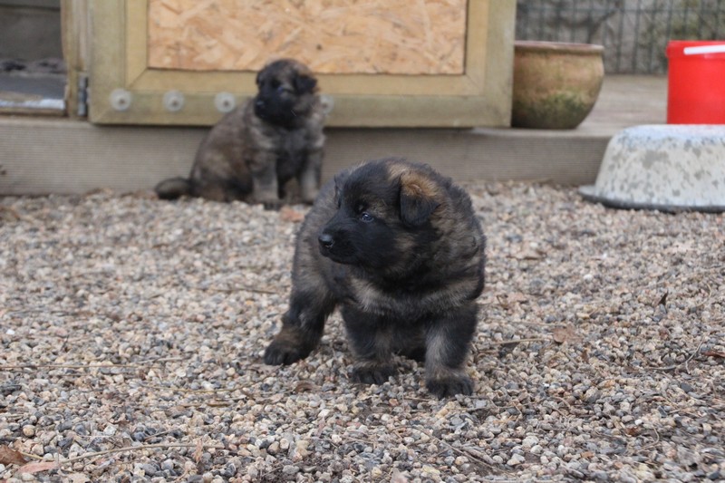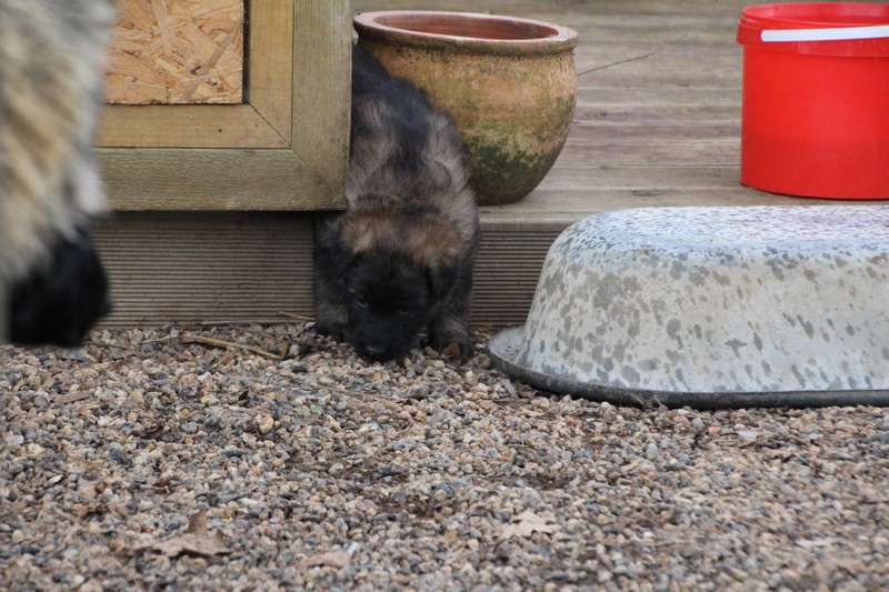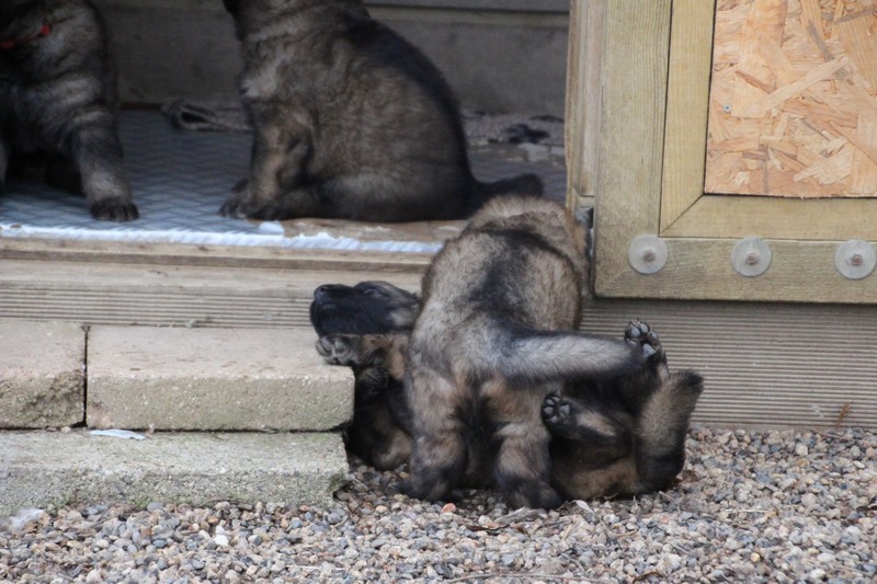 Maman est venue nous voir dans notre parc, mais aussi le reste de la meute, on s’amuse beaucoup avec les grands, surtout avec Sioux et Perle, nous adorons leur courir derrière….