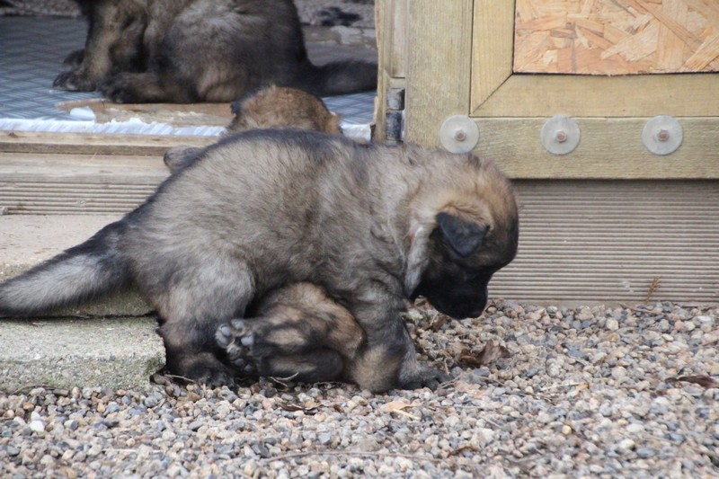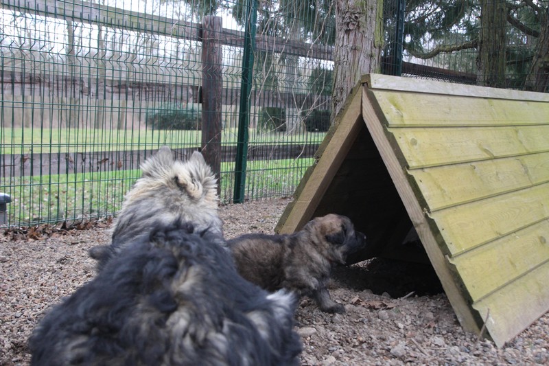 D’ailleurs aujourd’hui nous avons changé de classe, après avoir connu la nurserie, le jardin des chiots, nous venons d’intégrer la grande section!! Alors c’est quoi ce truc là ? Et bien nous avons été mis dans un parc extérieur, bon à mi temps pour commencer, nous y allons que l’après midi et vers 17H00 nous sommes re-mi au jardin des chiots, c’est une façon de nous faire encore découvrir un nouvel endroit, normalement demain Corinne va accrocher pleins de truc colorés qui bougent avec le vent et qui font du bruit, il parait que cela sert à nous stimuler et à développer notre curiosité une façon aussi de nous habitué au monde extérieur.