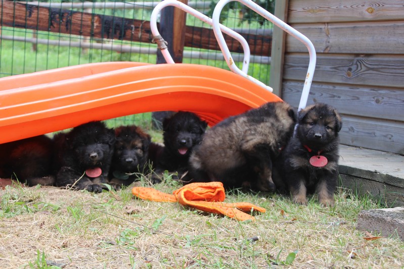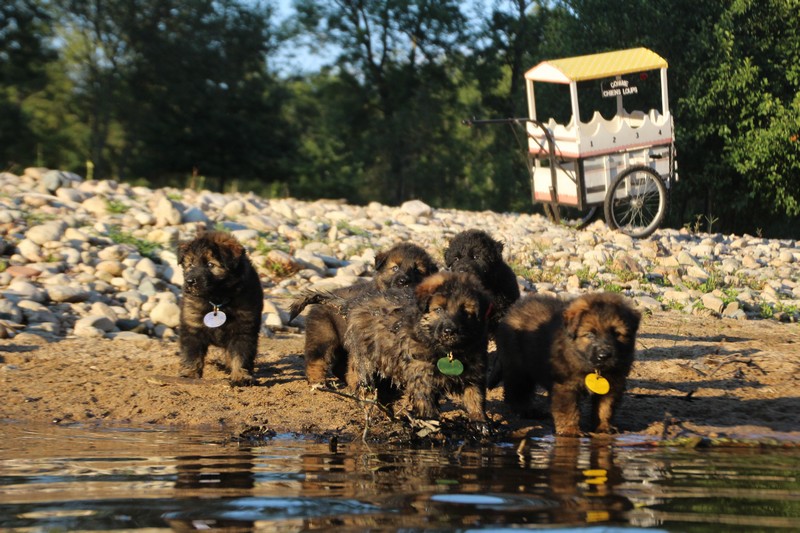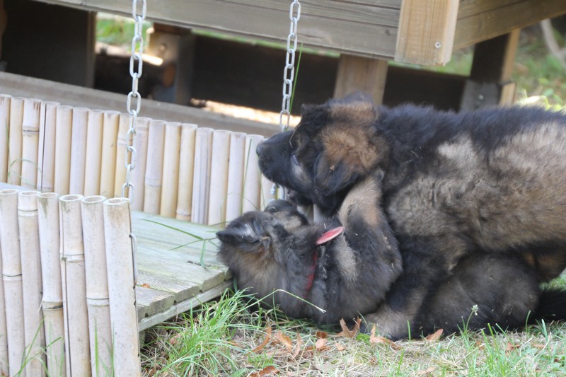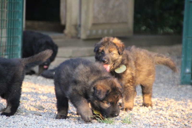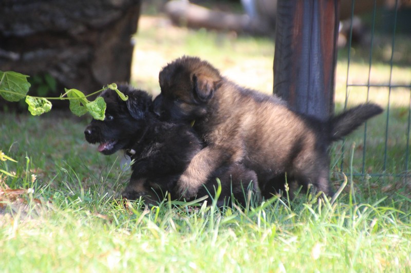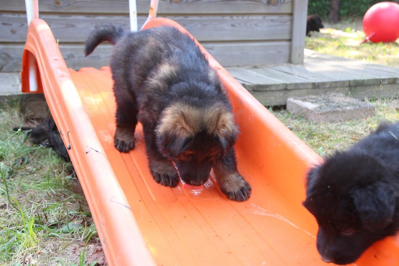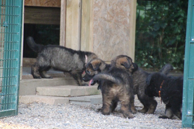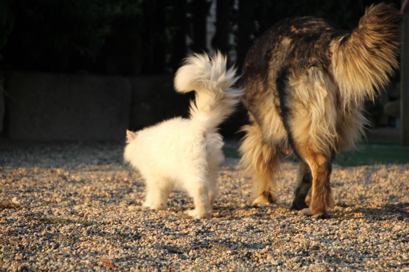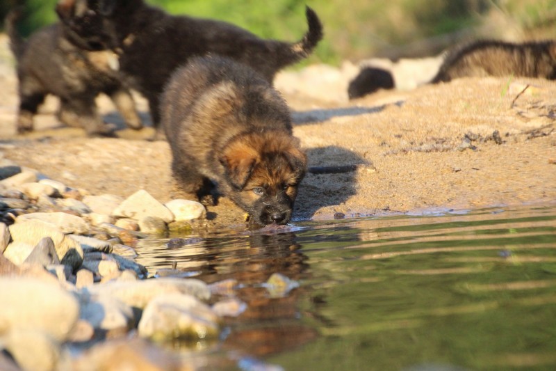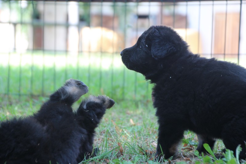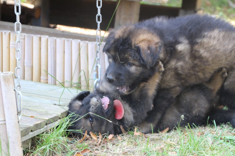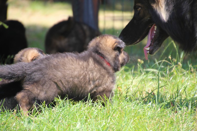 On sort également souvent du parc et tout doucement on élargit nos espaces de vie. Toujours accompagnés de maman et le reste de la meute, nous affinons notre communication.