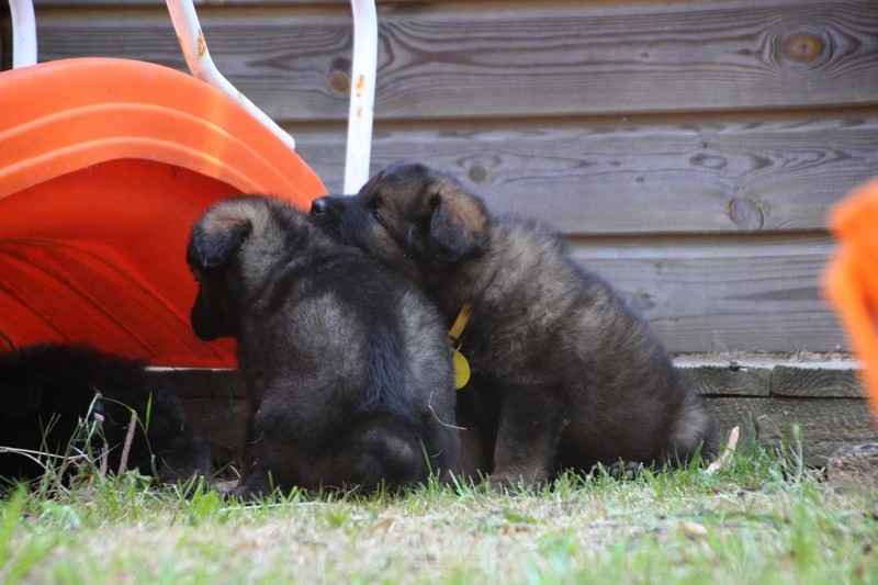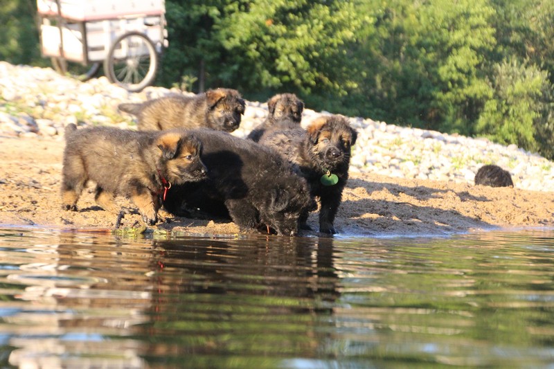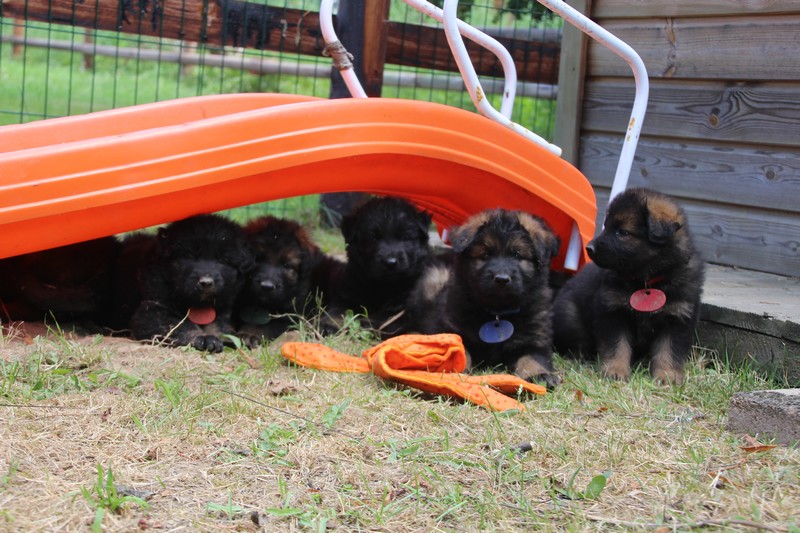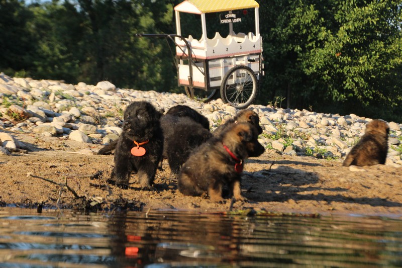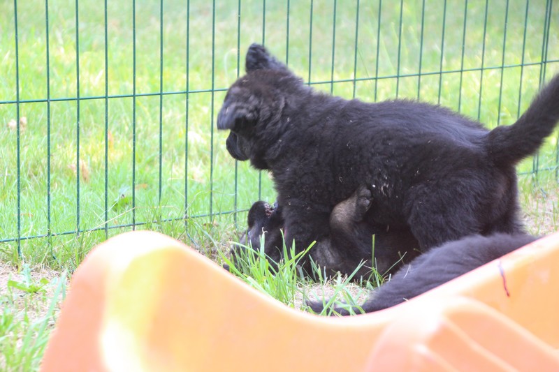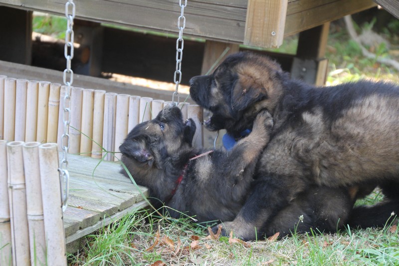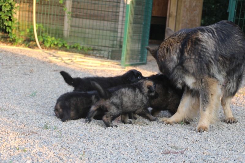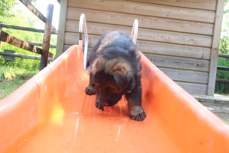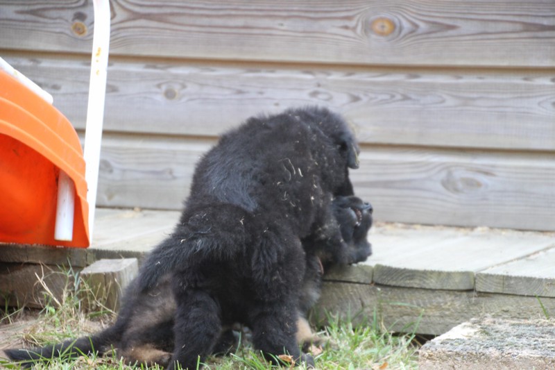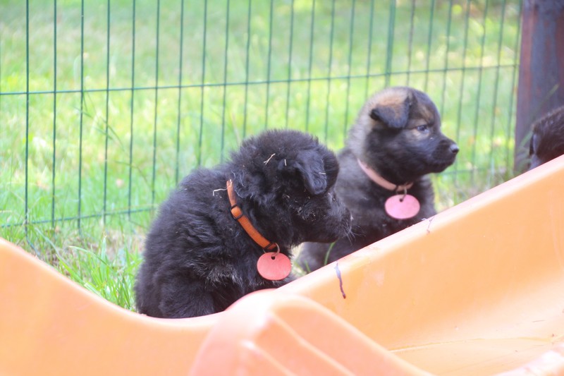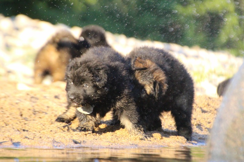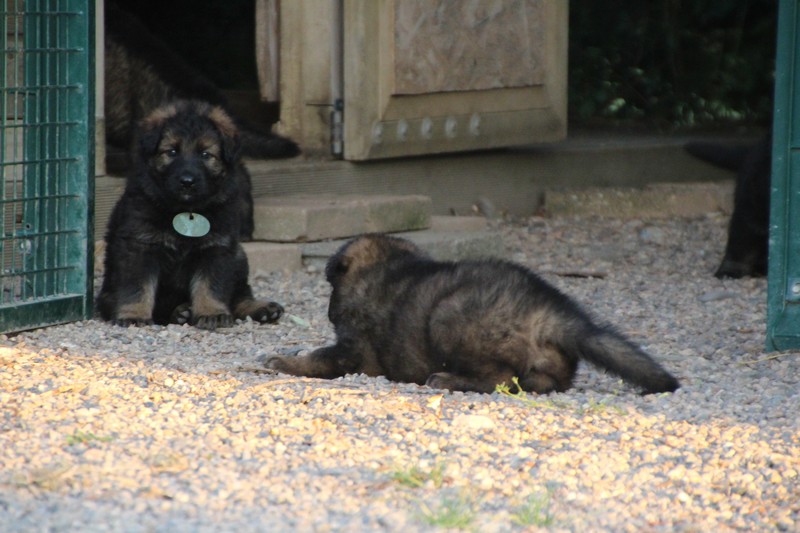 On sort également souvent du parc et tout doucement on élargit nos espaces de vie. Toujours accompagnés de maman et le reste de la meute, nous affinons notre communication.