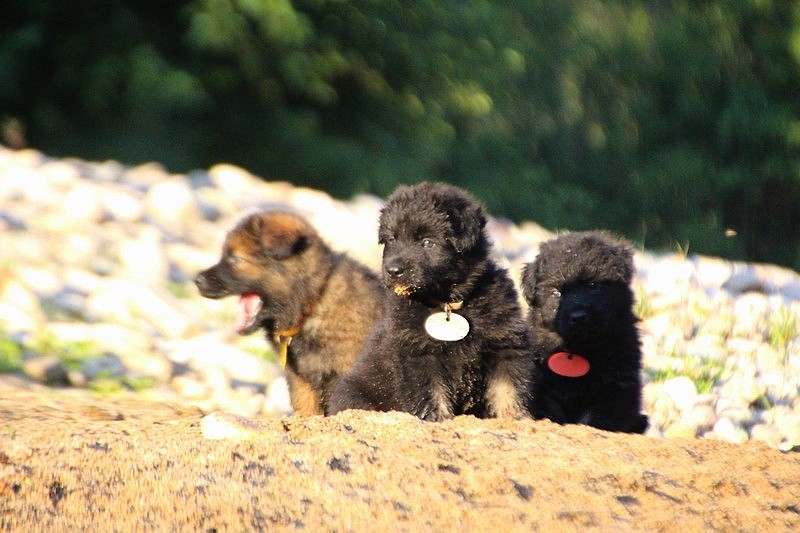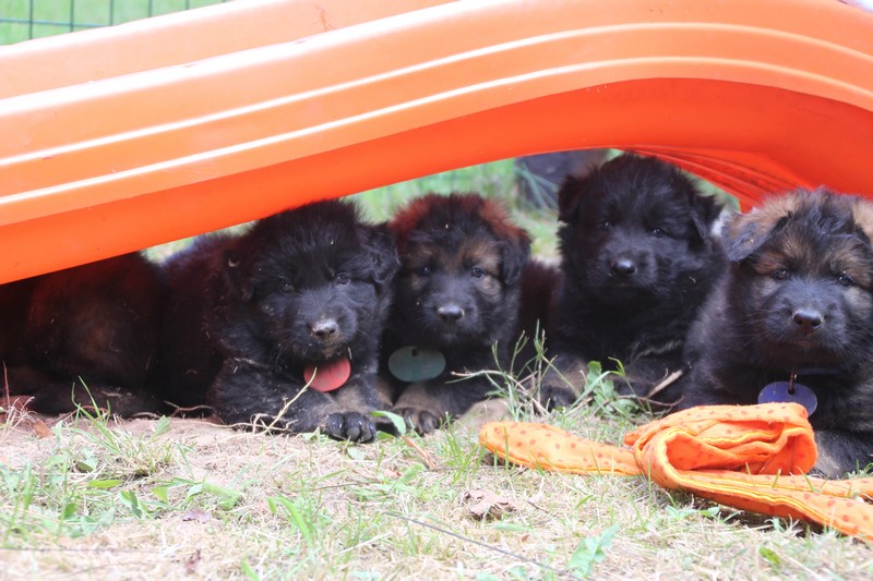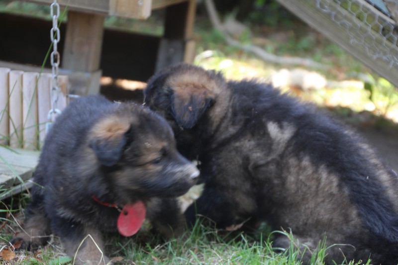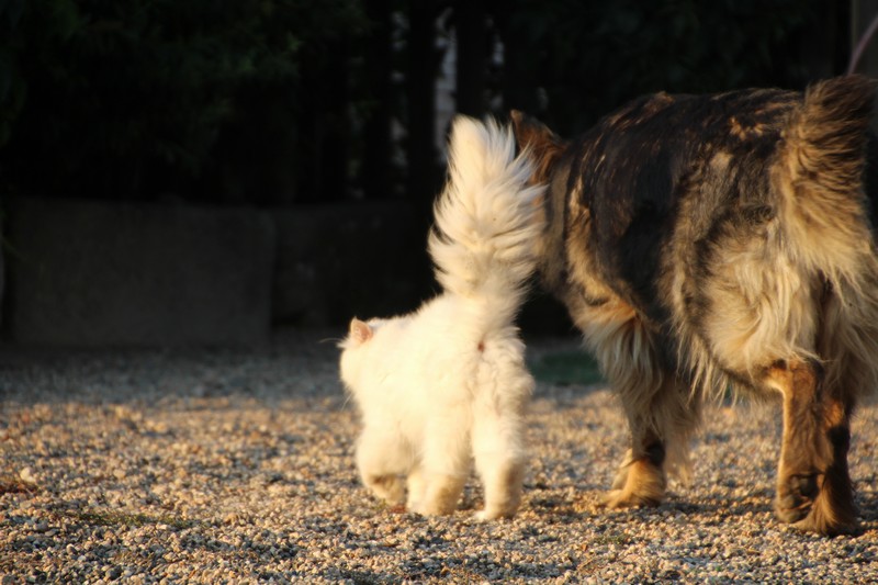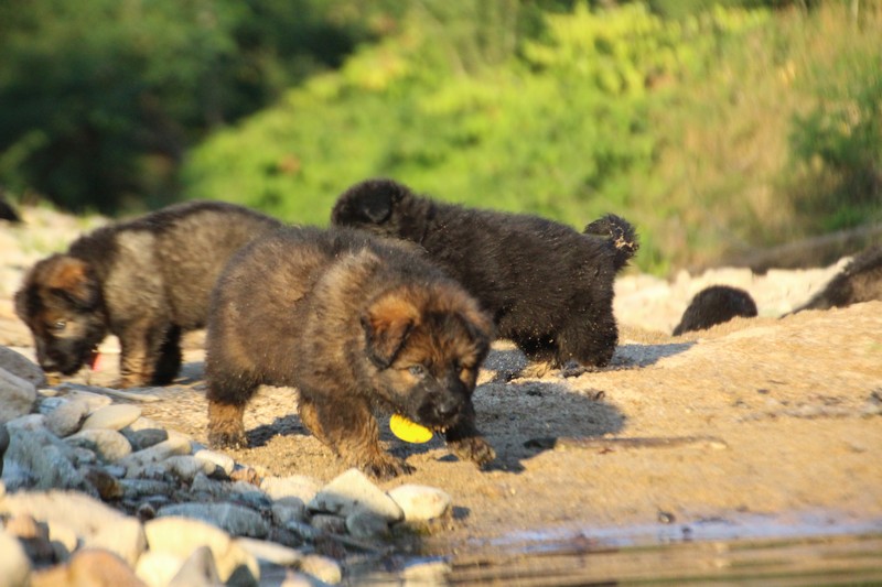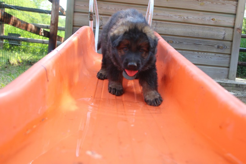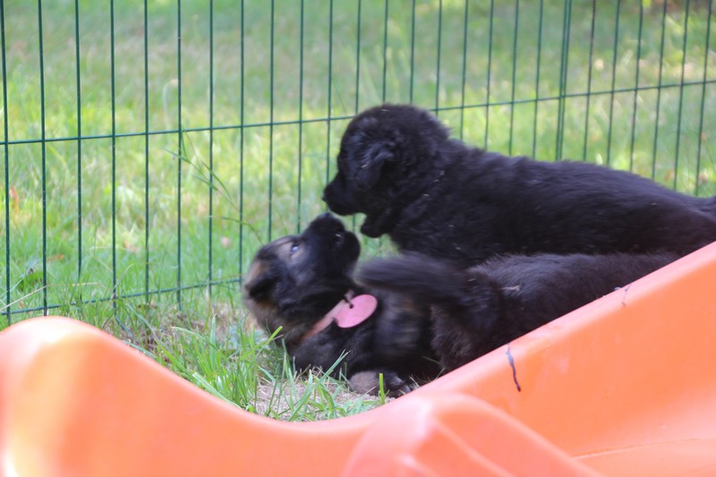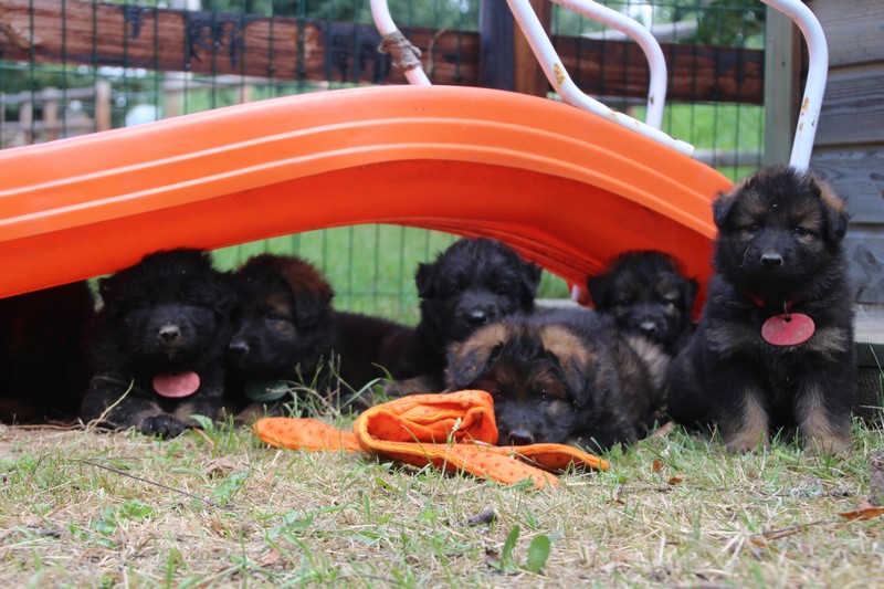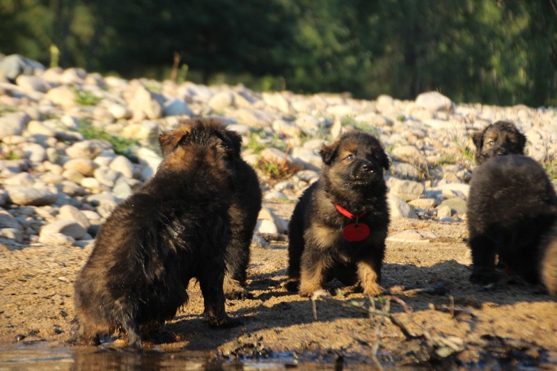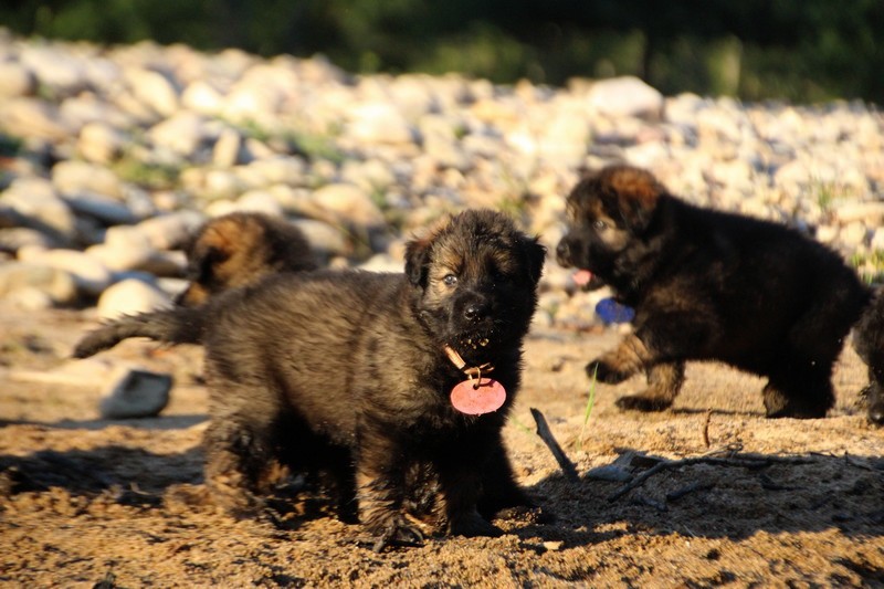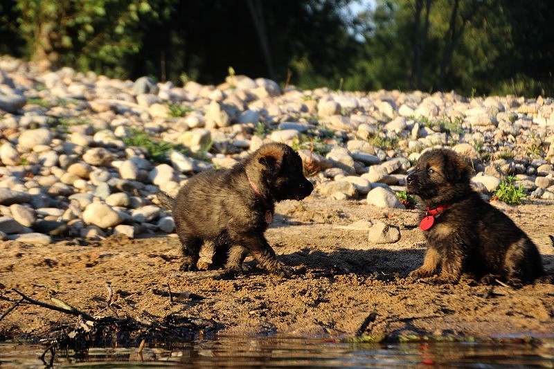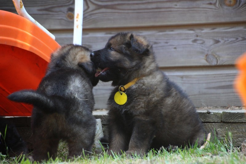 On sort également souvent du parc et tout doucement on élargit nos espaces de vie. Toujours accompagnés de maman et le reste de la meute, nous affinons notre communication.