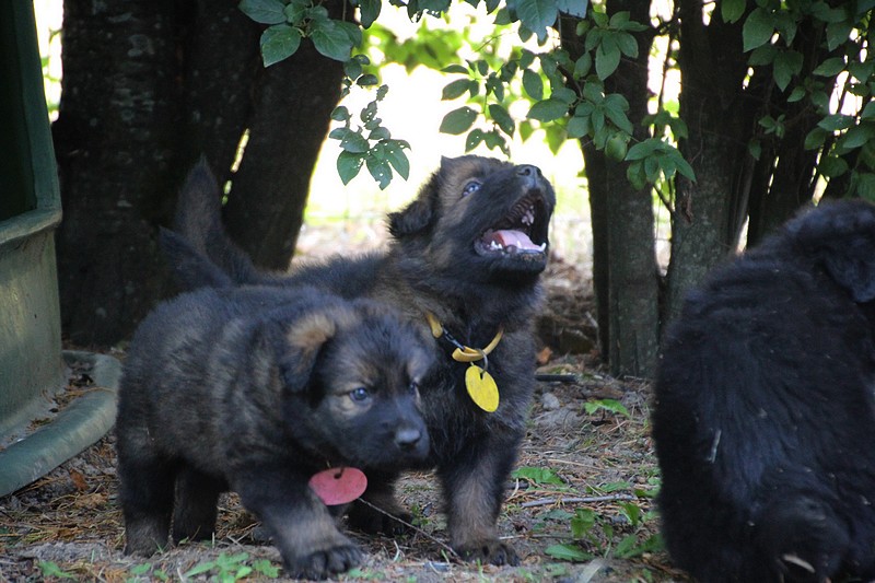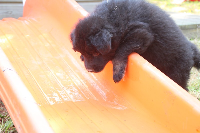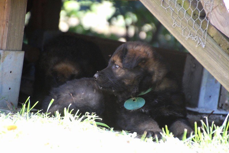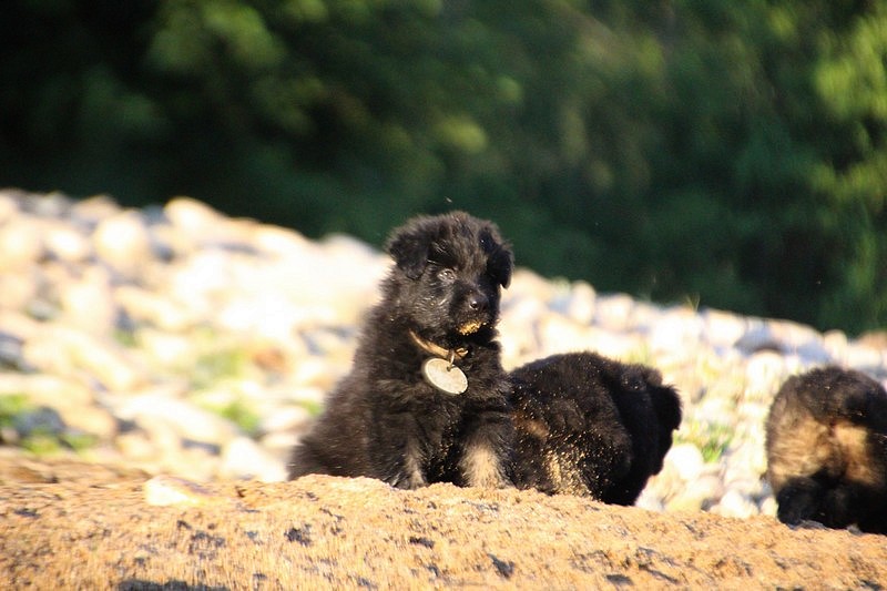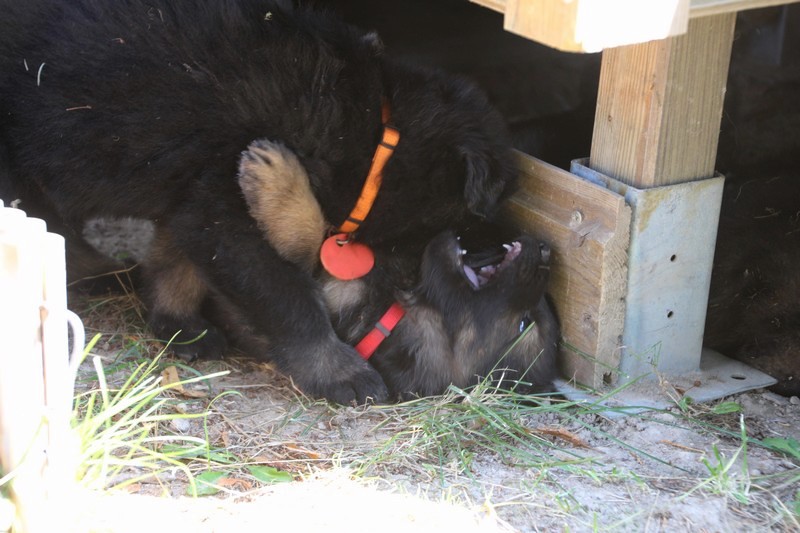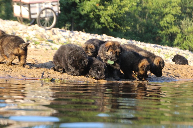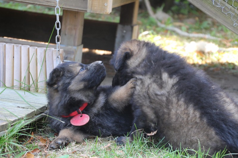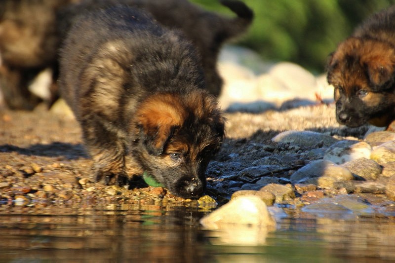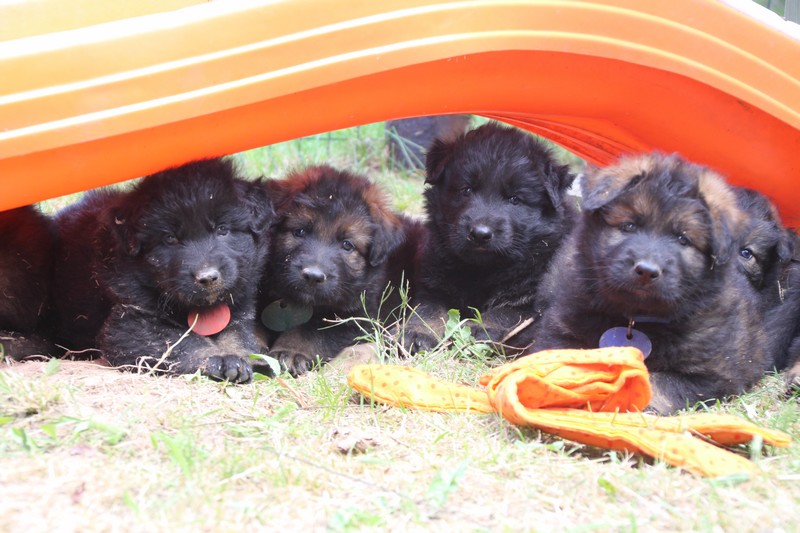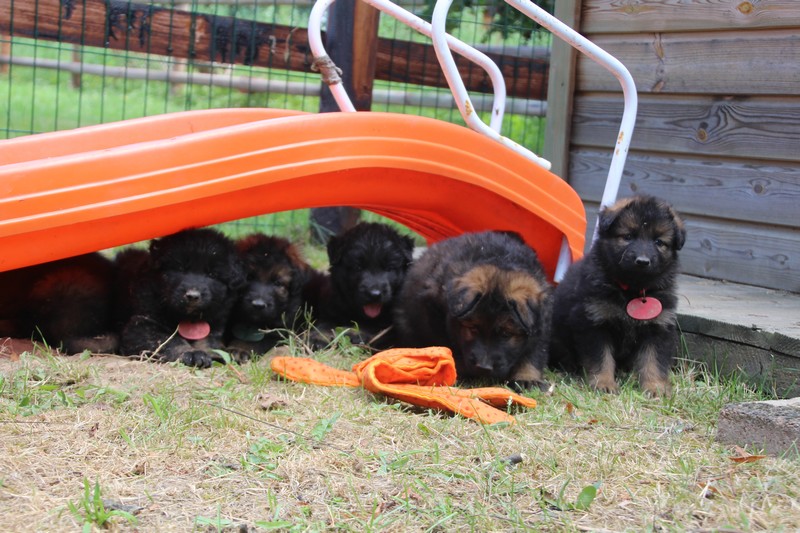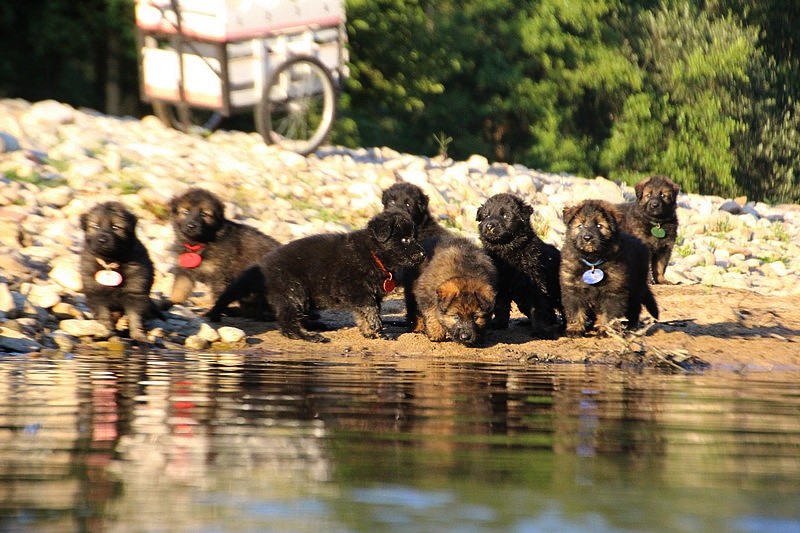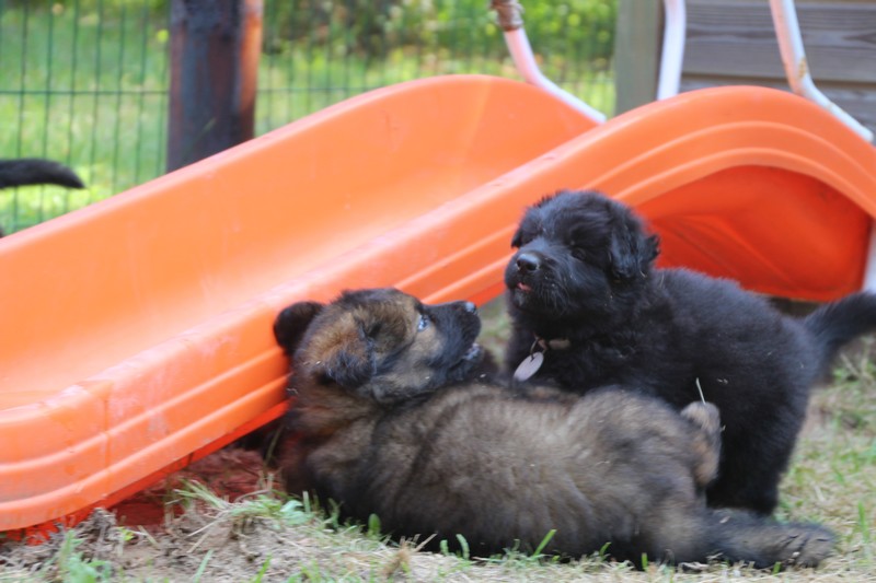 On sort également souvent du parc et tout doucement on élargit nos espaces de vie. Toujours accompagnés de maman et le reste de la meute, nous affinons notre communication.