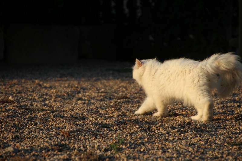 Notre pas copain est venu nous rendre visite, il n’est vraiment pas commode ce chat et il impose le respect ! alors nous, et bien on obéit au grand tigre…