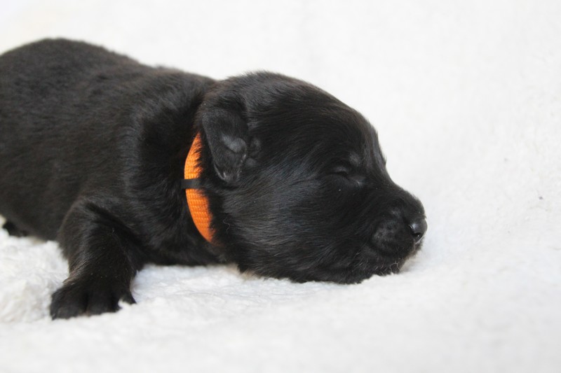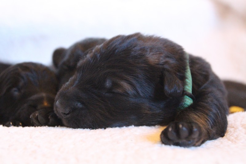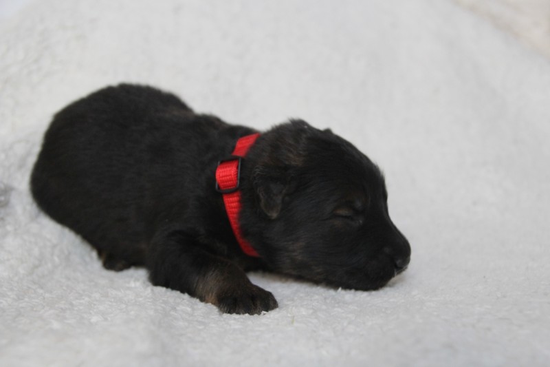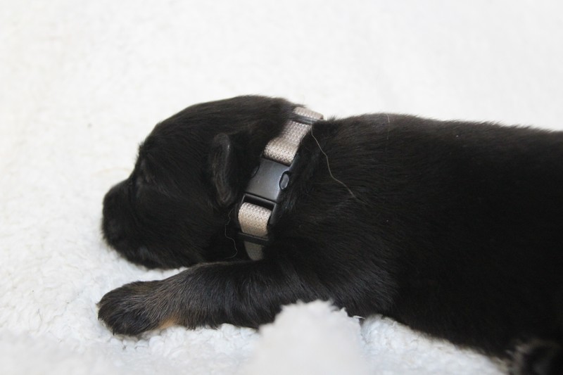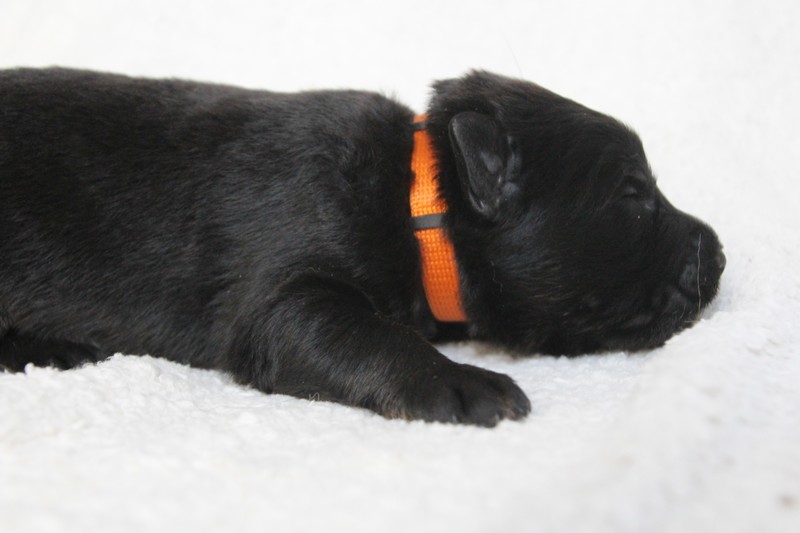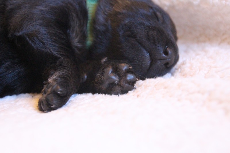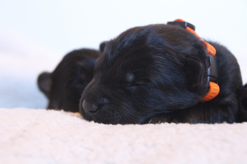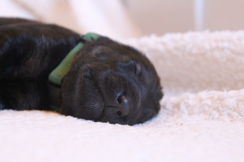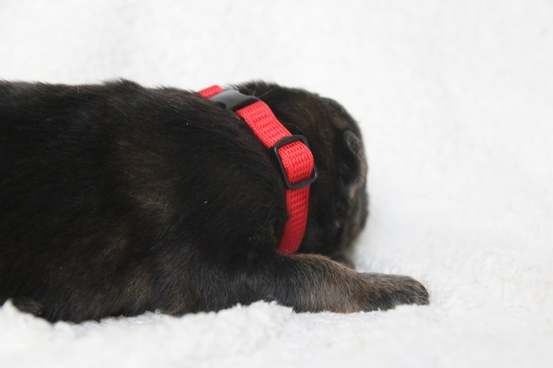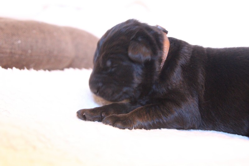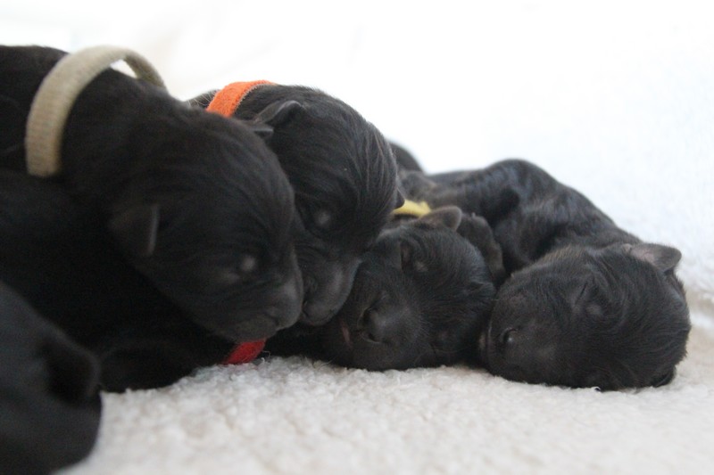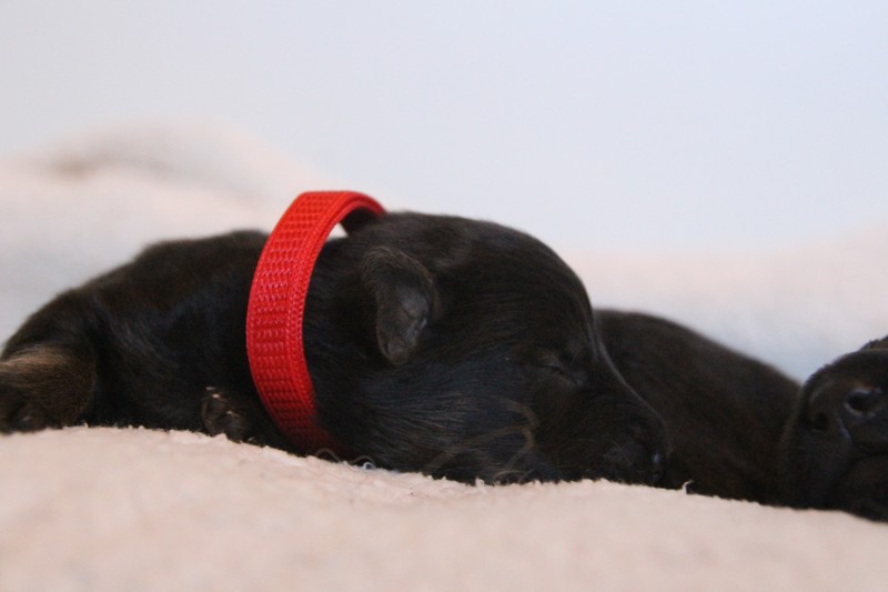 Quant à nous, nous grossissons bien, enfin presque bien… Quand les lourdauds, dont je ne citerais pas les couleurs, ne viennent pas me bousculer et voler la tétine à laquelle je m’accroche de toutes mes forces (c’est collier rouge au clavier). Au moment de la tétée, c’est vraiment l’anarchie. Heureusement, je suis un peu privilégiée et les plus goinfres sont mis dans une panière le temps du premier service. Moi j’ai même l’autorisation de manger aussi au deuxième… si petite et je suis pourtant au centre de toutes les attentions. En même temps, c’est logique que j’aie le droit à deux tournées, je fais la moitié du poids de certains. Mais je compte bien rattraper tout le monde, parce que si je suis peut-être petite, je suis surtout une vraie battante.