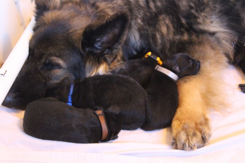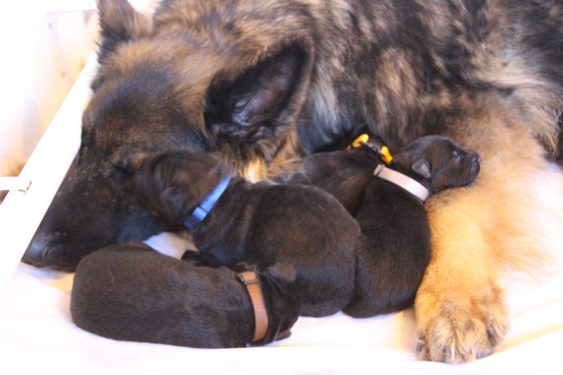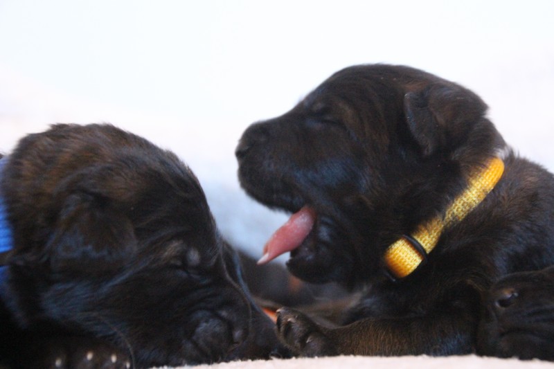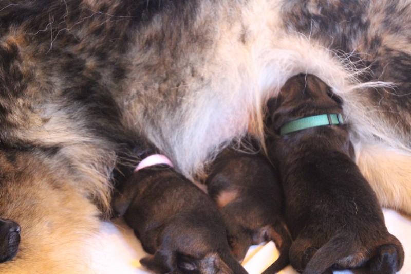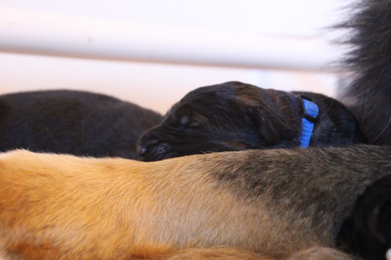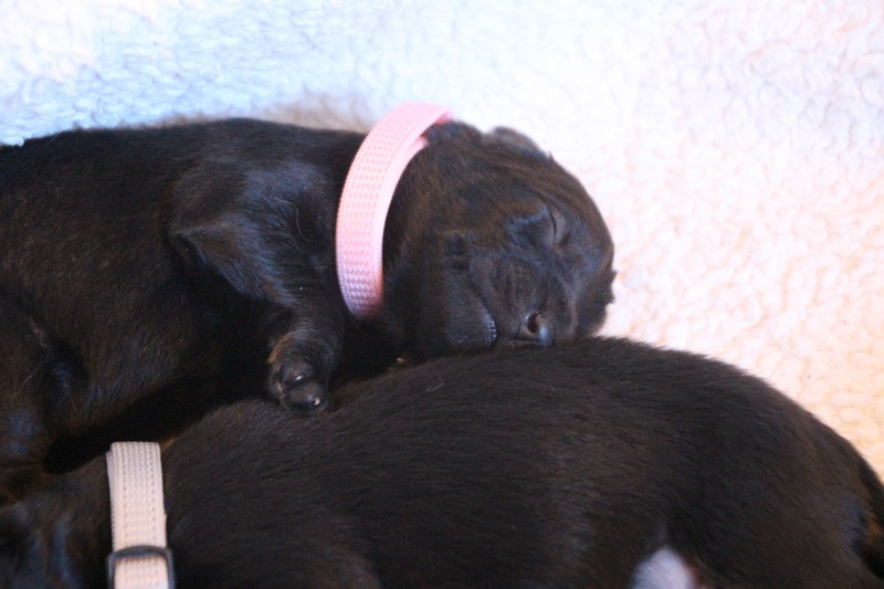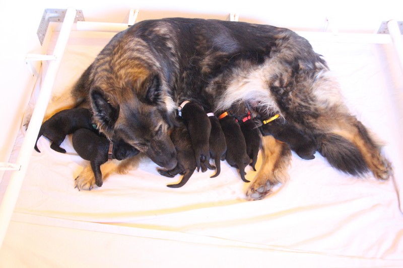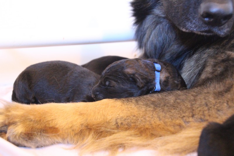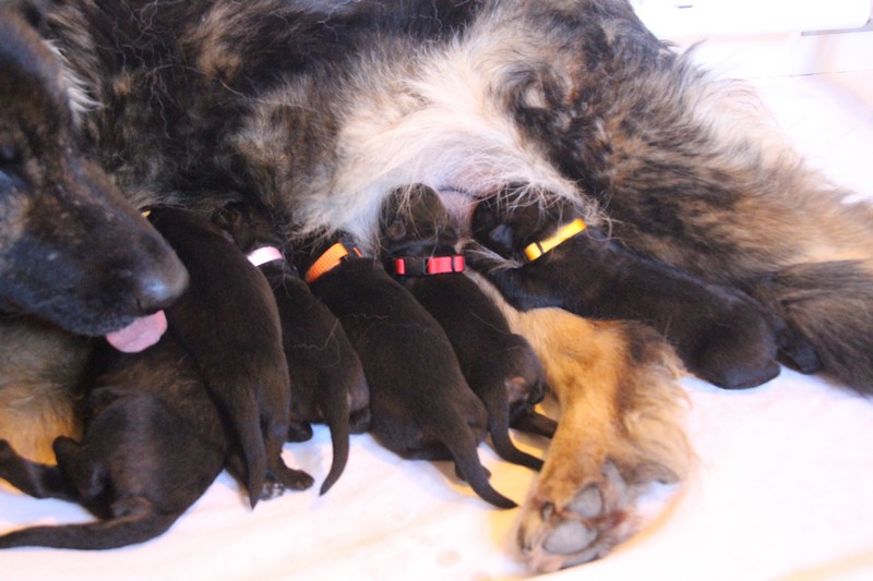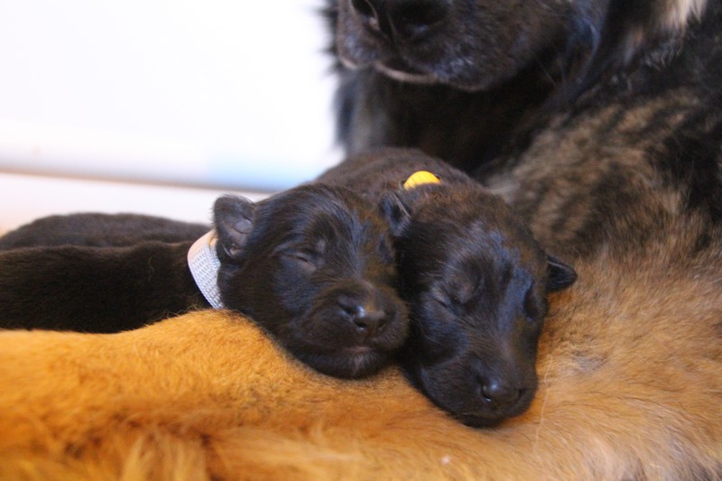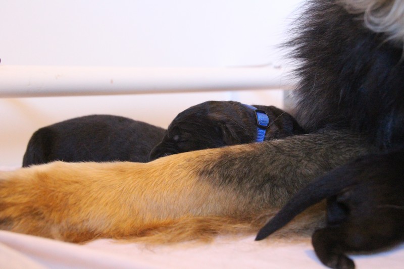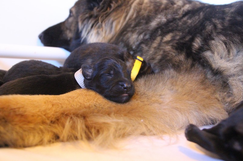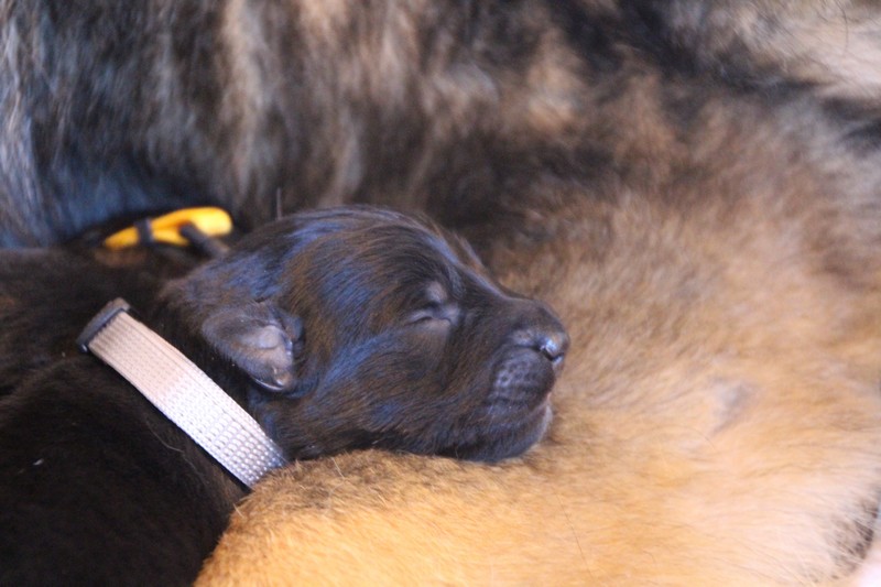 Nous avons malheureusement perdu notre petite sœur, la collier violet. Elle a été écrasée par maman dans la nuit de mercredi à jeudi. En prime, maman n’était pas en forme samedi matin. Elle a fait une mammite avec une montée de température. Heureusement, le super docteur l’a remise sur pattes, en deux temps, trois mouvements. Elle va beaucoup mieux et l’on espère que, maintenant, ce seront que de bonnes nouvelles qui suivront pour les 7 semaines à venir…