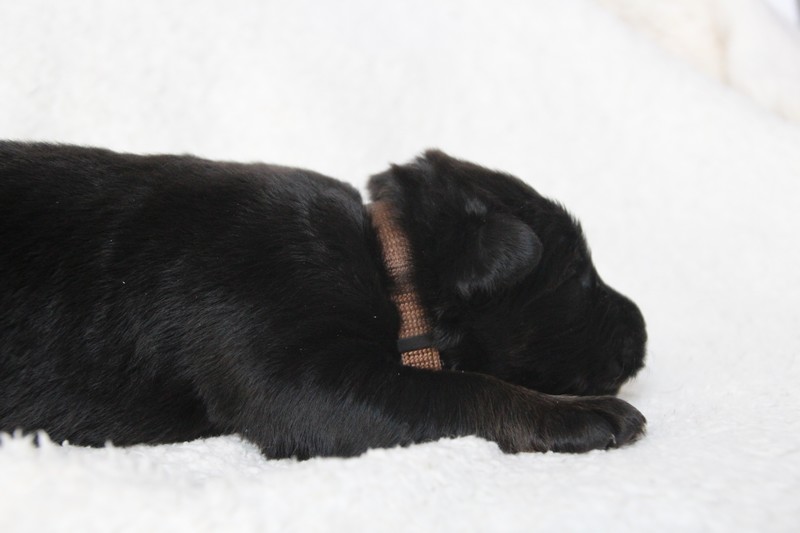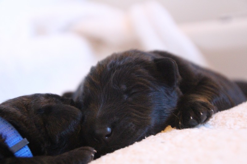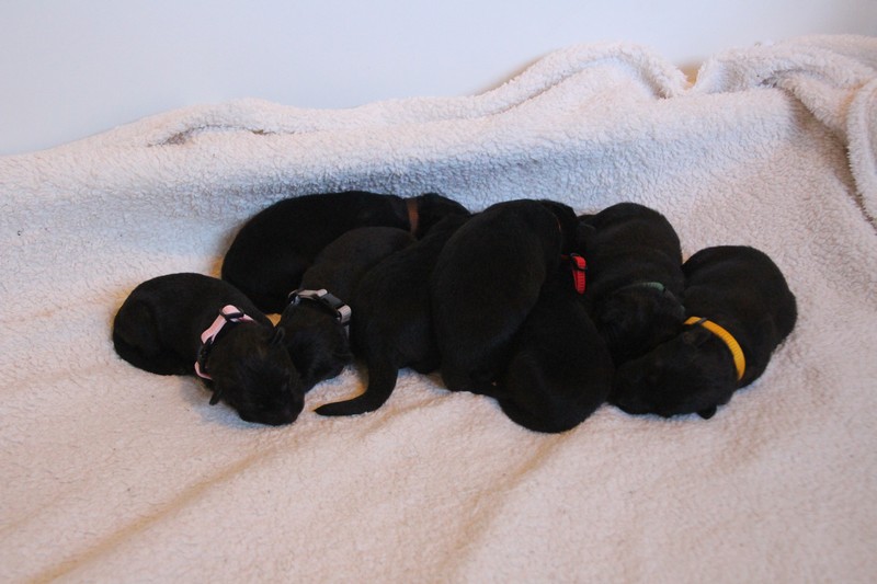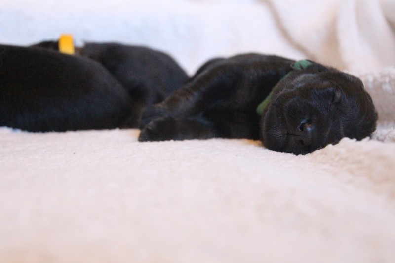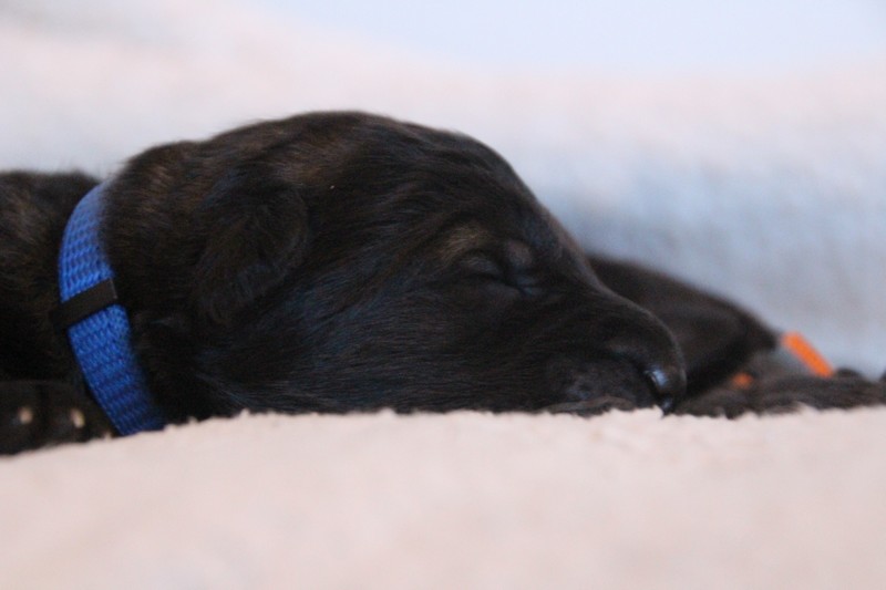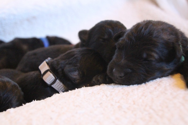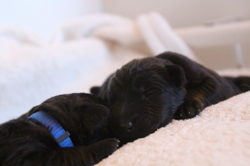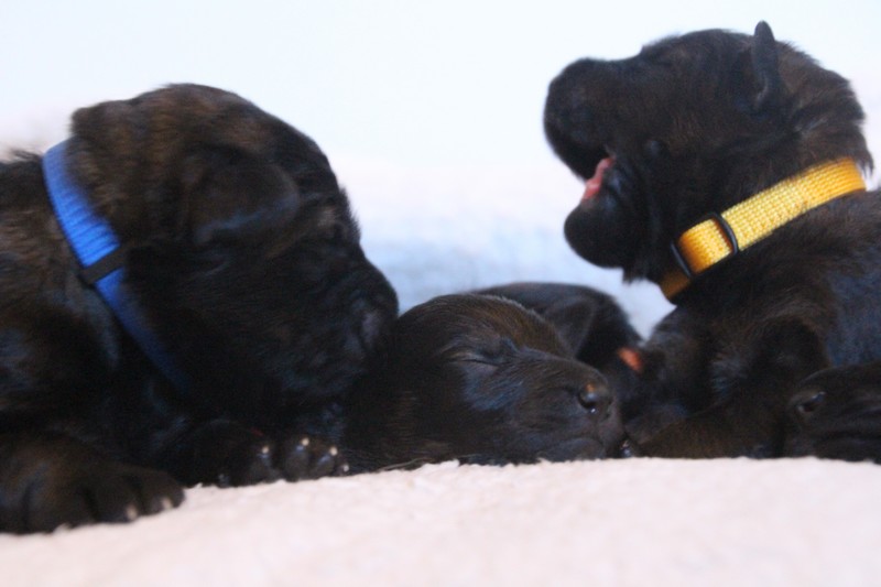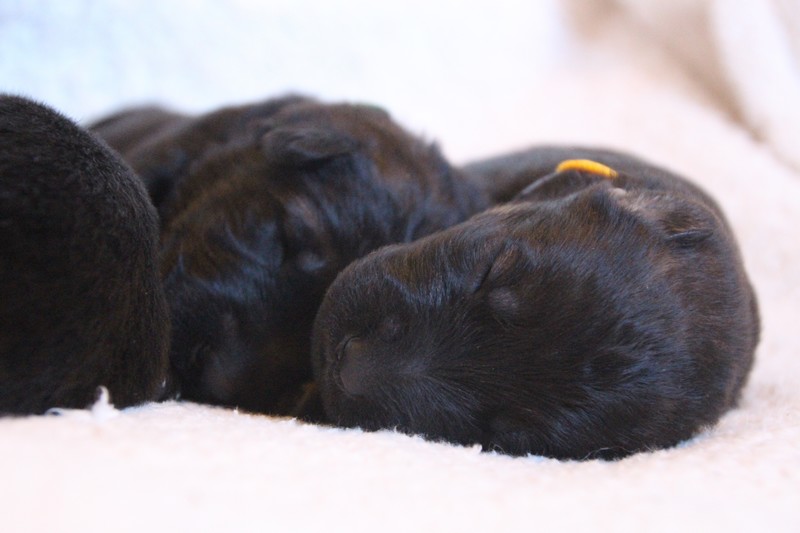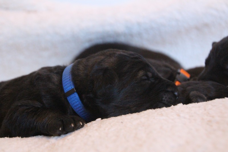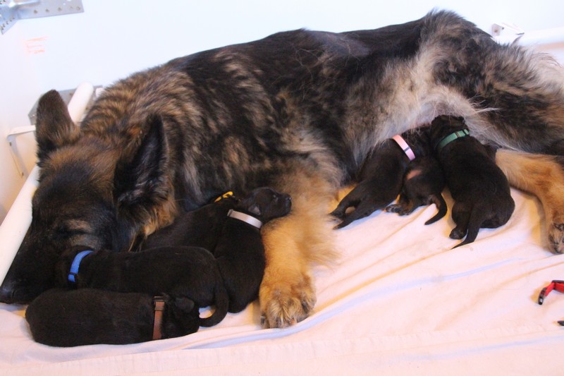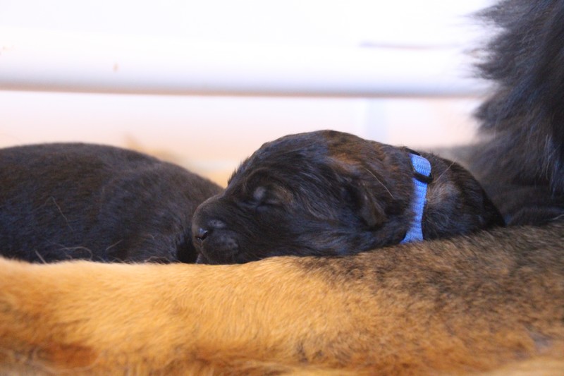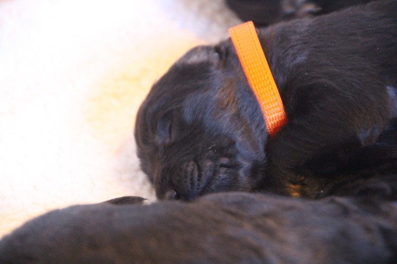 Nous avons malheureusement perdu notre petite sœur, la collier violet. Elle a été écrasée par maman dans la nuit de mercredi à jeudi. En prime, maman n’était pas en forme samedi matin. Elle a fait une mammite avec une montée de température. Heureusement, le super docteur l’a remise sur pattes, en deux temps, trois mouvements. Elle va beaucoup mieux et l’on espère que, maintenant, ce seront que de bonnes nouvelles qui suivront pour les 7 semaines à venir…