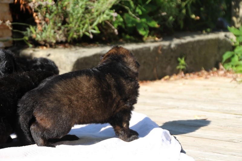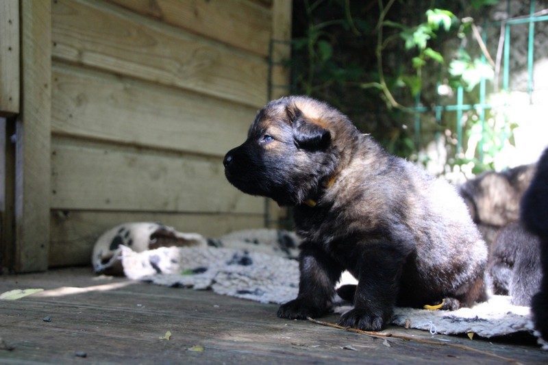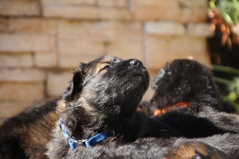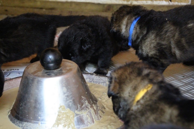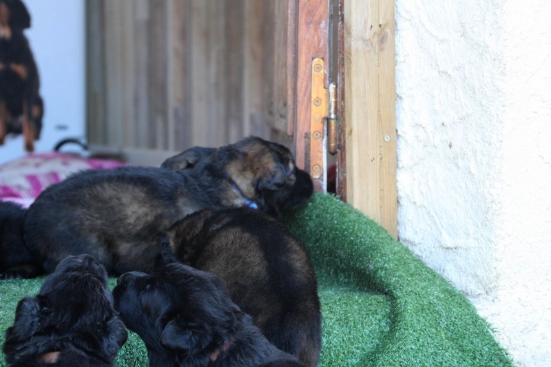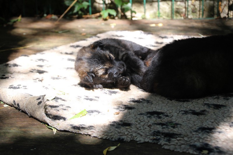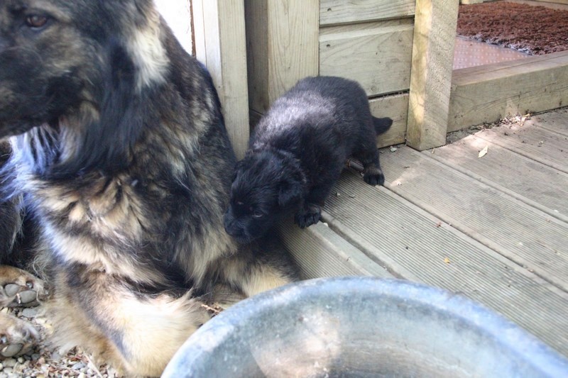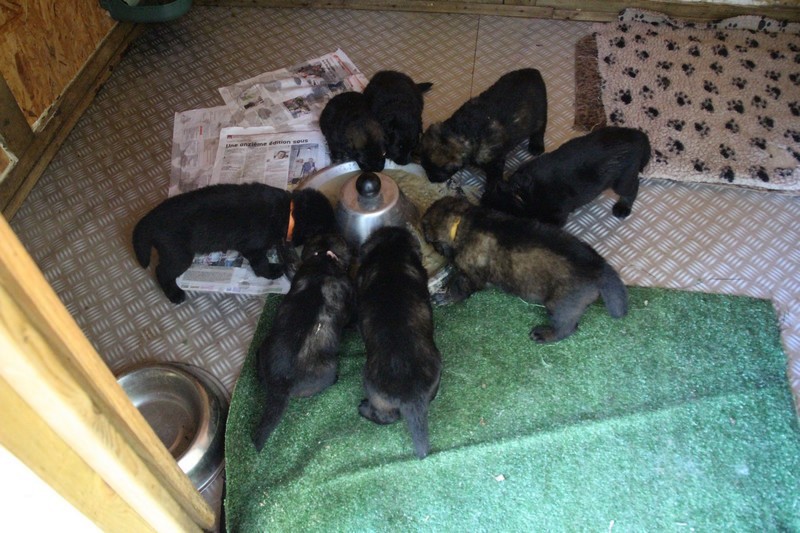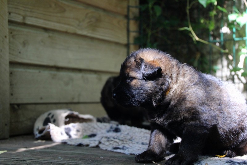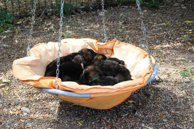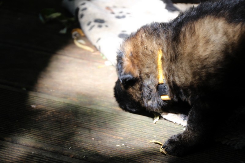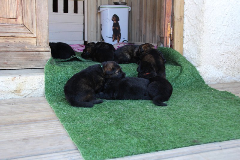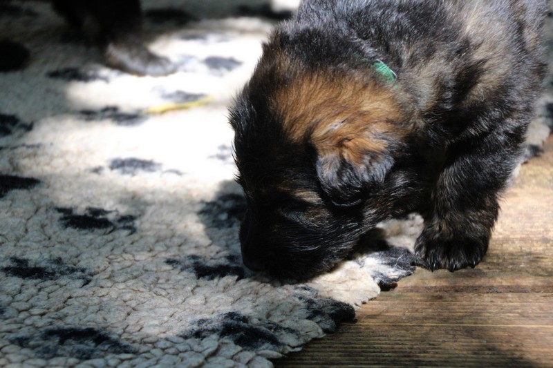 Nous avons découvert le parc à chiots, l’endroit où tous les petits poilus passent leurs nuits, durant les 4 dernières semaines à l’élevage. Une fois, les repères pris en journée, il sera temps pour nous de dormir sans maman.