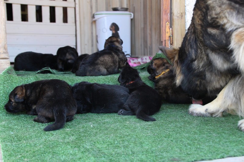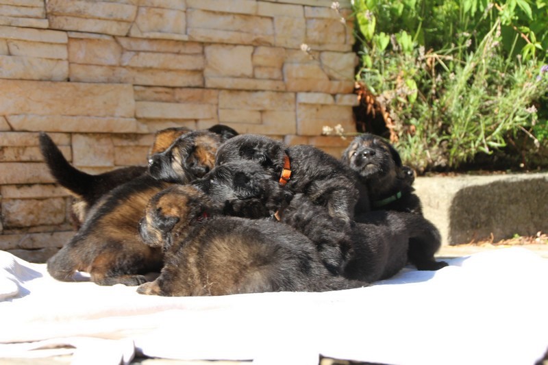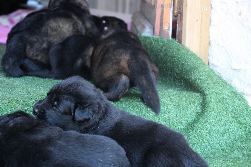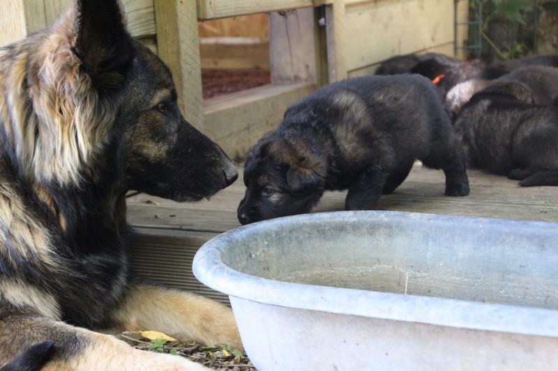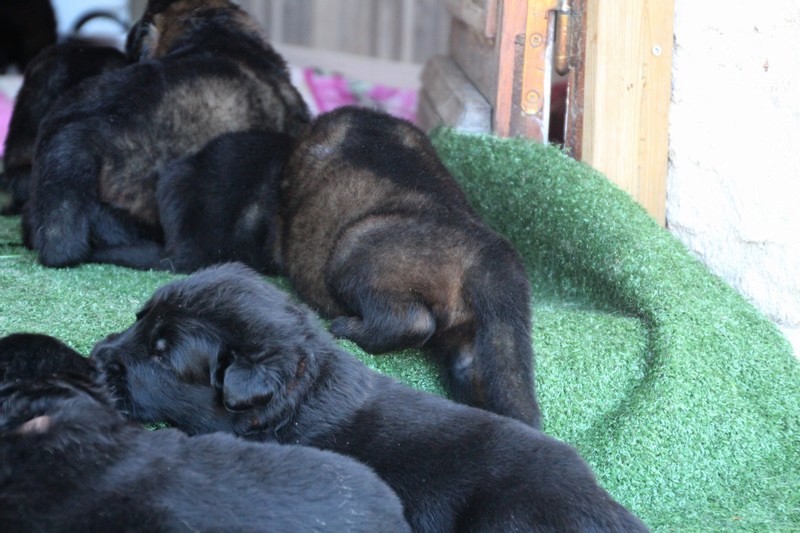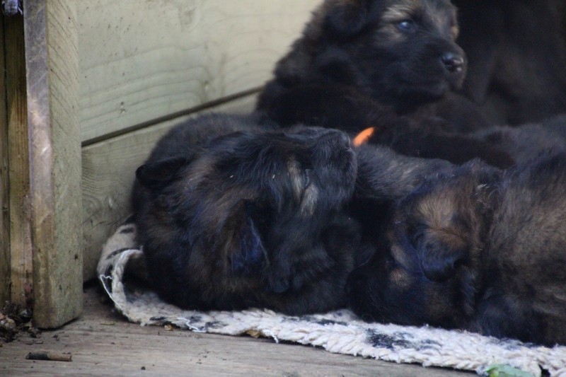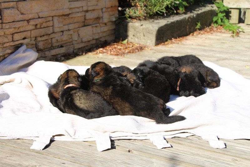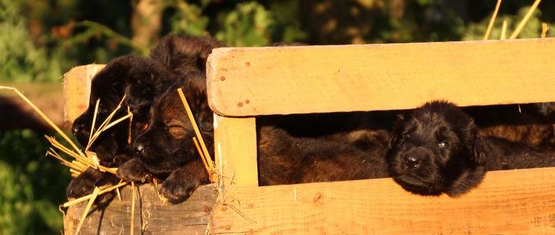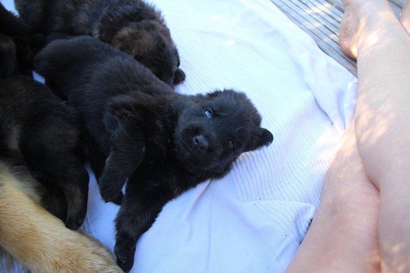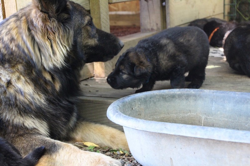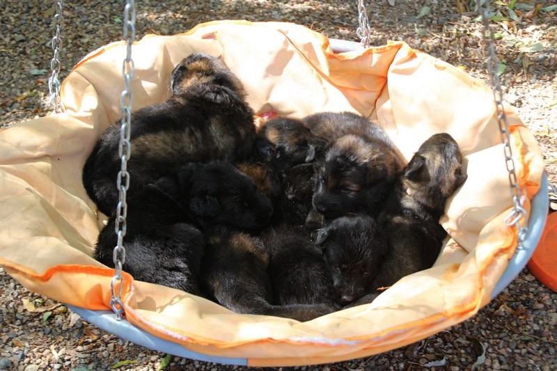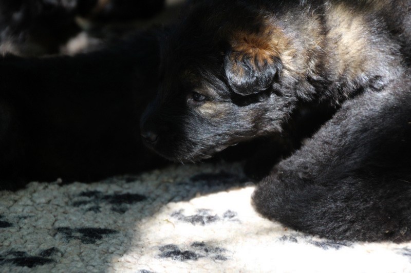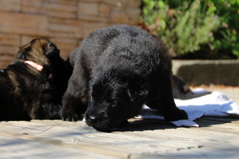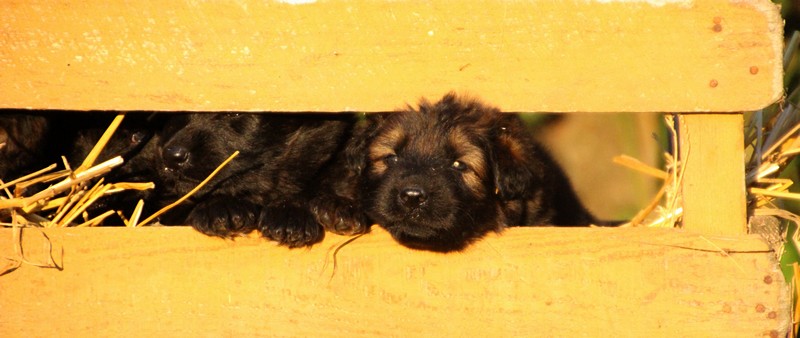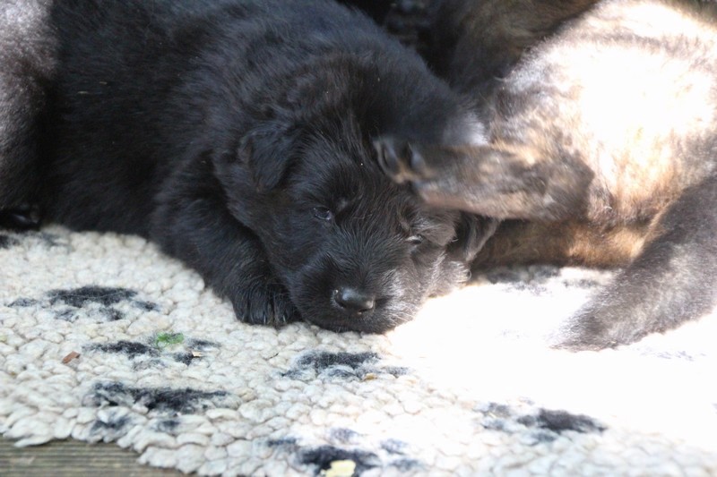 Nous avons découvert le parc à chiots, l’endroit où tous les petits poilus passent leurs nuits, durant les 4 dernières semaines à l’élevage. Une fois, les repères pris en journée, il sera temps pour nous de dormir sans maman.