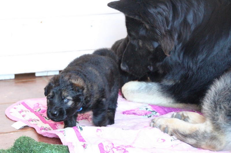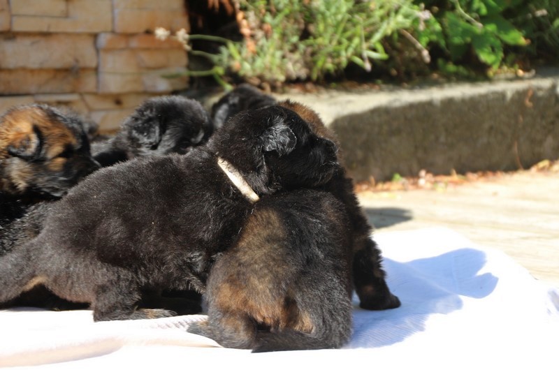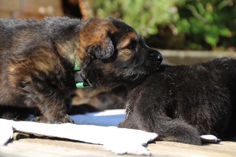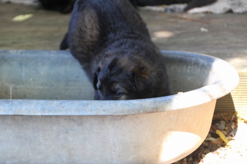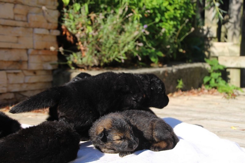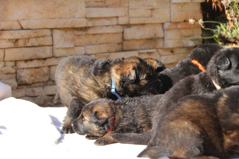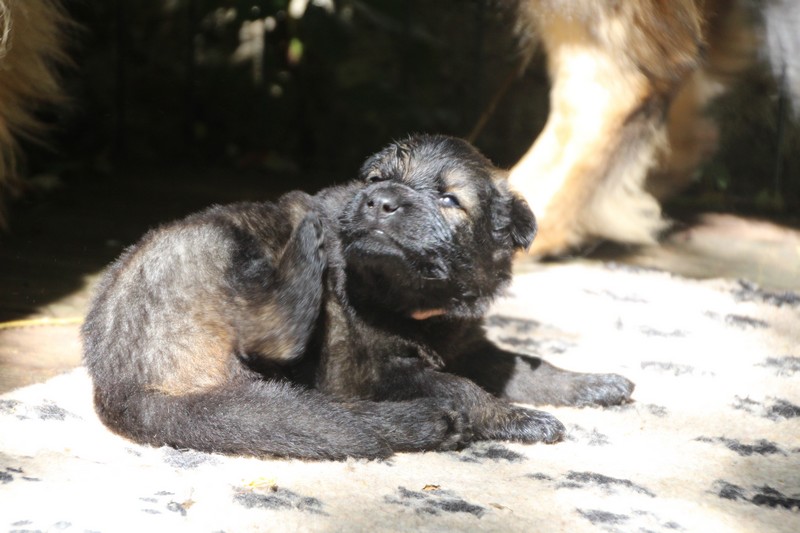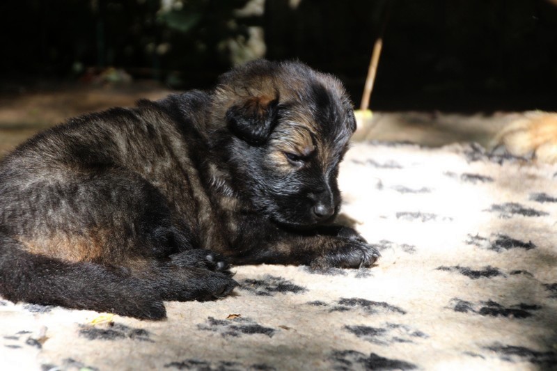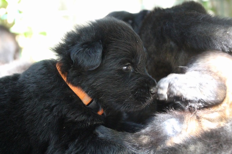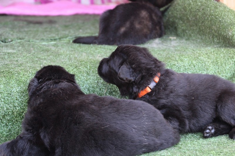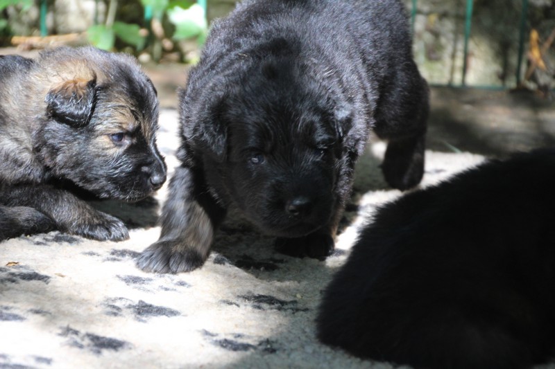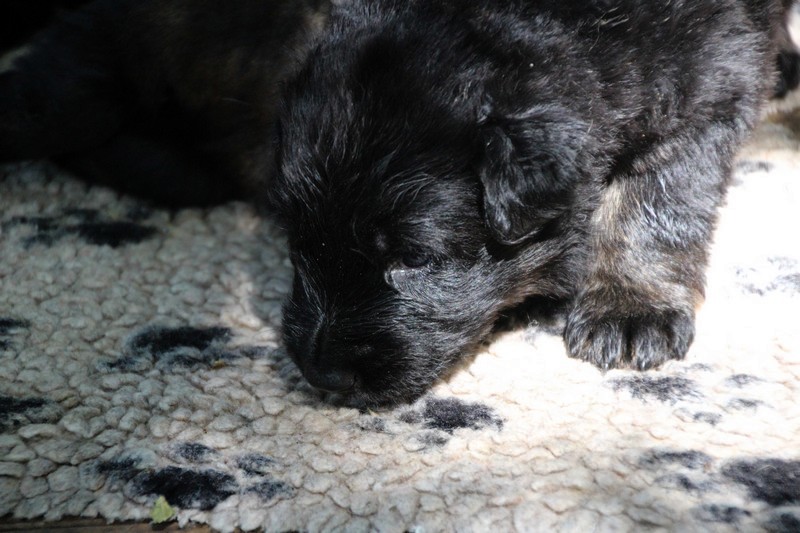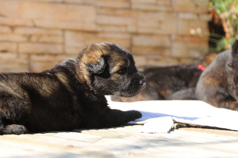 Nous avons découvert le parc à chiots, l’endroit où tous les petits poilus passent leurs nuits, durant les 4 dernières semaines à l’élevage. Une fois, les repères pris en journée, il sera temps pour nous de dormir sans maman.
