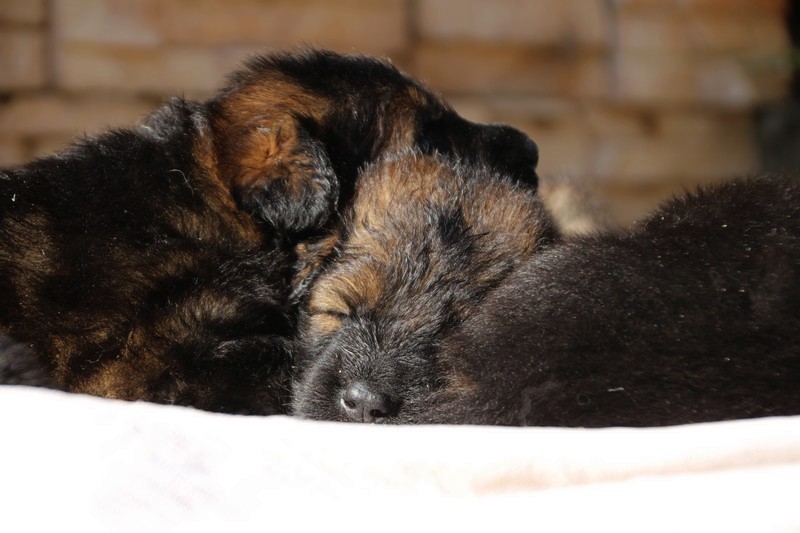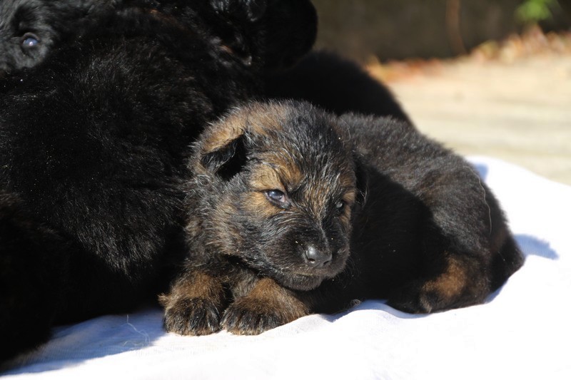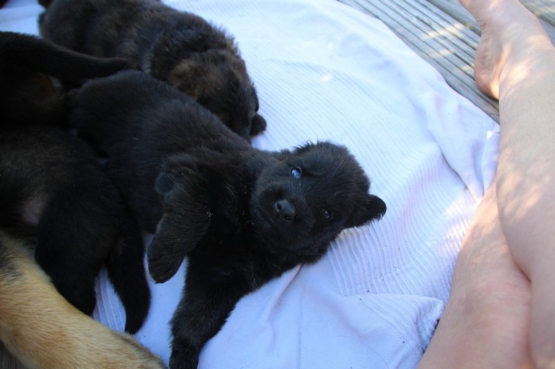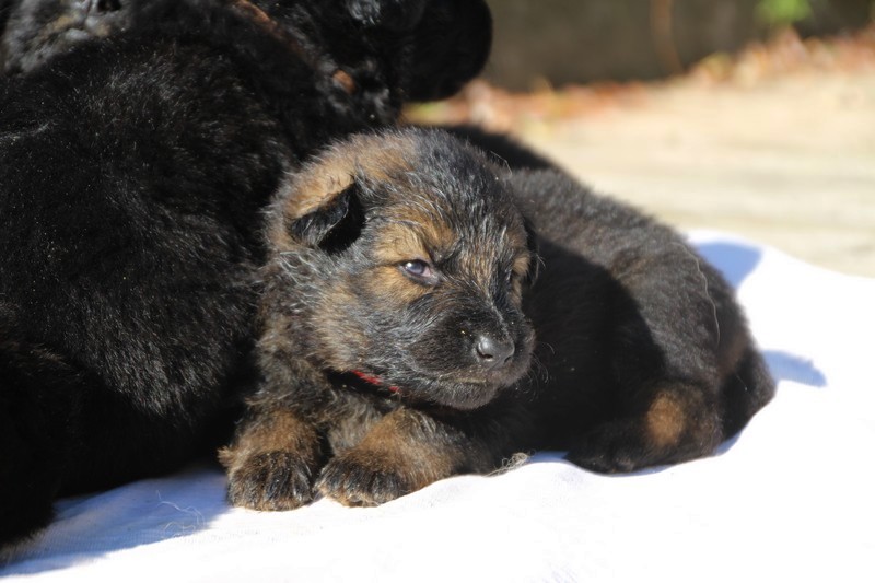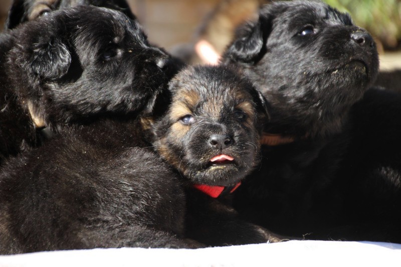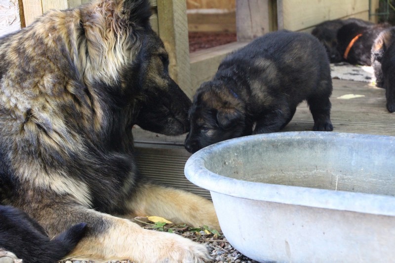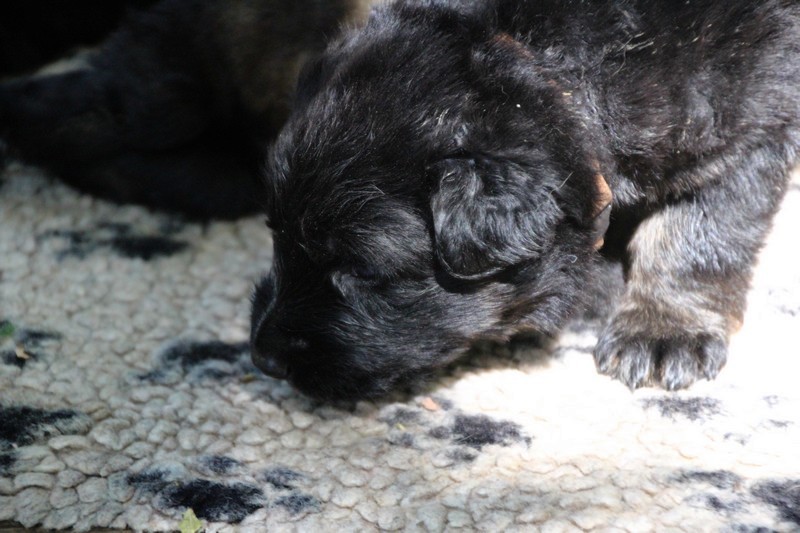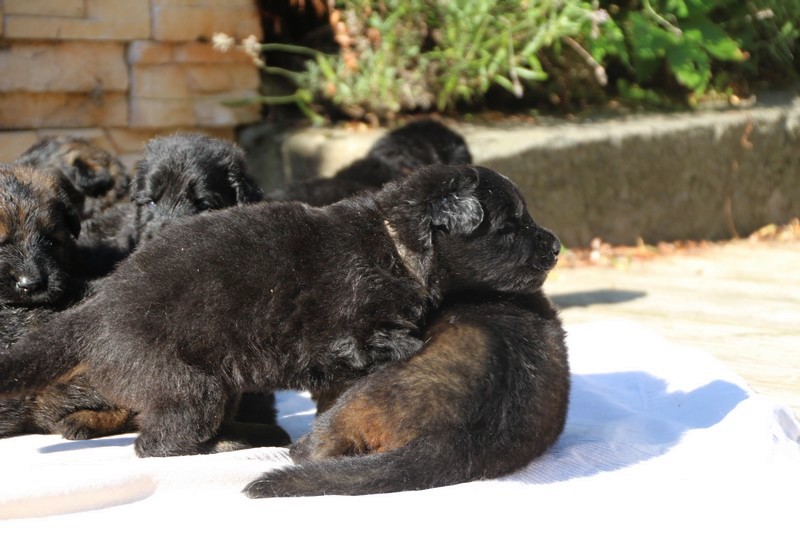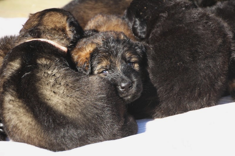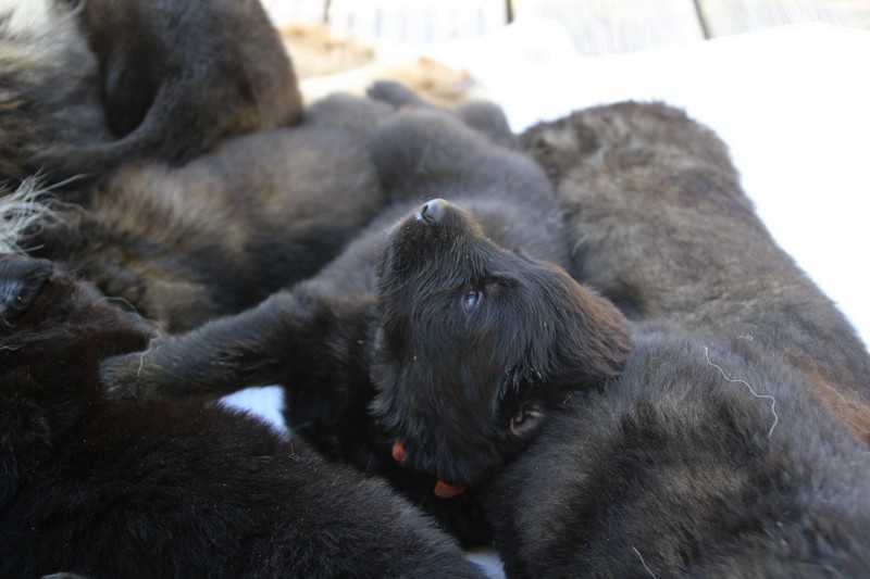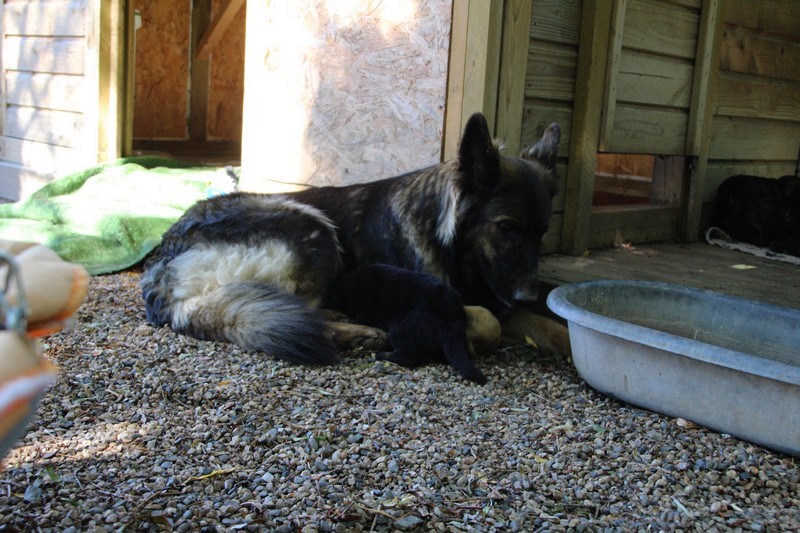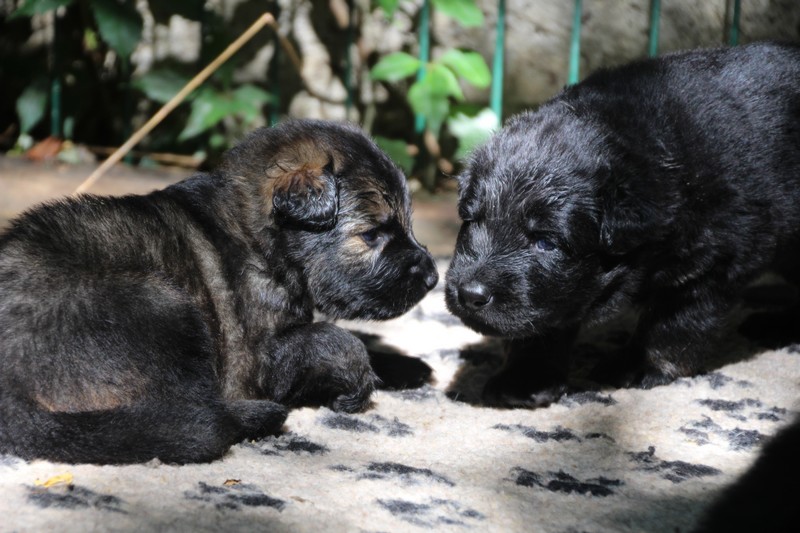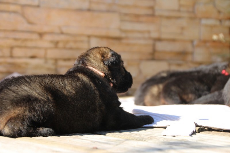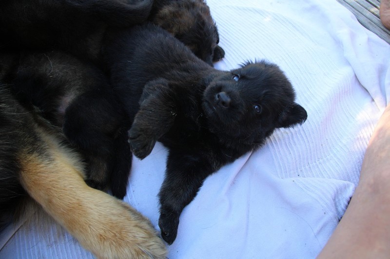Nous avons découvert le parc à chiots, l’endroit où tous les petits poilus passent leurs nuits, durant les 4 dernières semaines à l’élevage. Une fois, les repères pris en journée, il sera temps pour nous de dormir sans maman.
