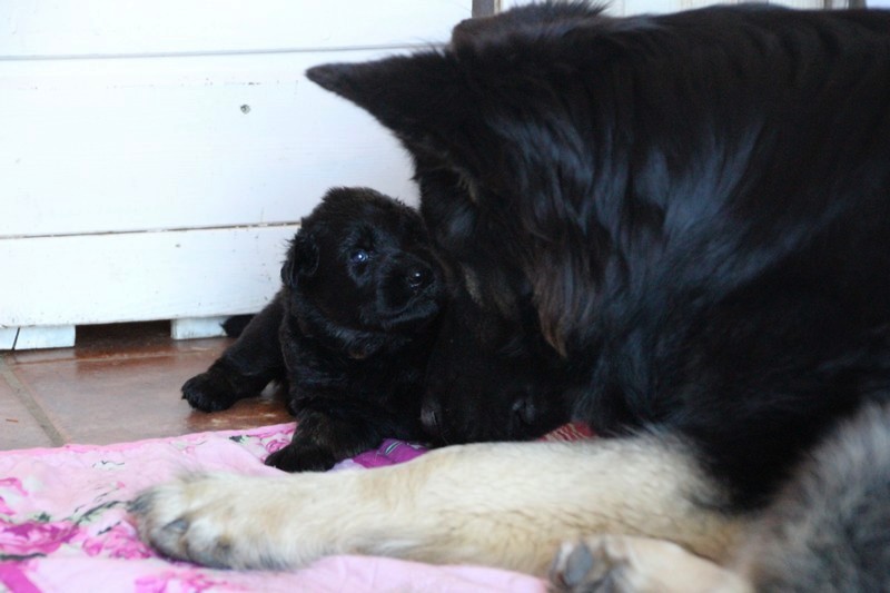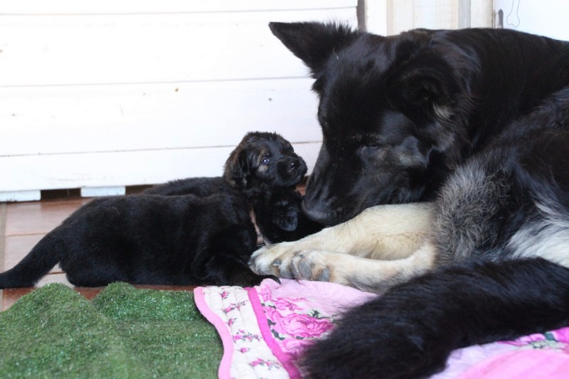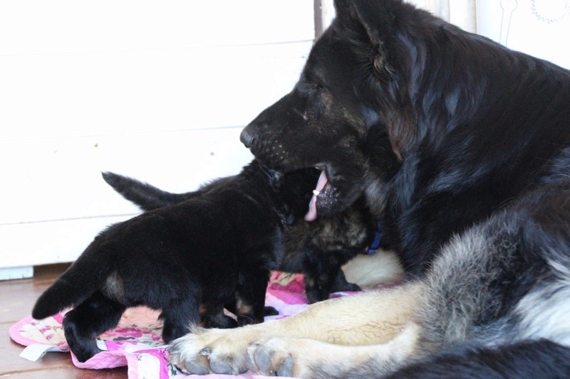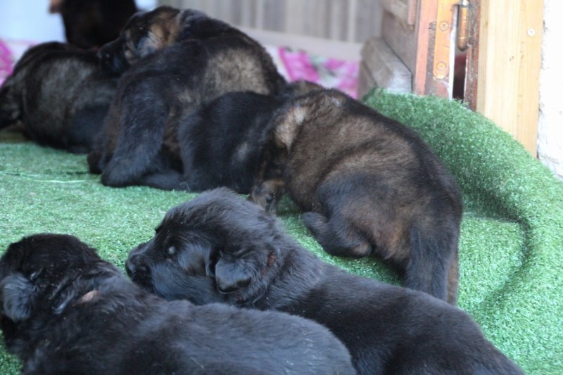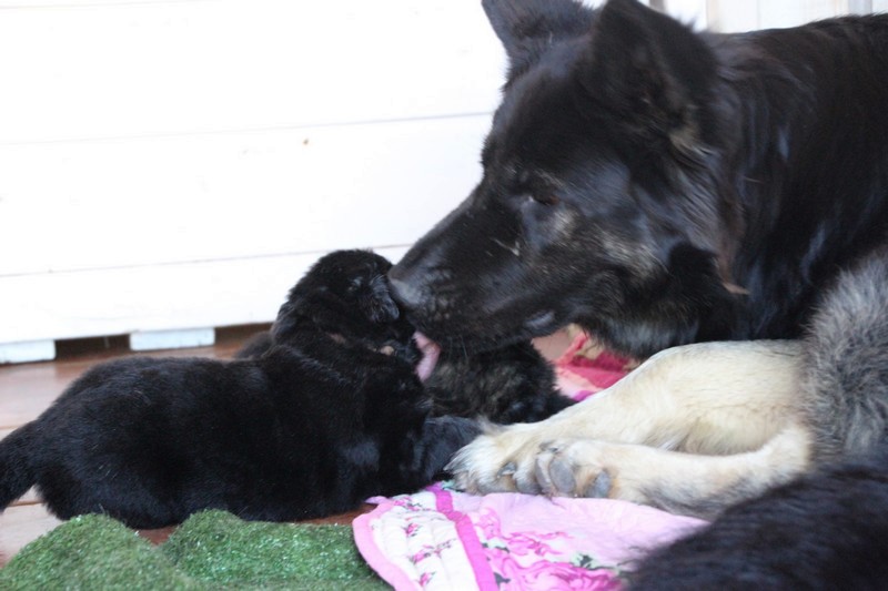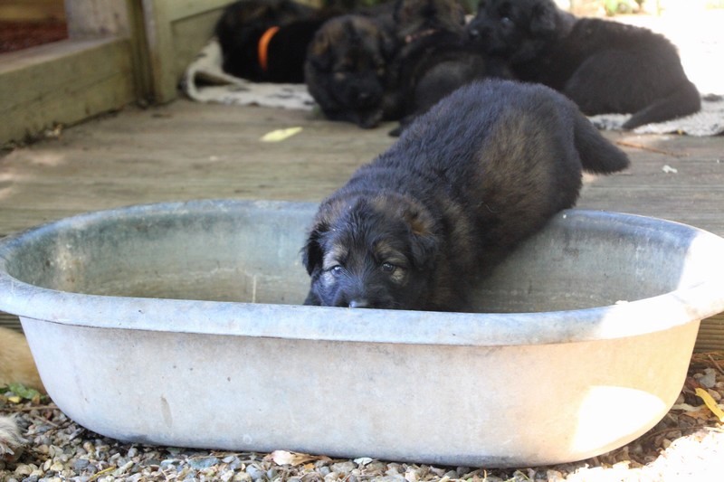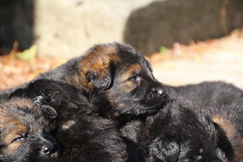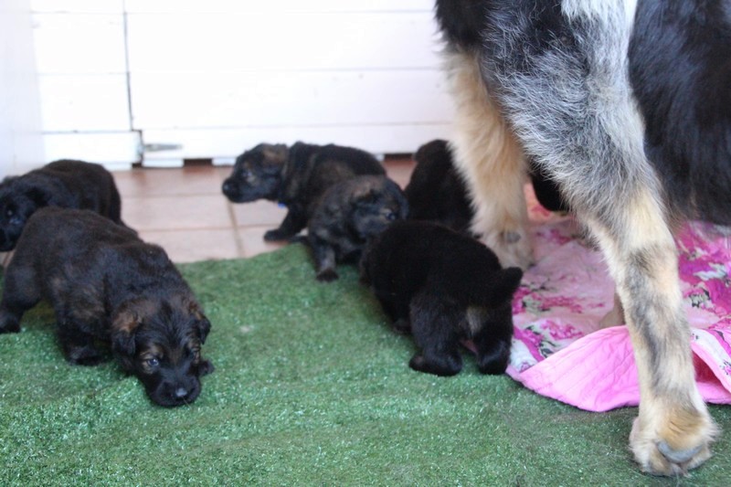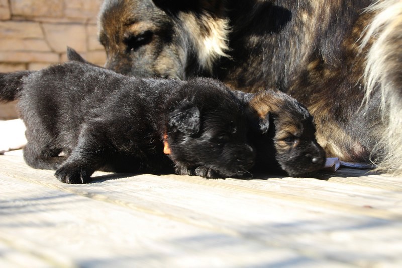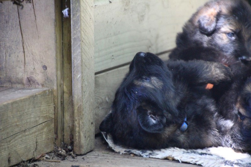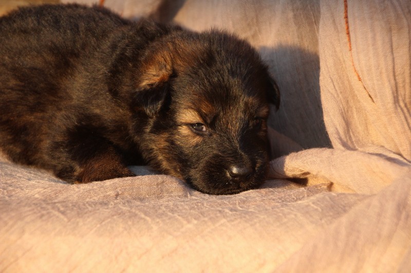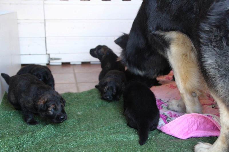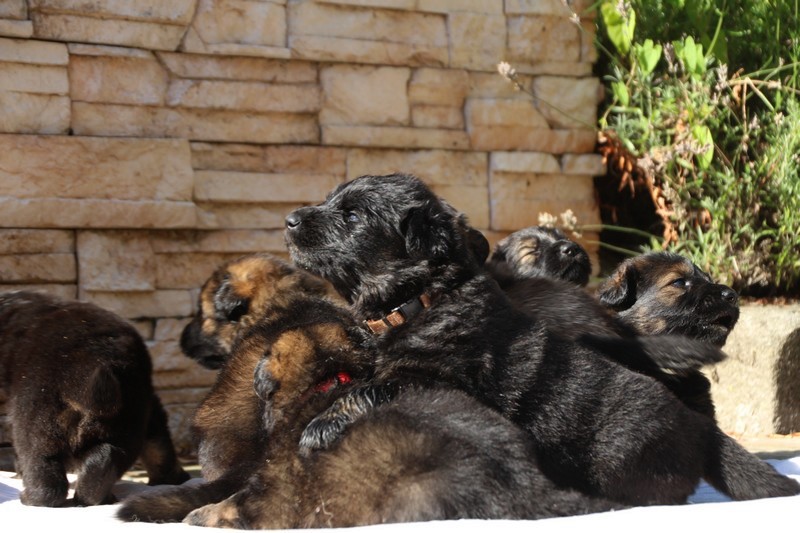 Nous avons découvert le parc à chiots, l’endroit où tous les petits poilus passent leurs nuits, durant les 4 dernières semaines à l’élevage. Une fois, les repères pris en journée, il sera temps pour nous de dormir sans maman.