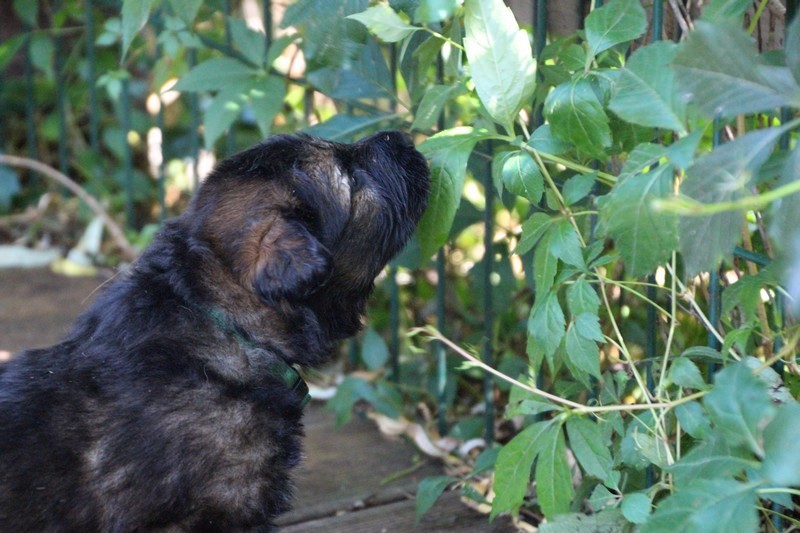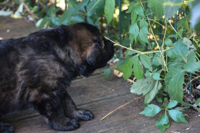 Nos petits nez ont été mis à dures épreuves, c’est qu’il y en a des choses à sentir dehors. Toutes ces odeurs qui viennent à nous, portées par le vent, émoustillant nos truffes en nous faisant tout doucement découvrir le grand monde.
