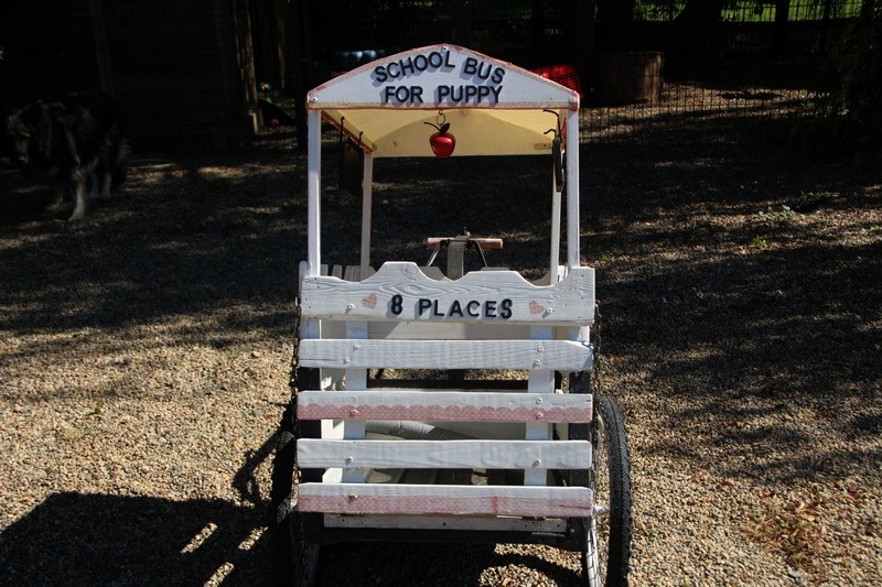 Notre premier aller-retour en puppy-car, a eu lieu également. Ça va être notre moyen de transport des prochains jours, dans l’attente de pouvoir nous déplacer aisément et apprendre à suivre l’humain.