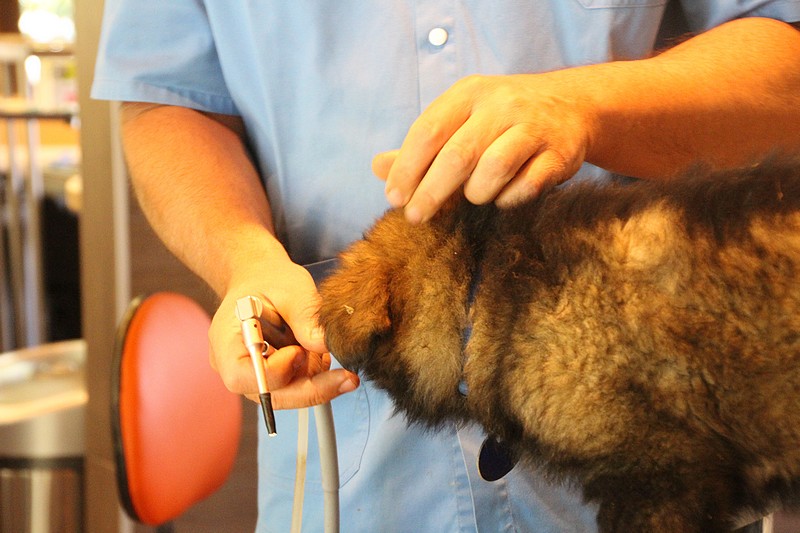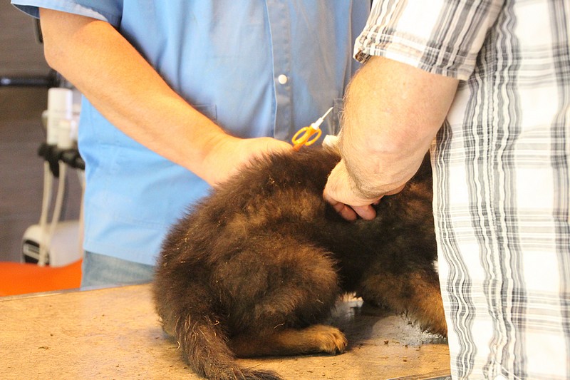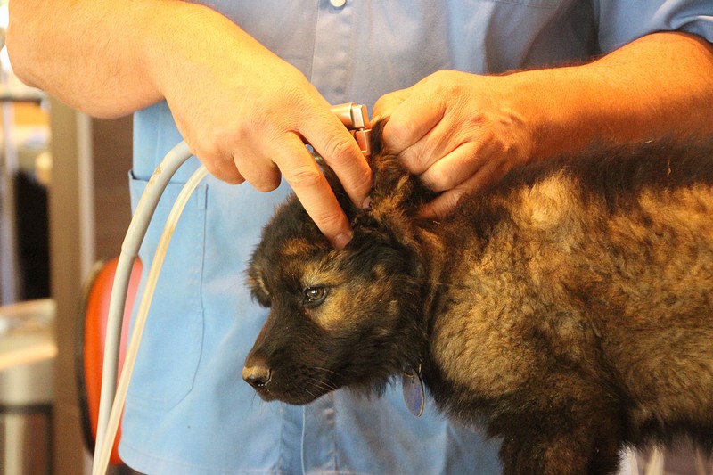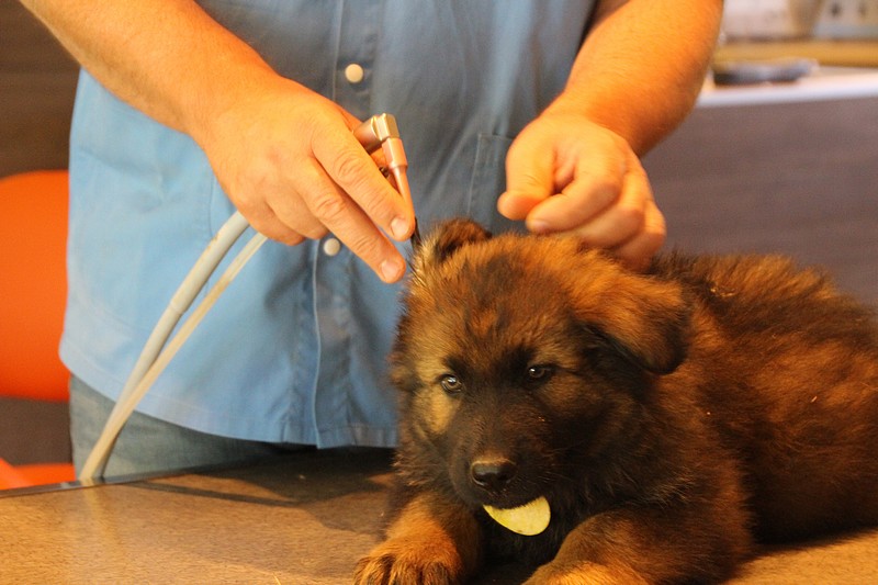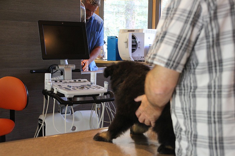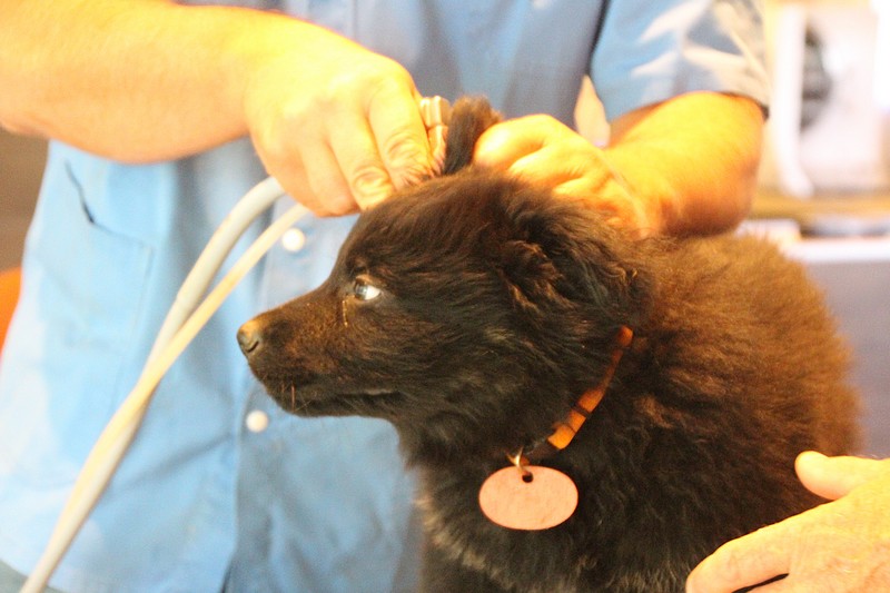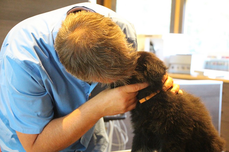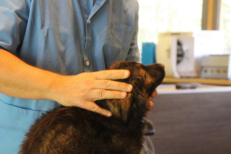 Le super Doc, nous a ausculté sous toutes les coutures, les oreilles, le cœur, les hanches, les dents, les yeux… rien n’a été épargné ! En attendant notre tour, nous avons était mis dans un parc minuscule, une honte de nous mettre dans un endroit si petit ! Nous avons bien fait comprendre que cet endroit ne nous plaisait pas du tout, mais nous avons vite revue notre niveau d’exigence au moment ou un ours est passé devant nous. Là! stupeur… plus personne ne pipait mot.