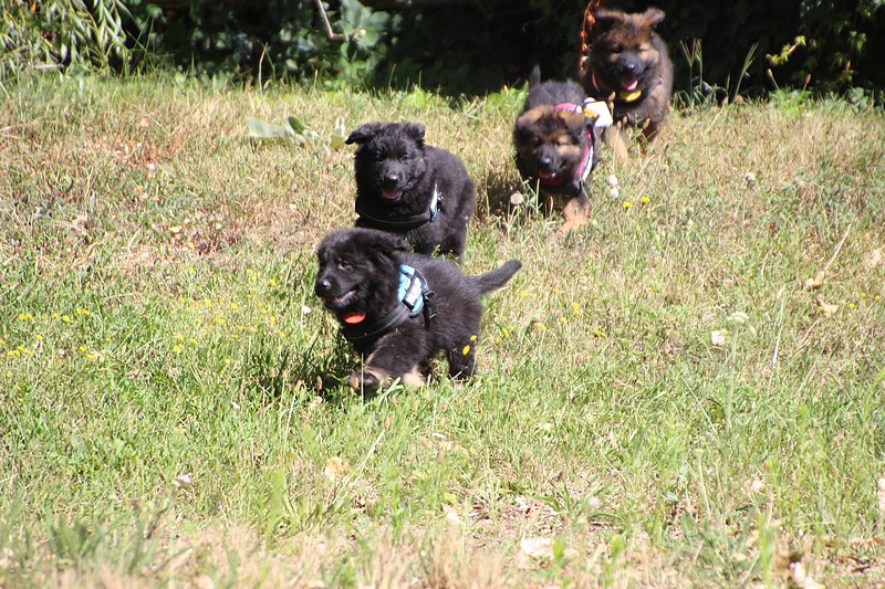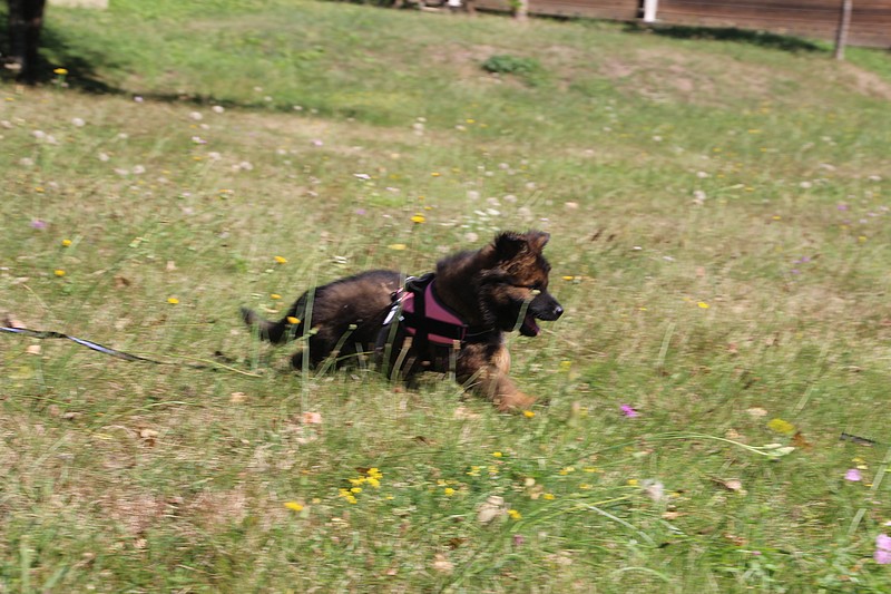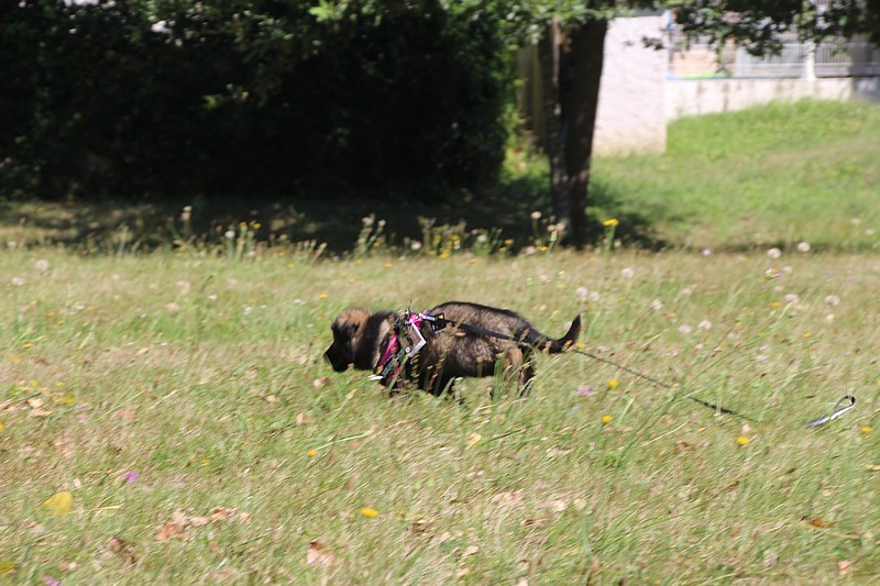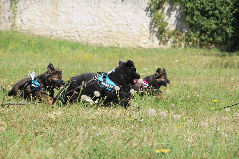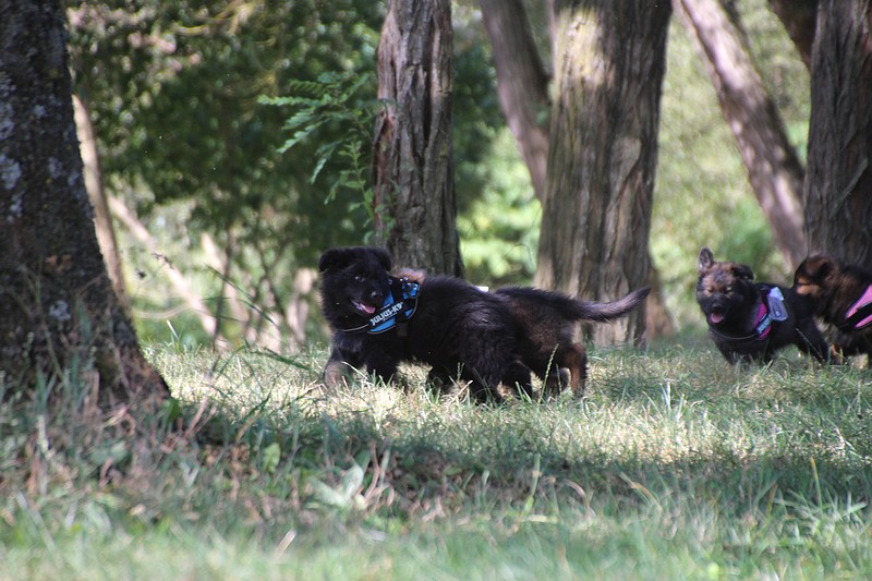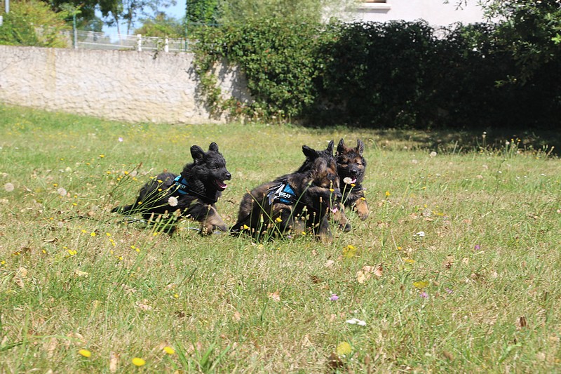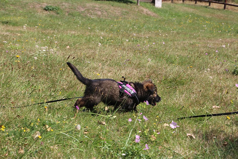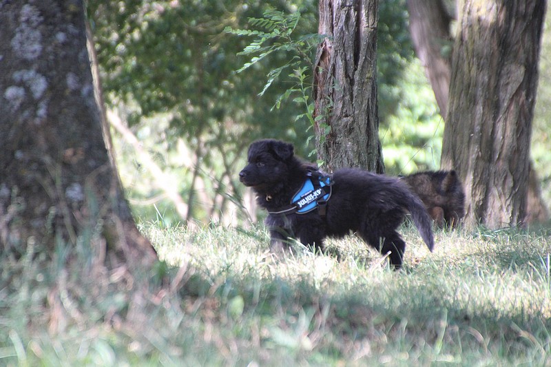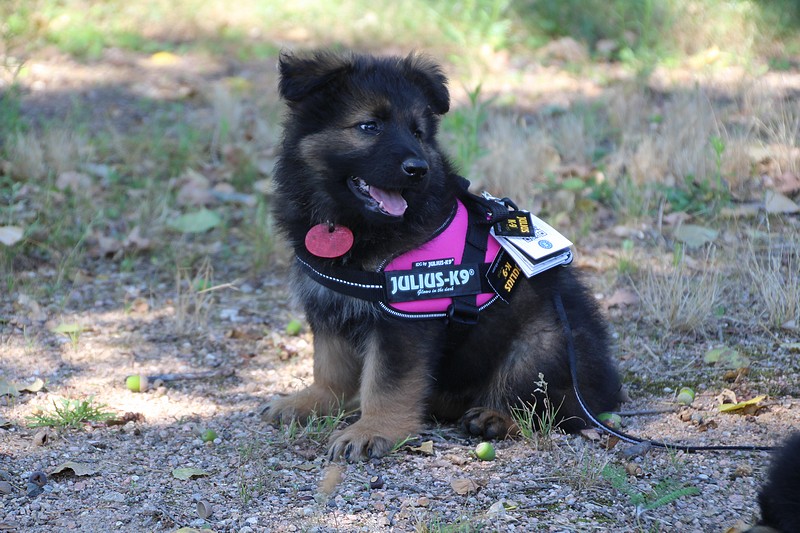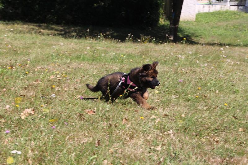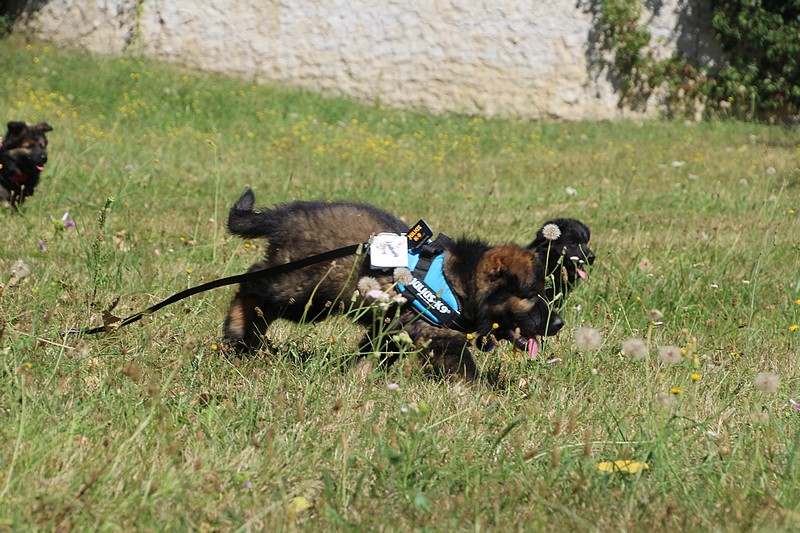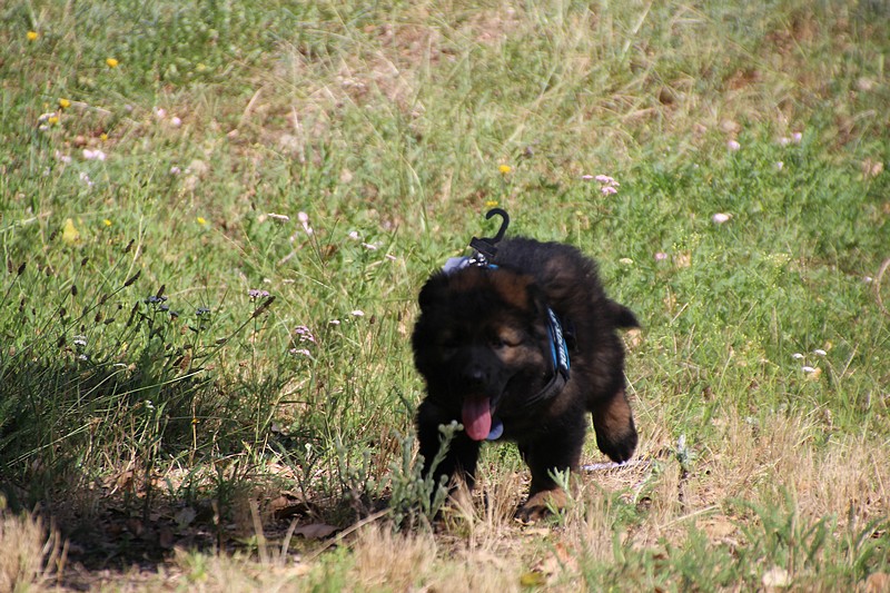 Lui aussi va rester dans la Loire, on devrait le croiser à l’école du chiot. Un petit bout plein de surprises, très proche de l’homme et qui parait réservé au milieu des autres, mais quand on le sort en individuel et lui laisse enfin de la place, il est très demandeur et curieux. Lui aussi à l’image de son frère Okaï, promet de devenir un beau chien bien harmonieux.