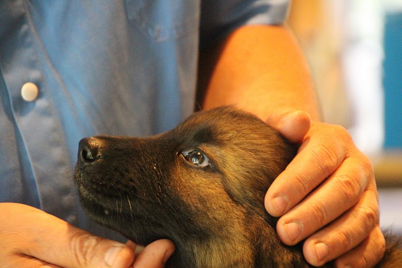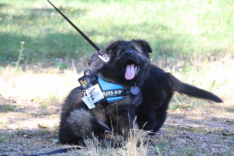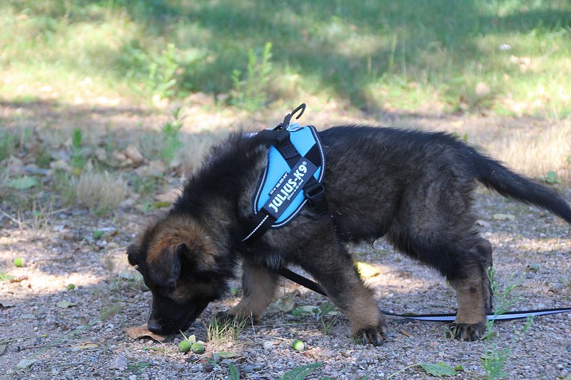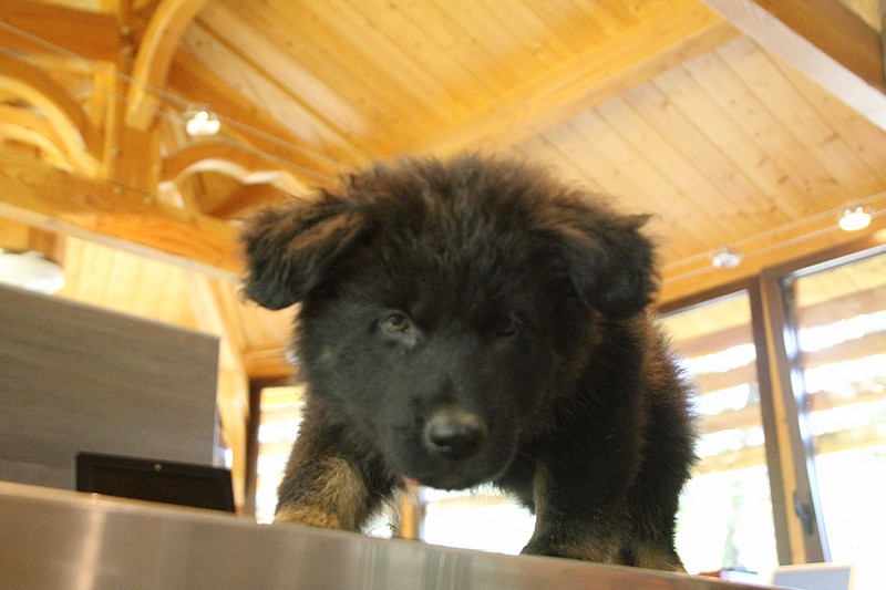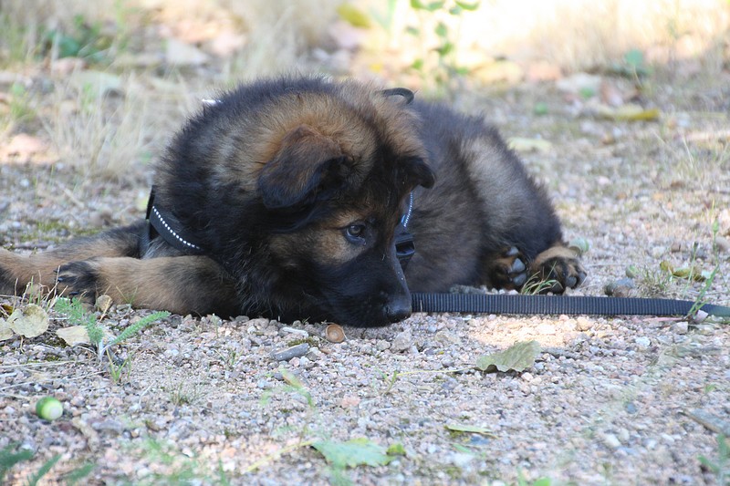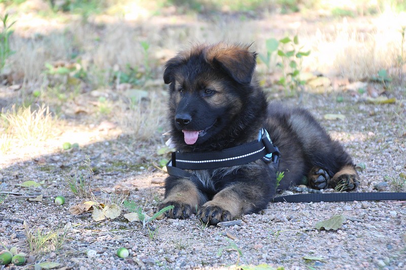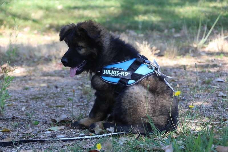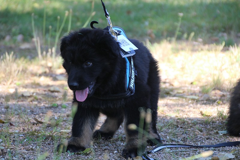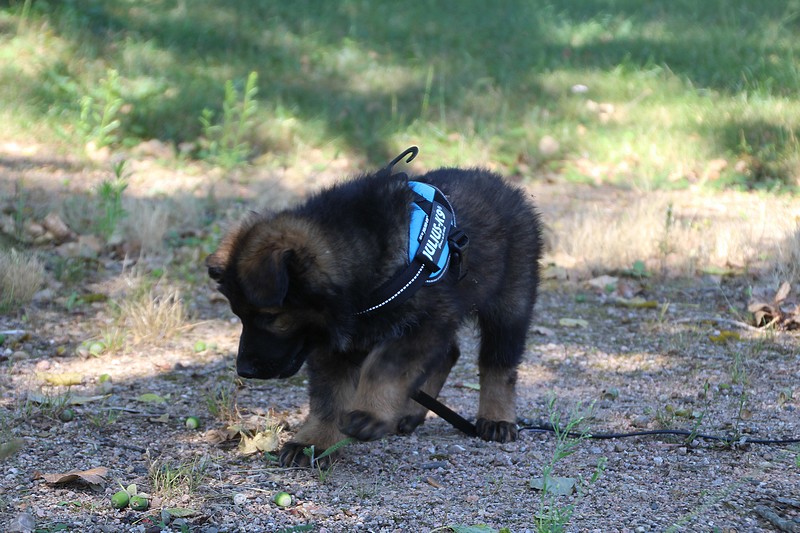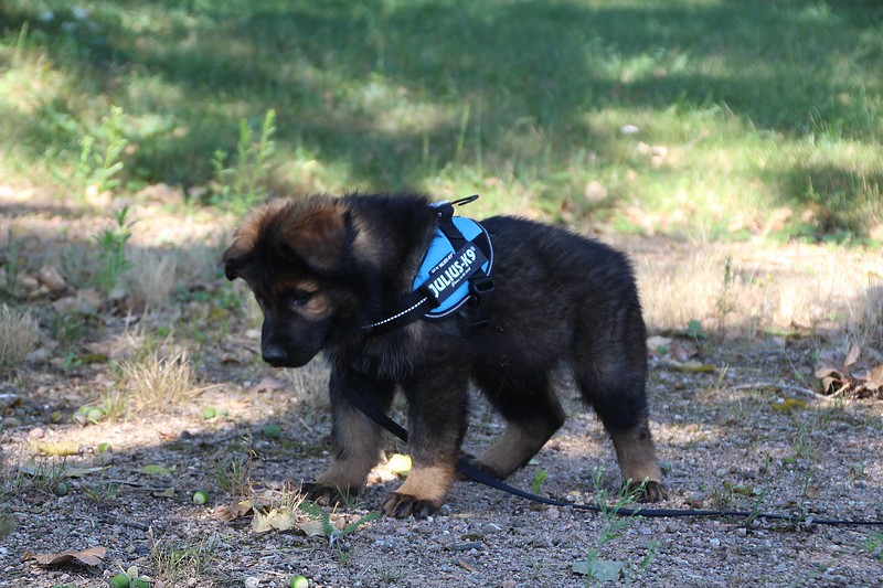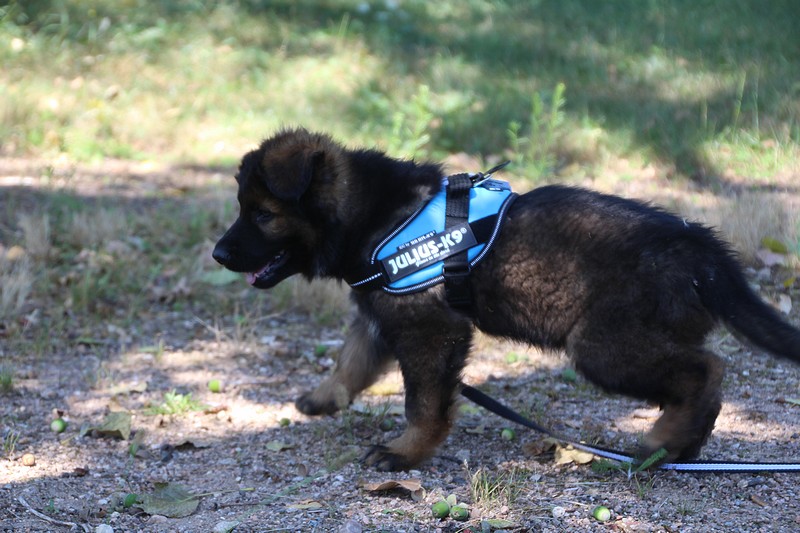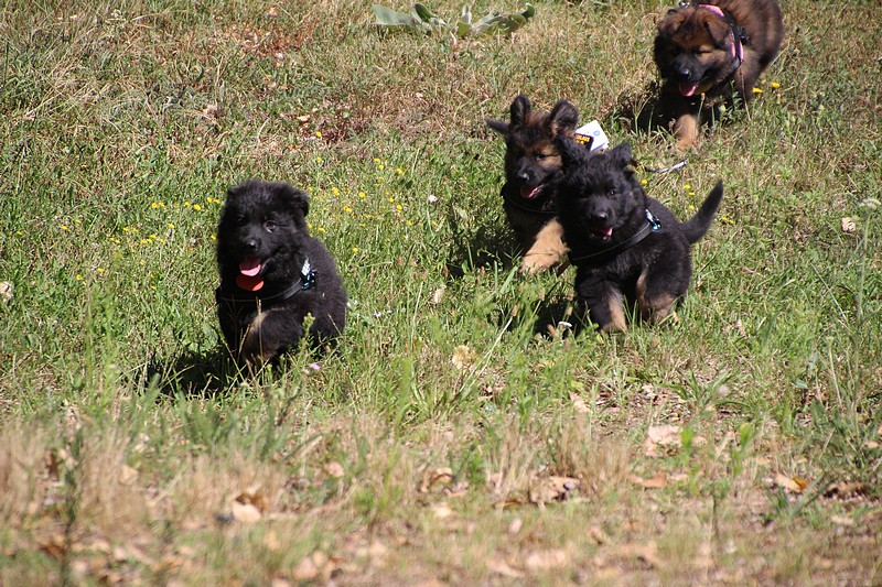 Lui aussi va rester dans la Loire, on devrait le croiser à l’école du chiot. Un petit bout plein de surprises, très proche de l’homme et qui parait réservé au milieu des autres, mais quand on le sort en individuel et lui laisse enfin de la place, il est très demandeur et curieux. Lui aussi à l’image de son frère Okaï, promet de devenir un beau chien bien harmonieux.