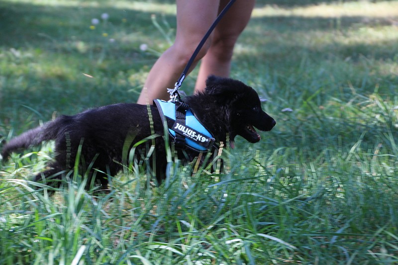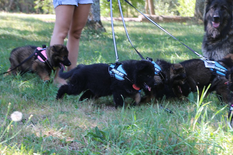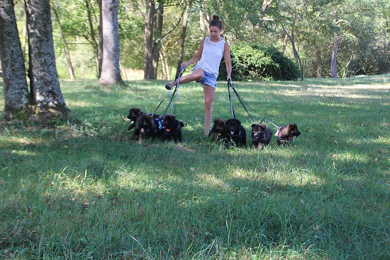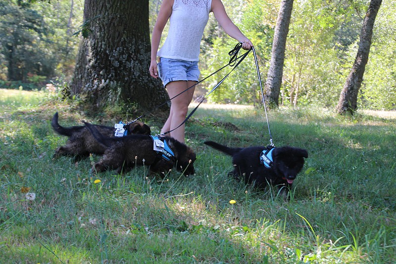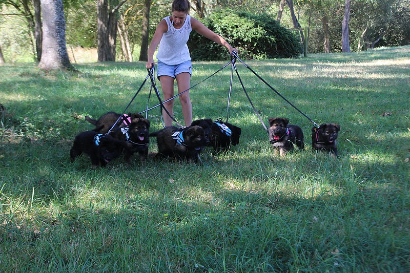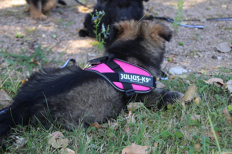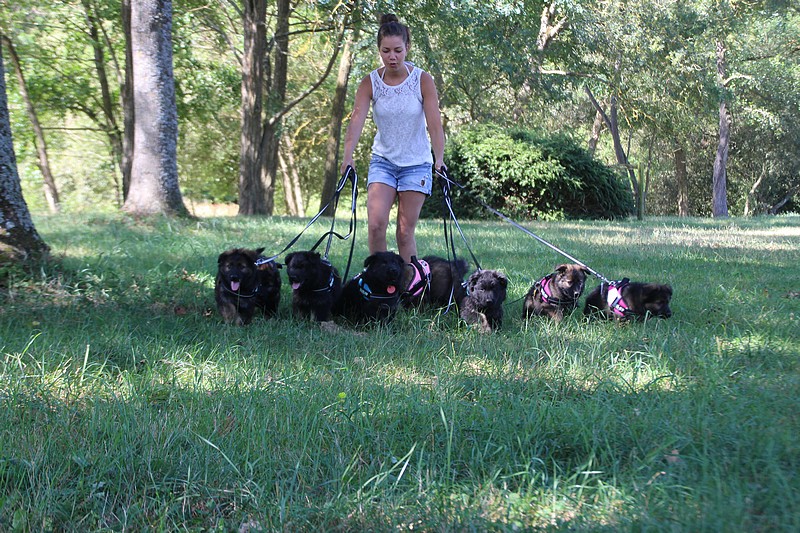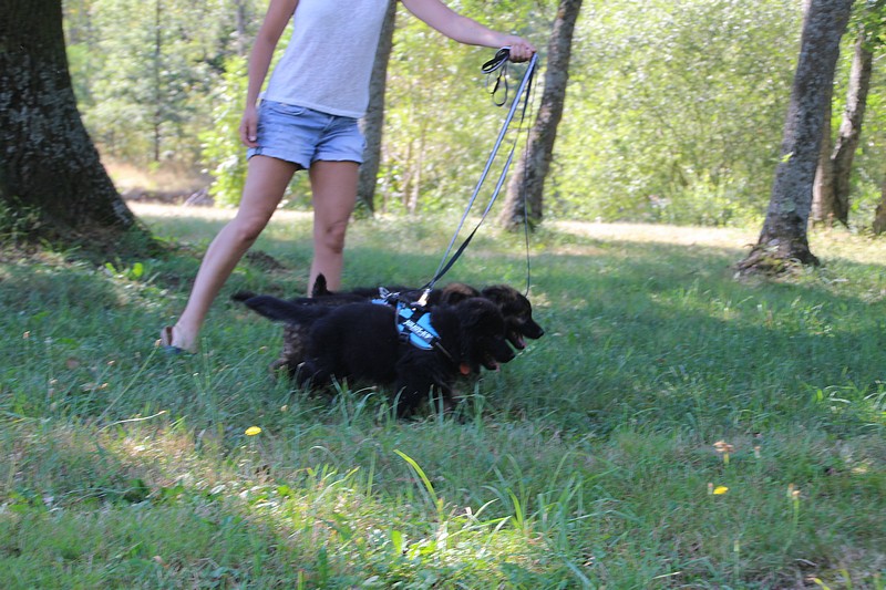 Nous avons reçu nos petits harnais et nos laisses, c’est ce qui va nous permettre de pouvoir nous promener en toute sécurité dans les endroits à risque, car nous n’avons pas besoins d’être attaché pour être lié à l’humain, nous sommes de vrais petites pots de colle et les premiers essais de marche en laisse ont été bien drôles!