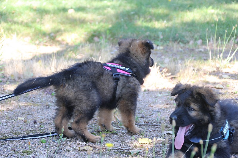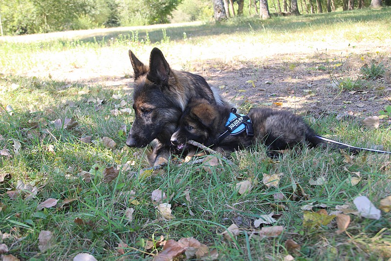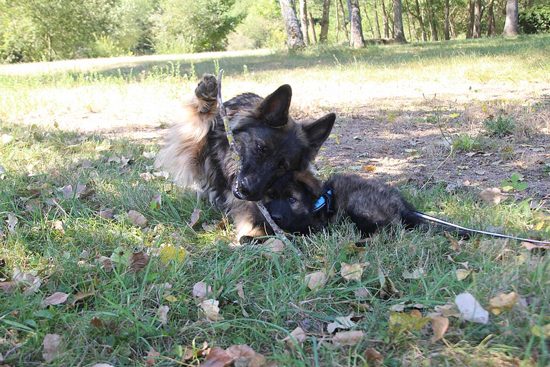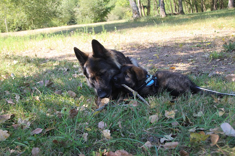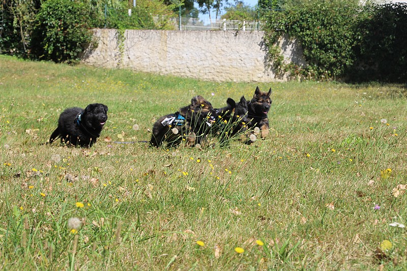 Yellow et Olson vont rester encore un peu avec nous, le temps pour leurs maitres de partir en vacances. Les apprentissages vont donc continuer pour eux, quelques bêtises à leur palmarès en feront des chiots moins parfaits!