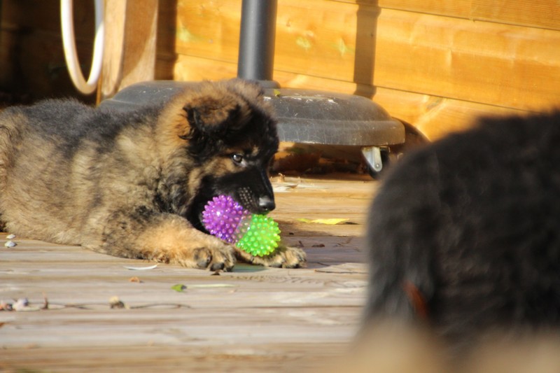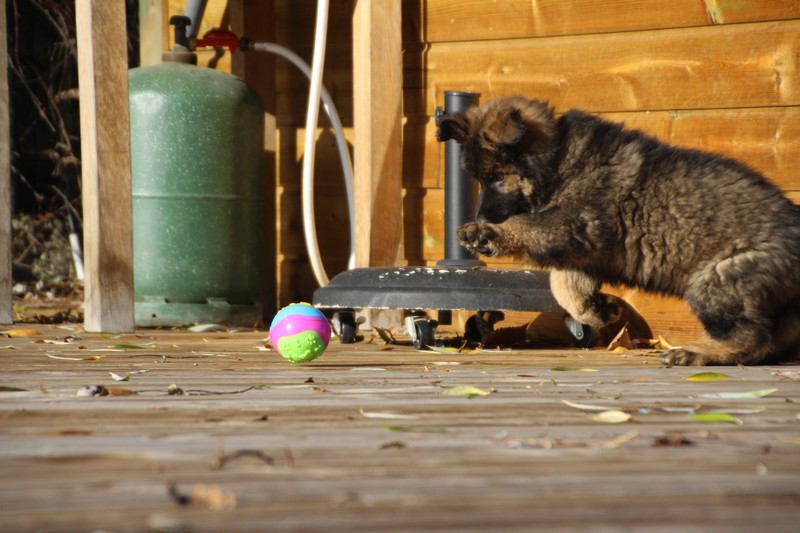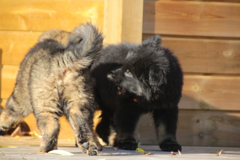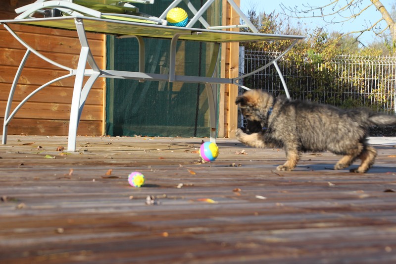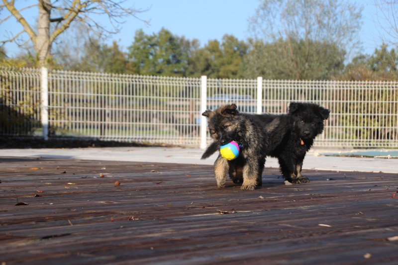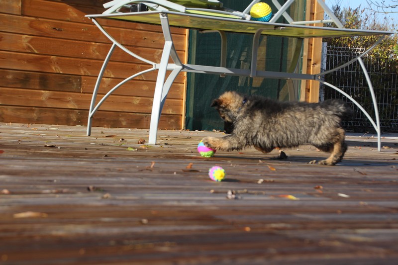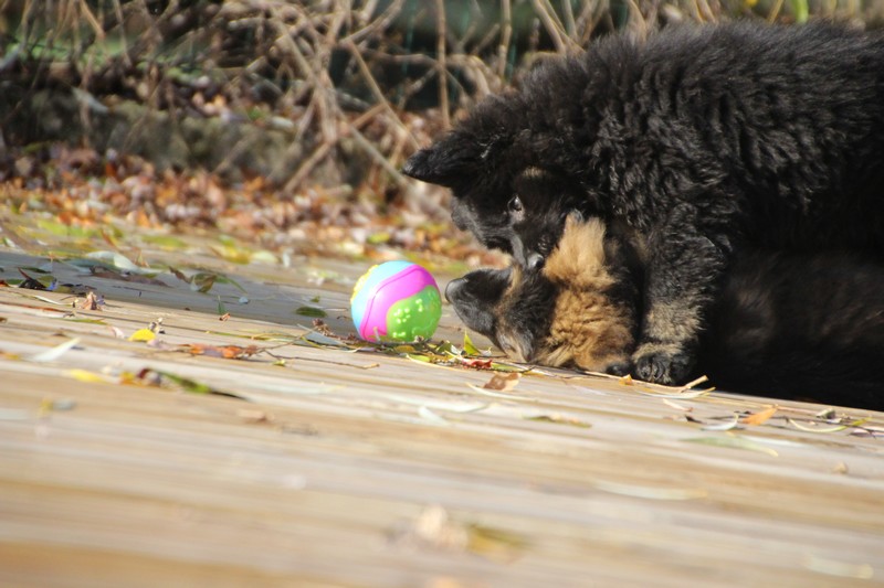 En ce moment, nos journées se passent essentiellement dans les jambes de l’humain et celles des adultes de la meute, nous faisons tout comme les grands! Promenades, jeux et détente dans la maison. Il parait que c’est important pour notre futur, de passer du temps à l’intérieur. On apprend surtout à se poser dans un coin et arrêter de coller aux pieds de nos éleveurs.