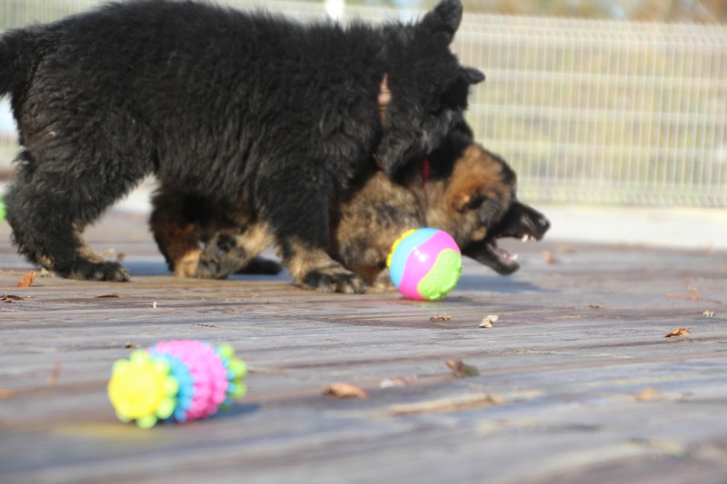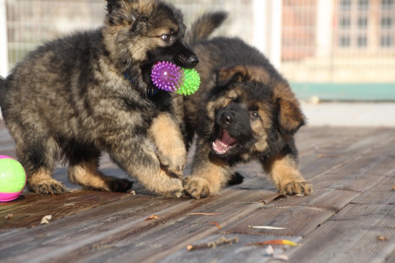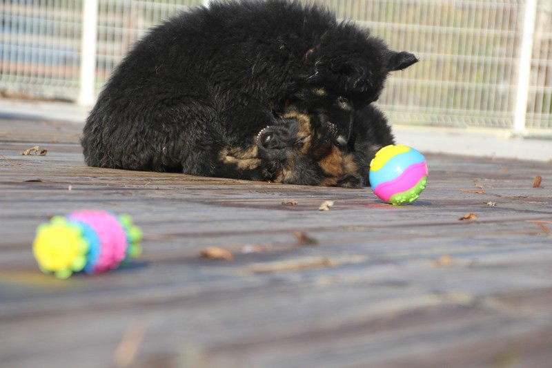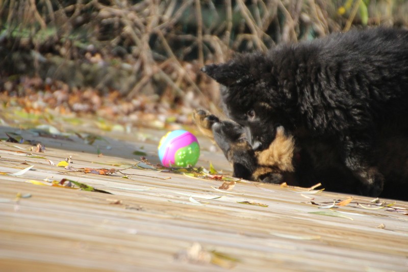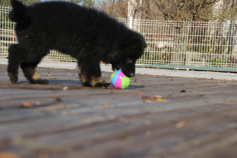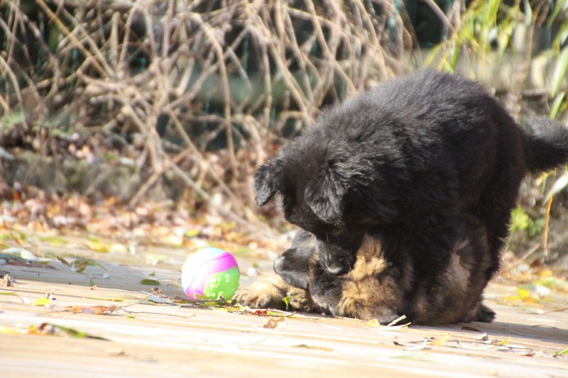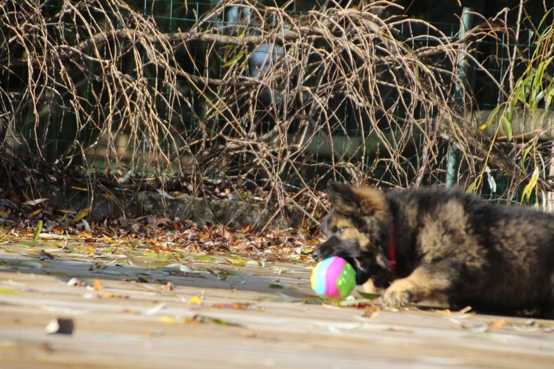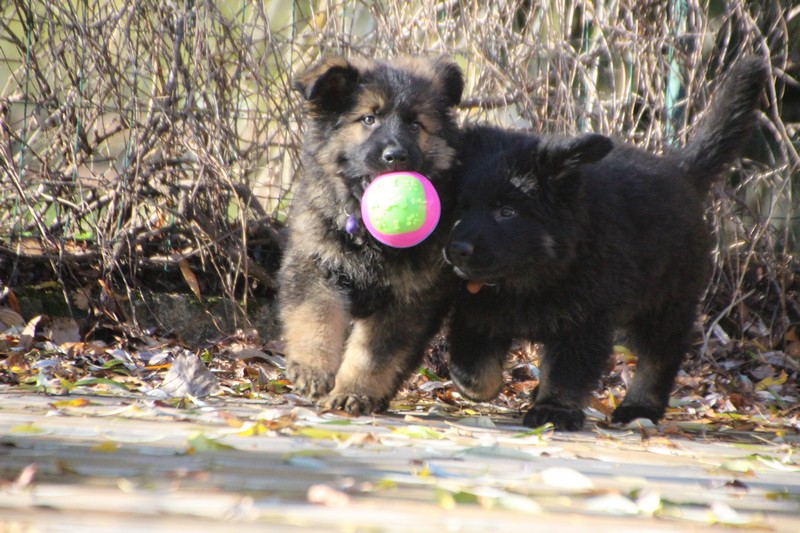 En ce moment, nos journées se passent essentiellement dans les jambes de l’humain et celles des adultes de la meute, nous faisons tout comme les grands! Promenades, jeux et détente dans la maison. Il parait que c’est important pour notre futur, de passer du temps à l’intérieur. On apprend surtout à se poser dans un coin et arrêter de coller aux pieds de nos éleveurs.