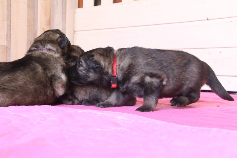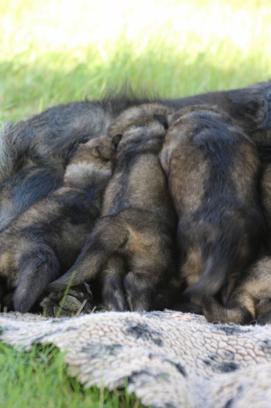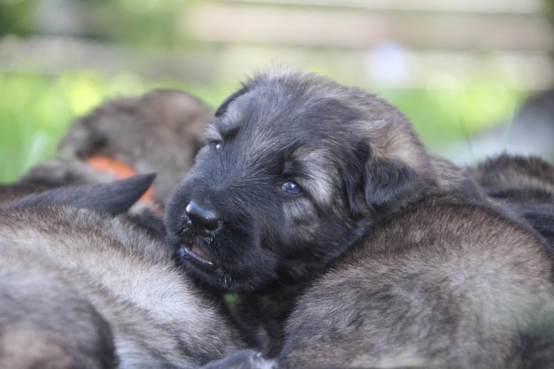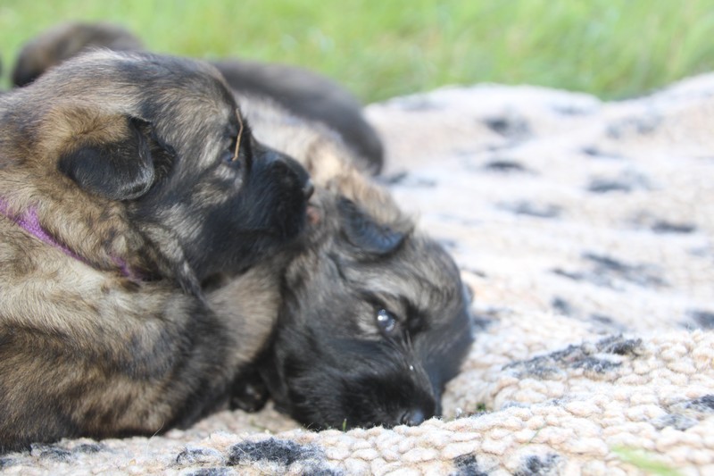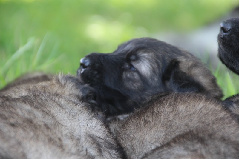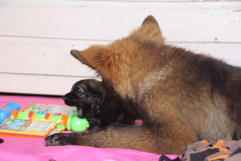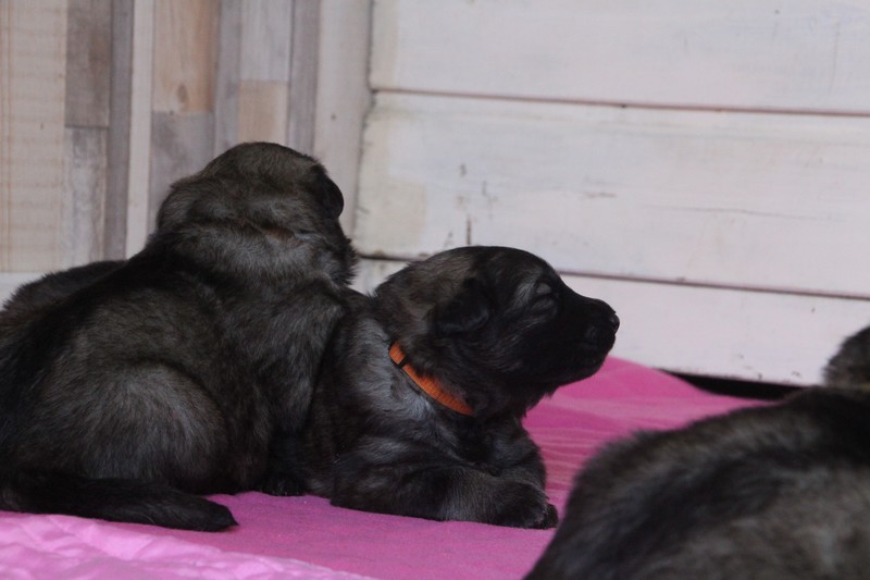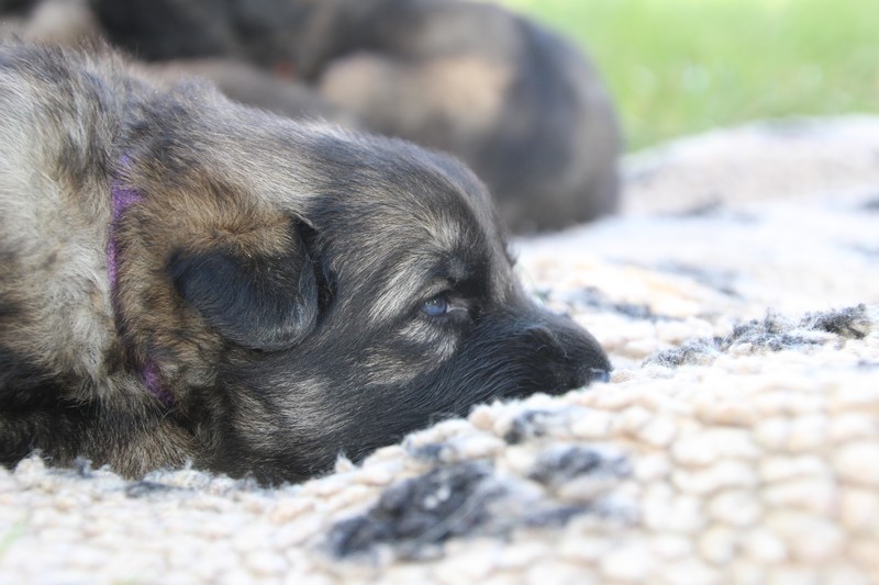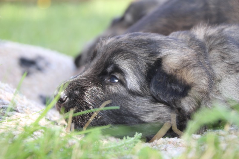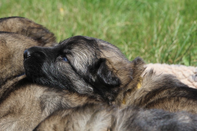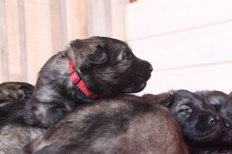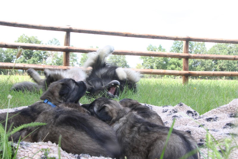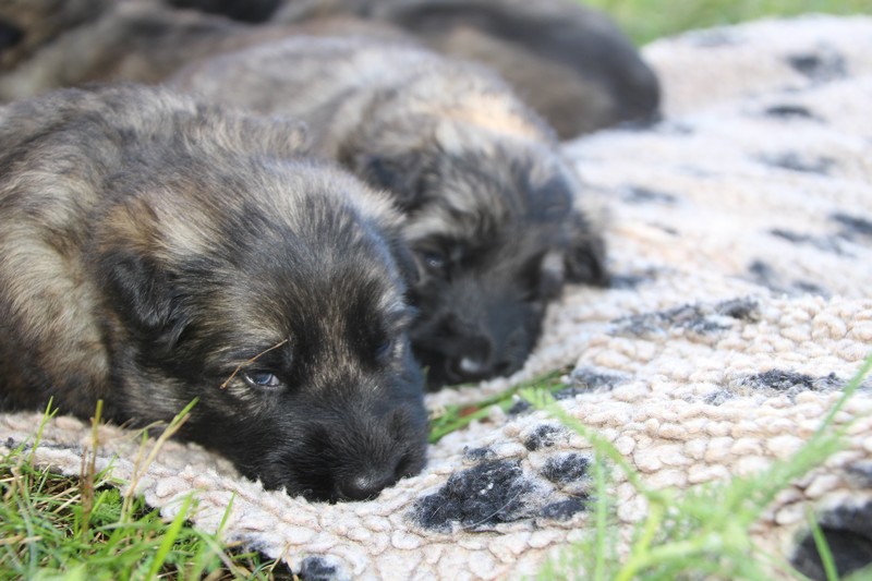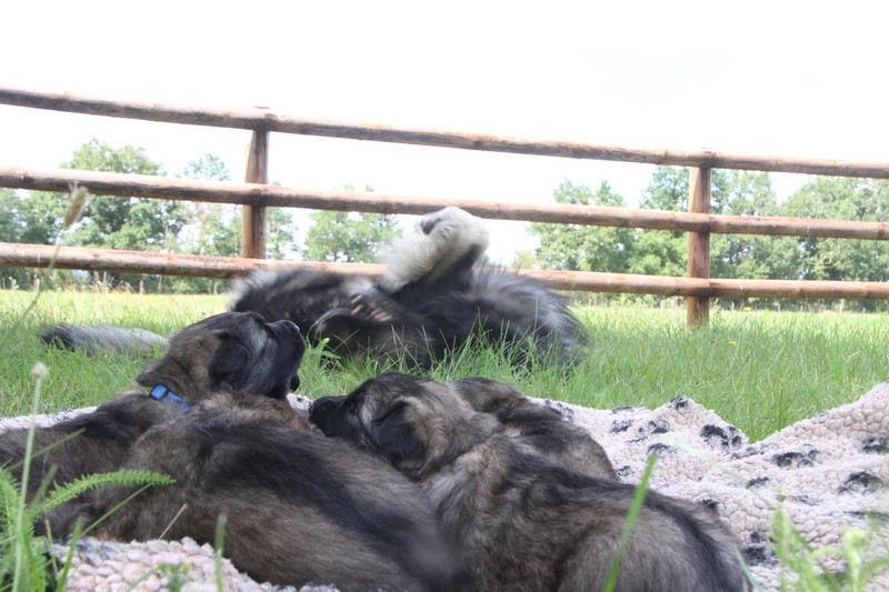 Cela fait 21 jours que nous sommes sortis du ventre de maman et tous nos sens commencent à être en éveils, pour la vue ce n’est pas encore tout à fait cela, mais nous compensons largement avec notre nez. Nous commençons à être déplacés d’un endroit à un autre afin de nous habituer peu à peu à divers environnements, maman est toujours avec nous pour les premières découvertes, c’est bien plus rassurant pour nous. Quelques copains de la meute sont aussi venus nous voir, mais ce n’est pas très drôle, nous avons eu beau chercher, aucun d’entre eux n’ont de lait…
