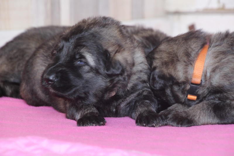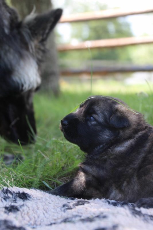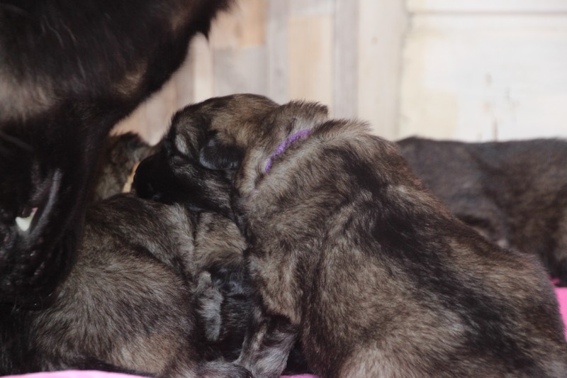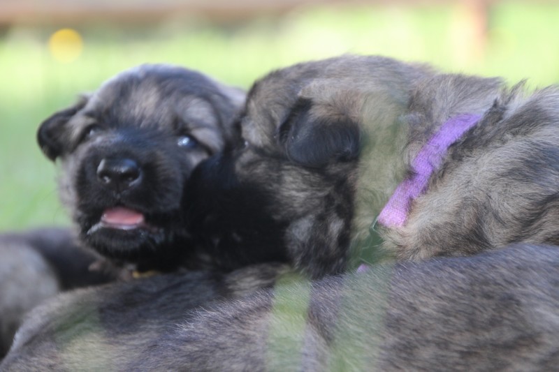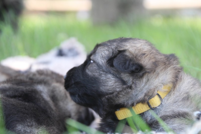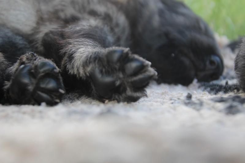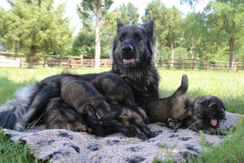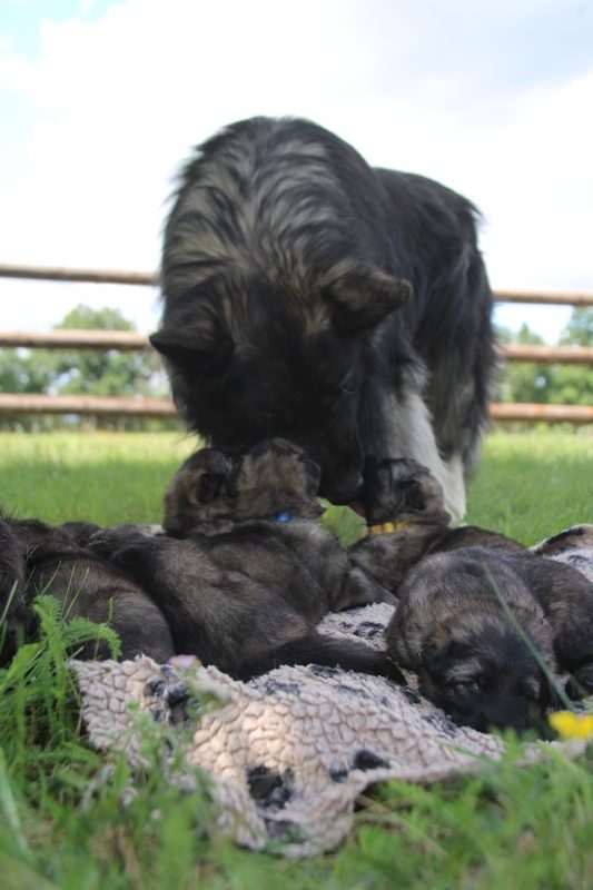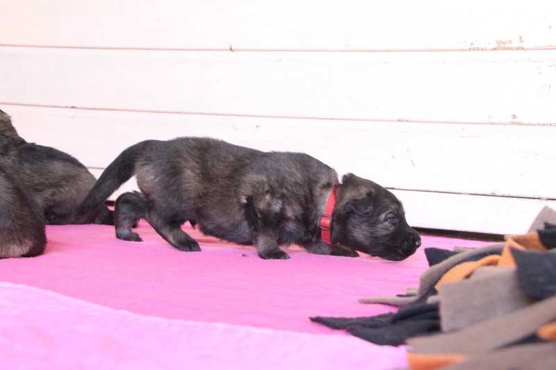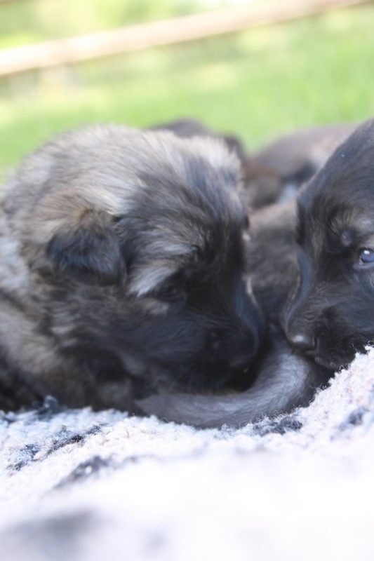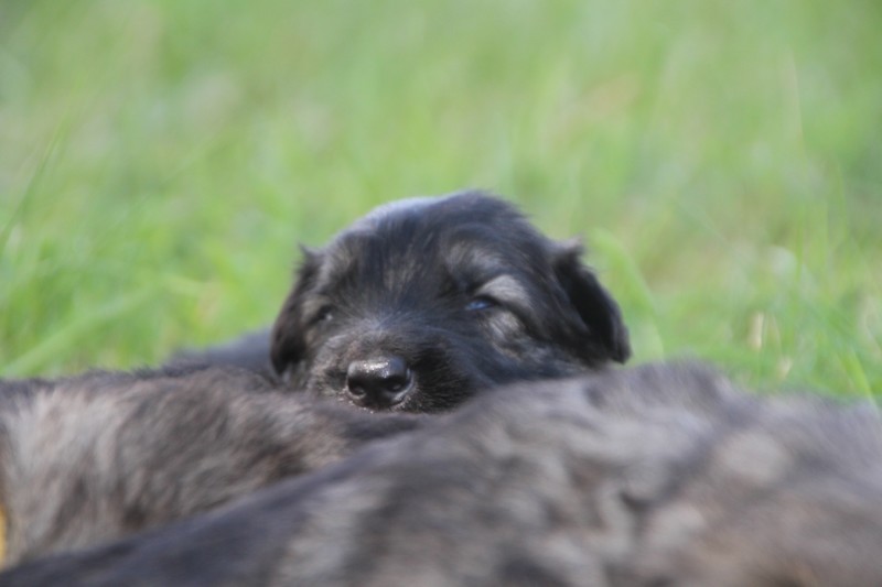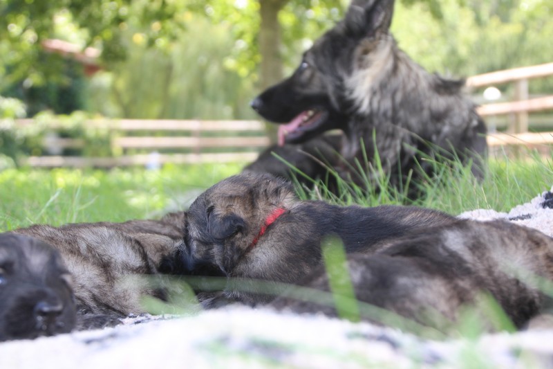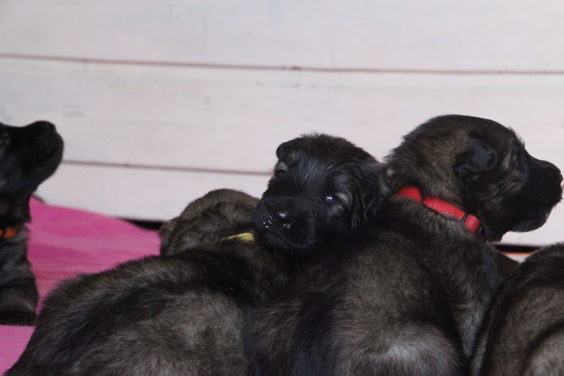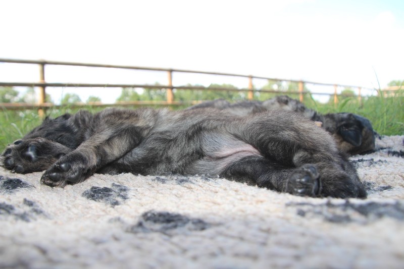 Cela fait 21 jours que nous sommes sortis du ventre de maman et tous nos sens commencent à être en éveils, pour la vue ce n’est pas encore tout à fait cela, mais nous compensons largement avec notre nez. Nous commençons à être déplacés d’un endroit à un autre afin de nous habituer peu à peu à divers environnements, maman est toujours avec nous pour les premières découvertes, c’est bien plus rassurant pour nous. Quelques copains de la meute sont aussi venus nous voir, mais ce n’est pas très drôle, nous avons eu beau chercher, aucun d’entre eux n’ont de lait…