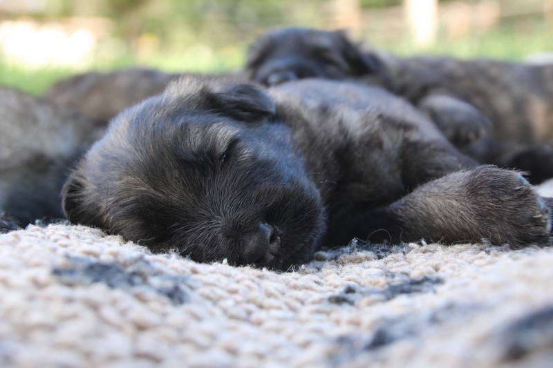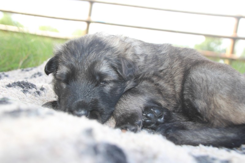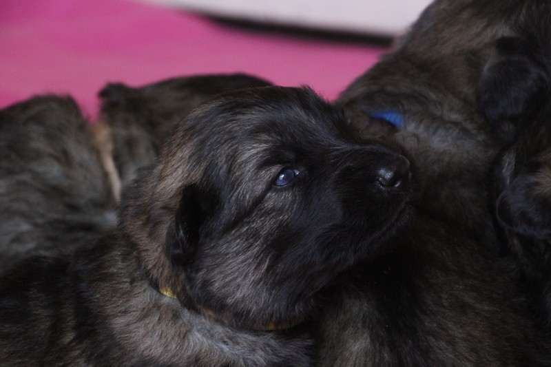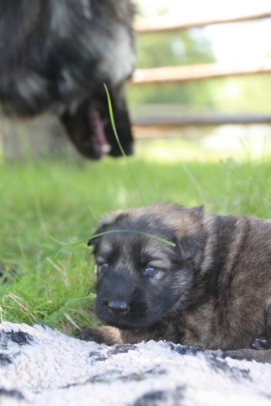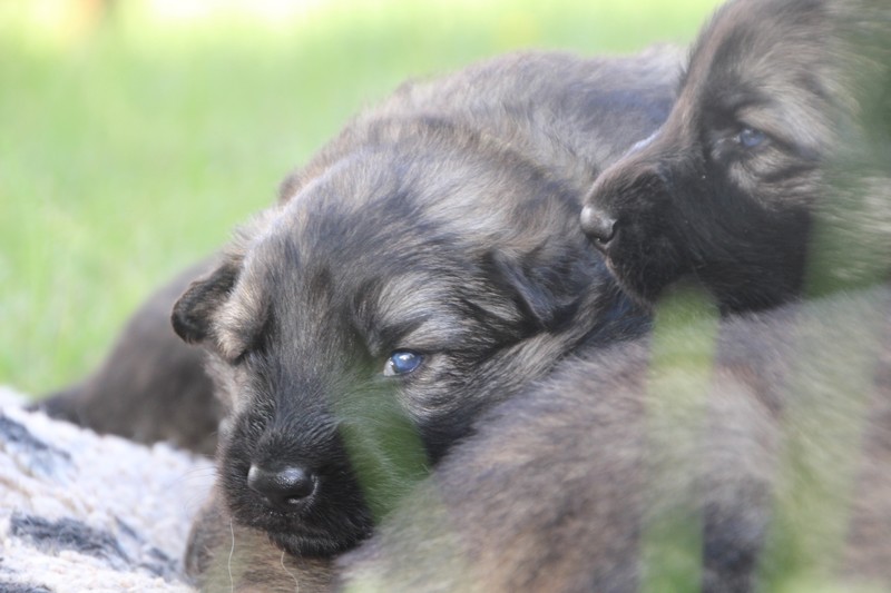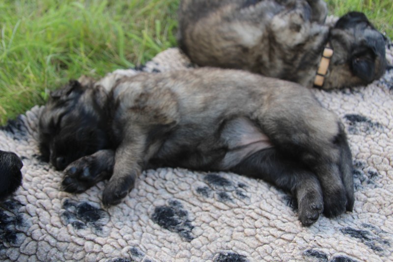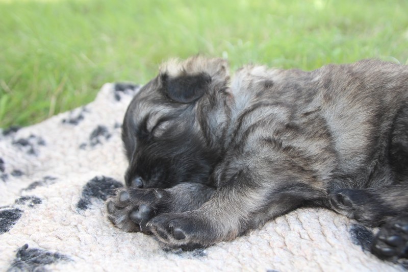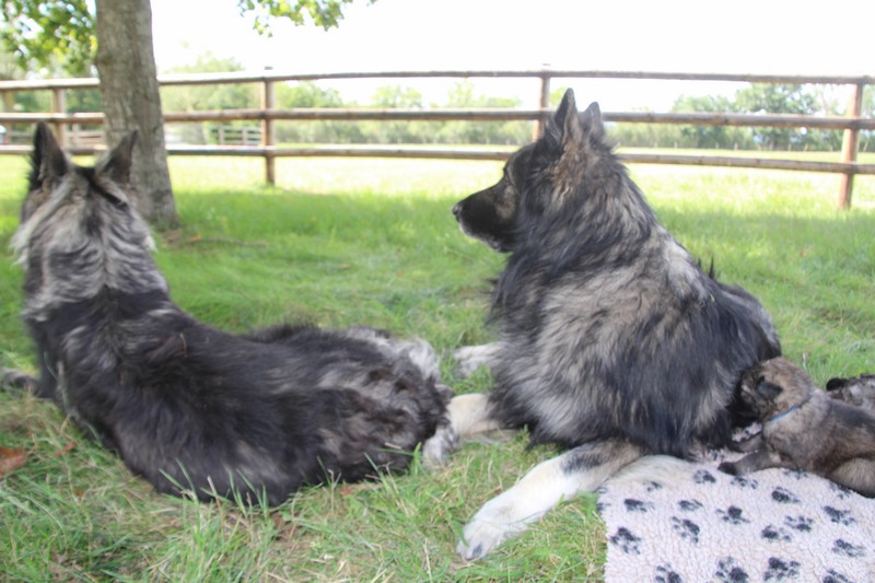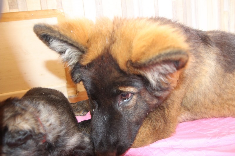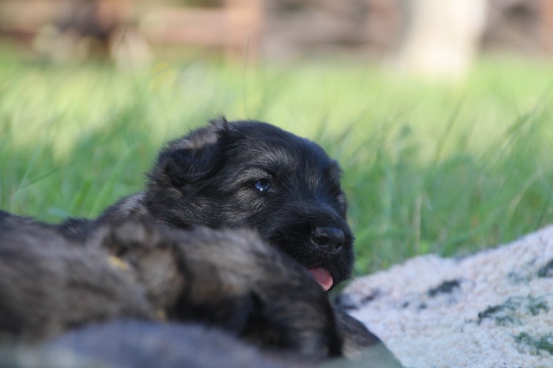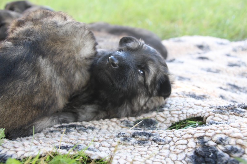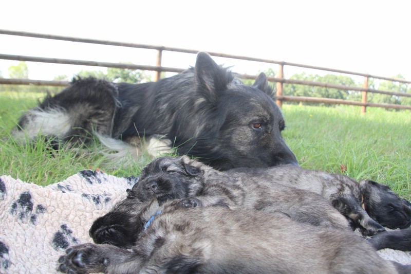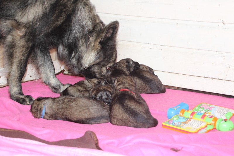 Cela fait 21 jours que nous sommes sortis du ventre de maman et tous nos sens commencent à être en éveils, pour la vue ce n’est pas encore tout à fait cela, mais nous compensons largement avec notre nez. Nous commençons à être déplacés d’un endroit à un autre afin de nous habituer peu à peu à divers environnements, maman est toujours avec nous pour les premières découvertes, c’est bien plus rassurant pour nous. Quelques copains de la meute sont aussi venus nous voir, mais ce n’est pas très drôle, nous avons eu beau chercher, aucun d’entre eux n’ont de lait…