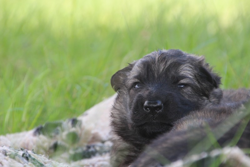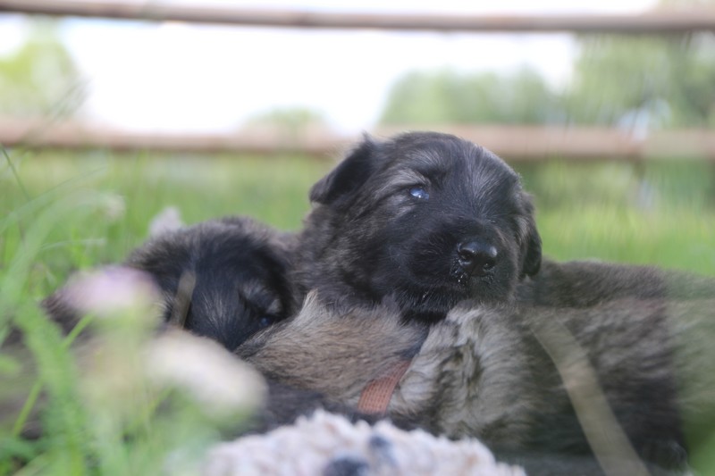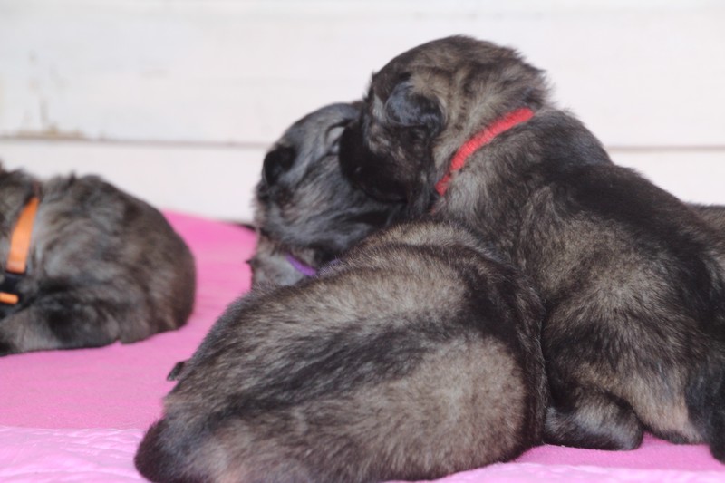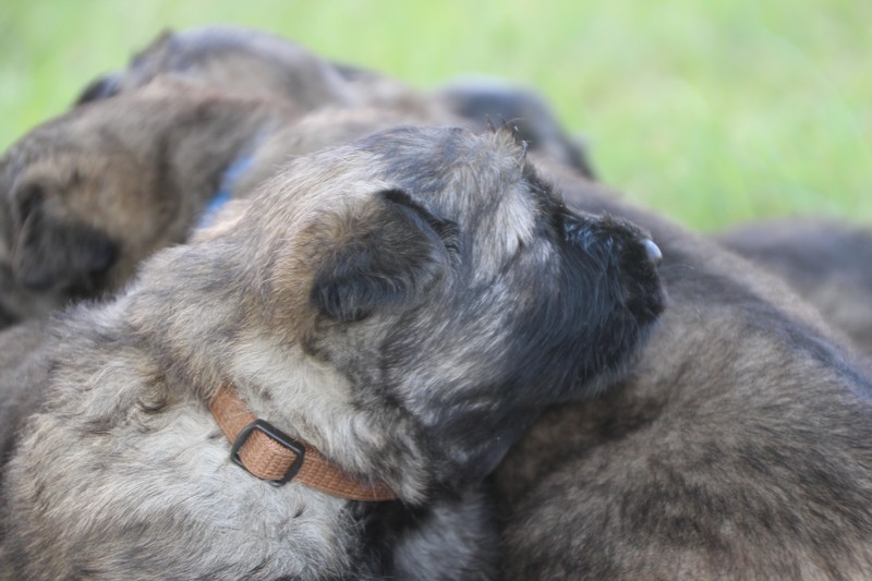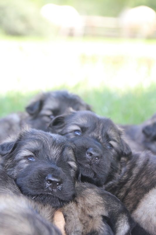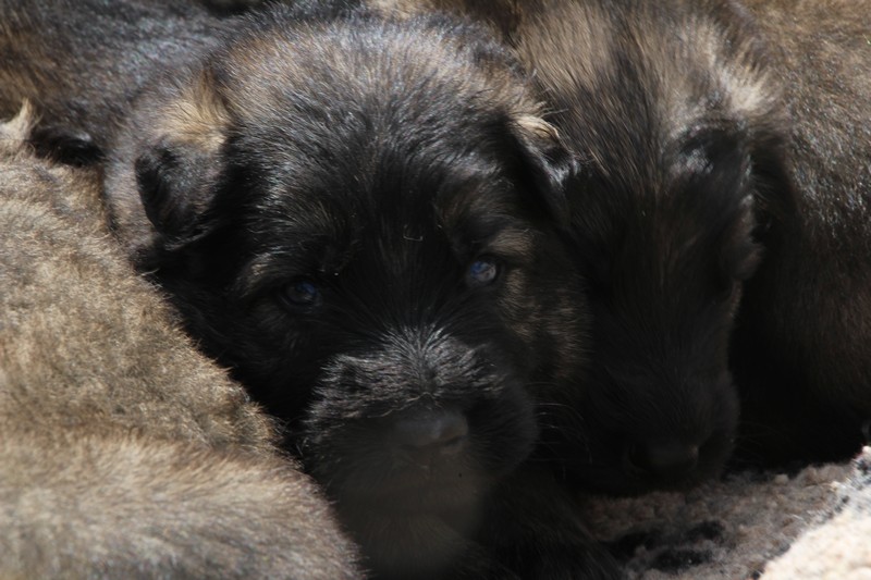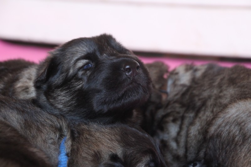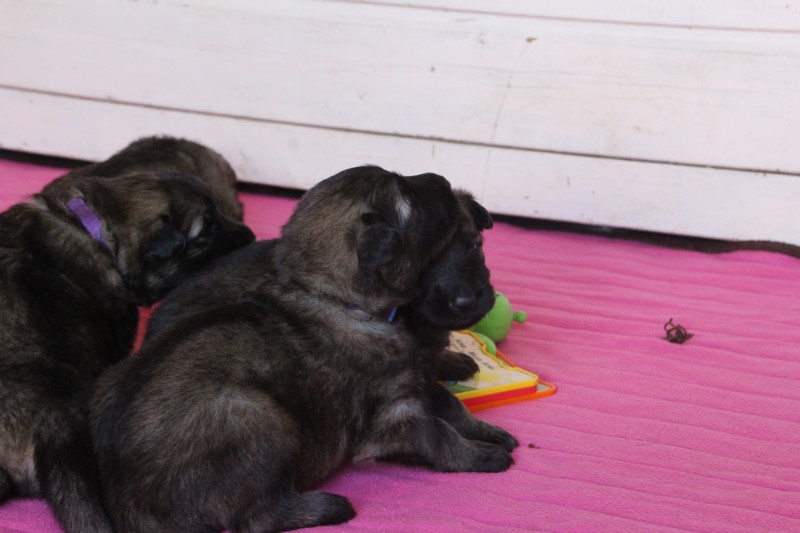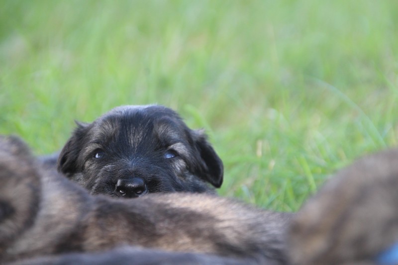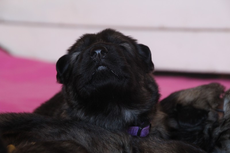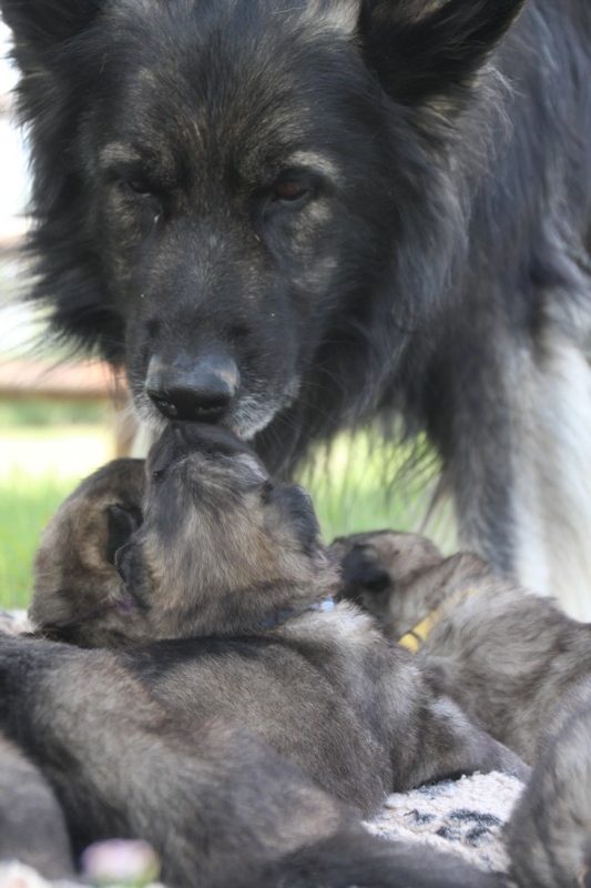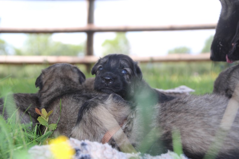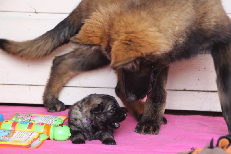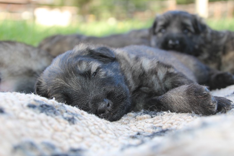 Cela fait 21 jours que nous sommes sortis du ventre de maman et tous nos sens commencent à être en éveils, pour la vue ce n’est pas encore tout à fait cela, mais nous compensons largement avec notre nez. Nous commençons à être déplacés d’un endroit à un autre afin de nous habituer peu à peu à divers environnements, maman est toujours avec nous pour les premières découvertes, c’est bien plus rassurant pour nous. Quelques copains de la meute sont aussi venus nous voir, mais ce n’est pas très drôle, nous avons eu beau chercher, aucun d’entre eux n’ont de lait…