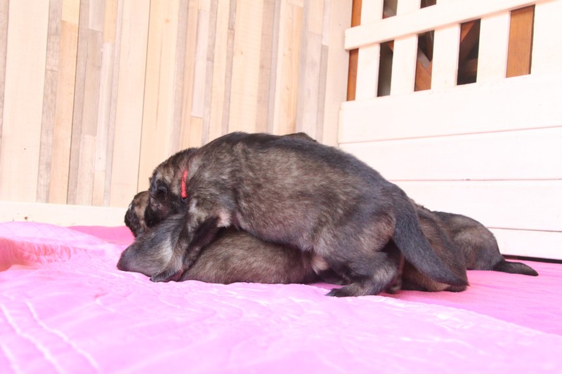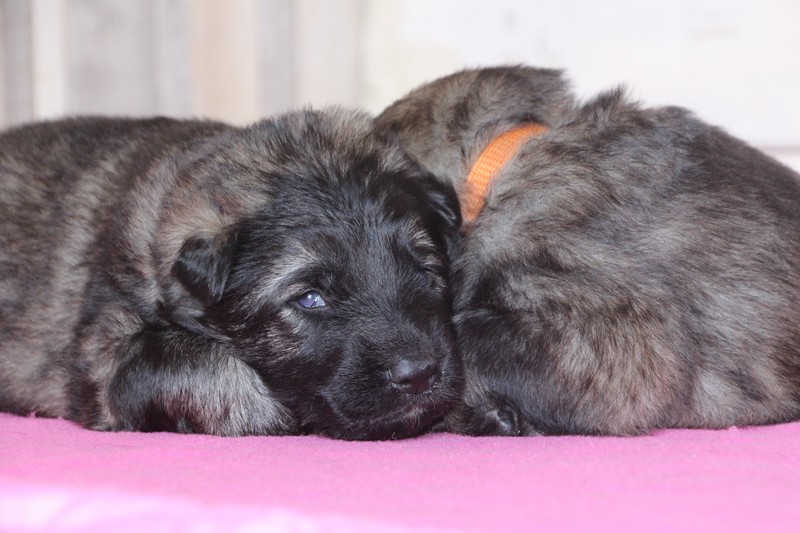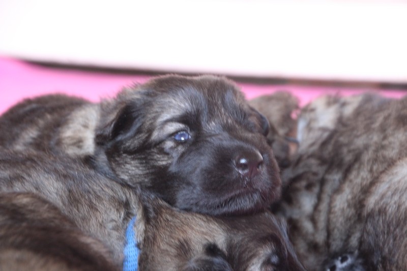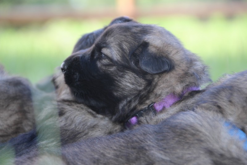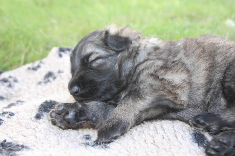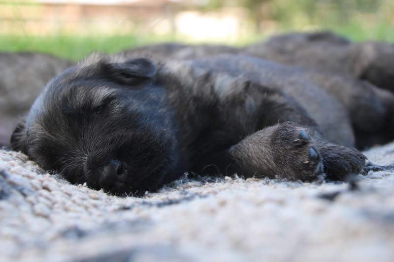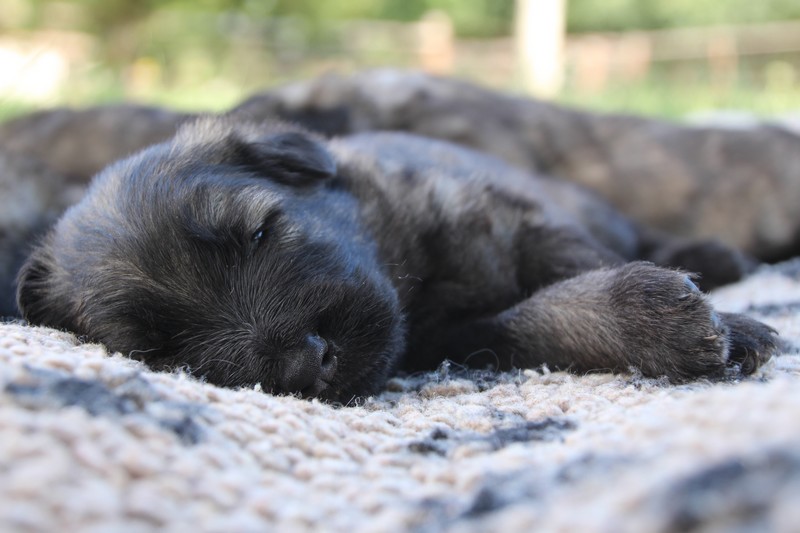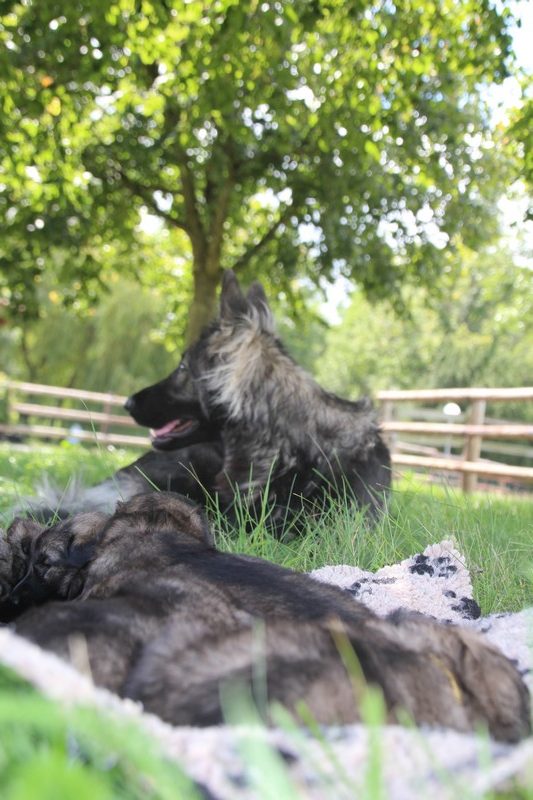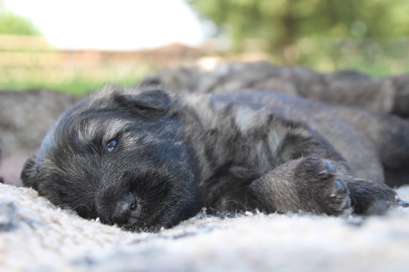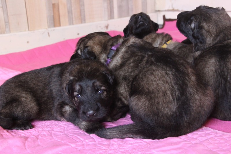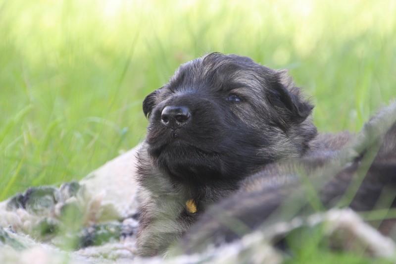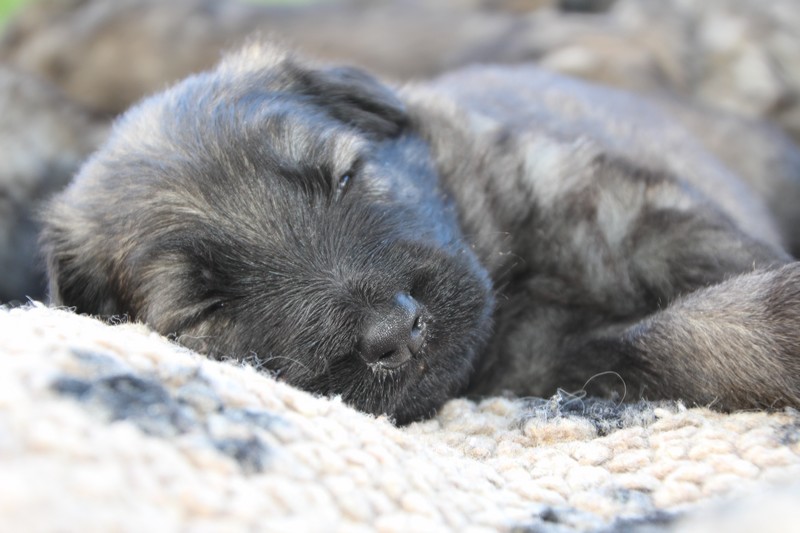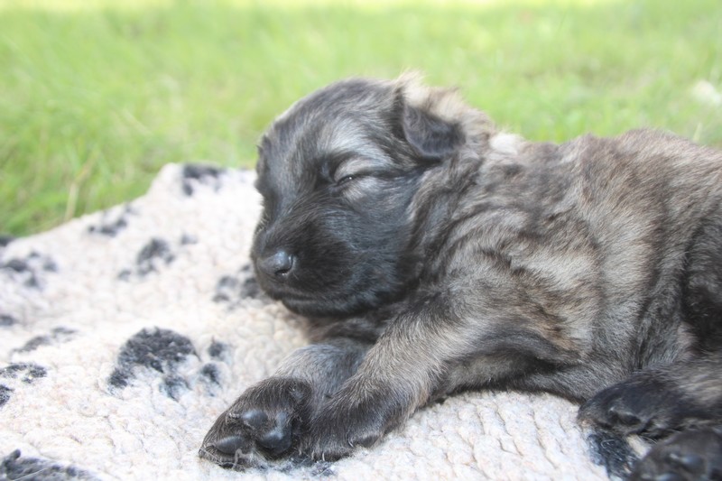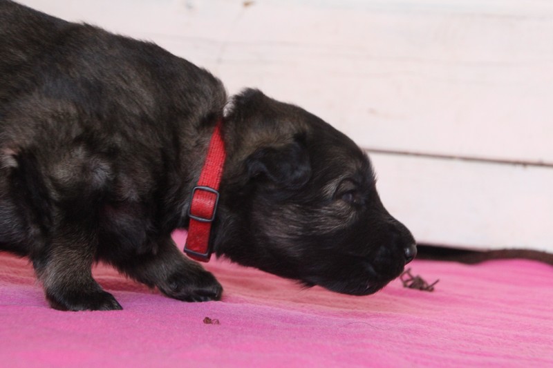 Cela fait 21 jours que nous sommes sortis du ventre de maman et tous nos sens commencent à être en éveils, pour la vue ce n’est pas encore tout à fait cela, mais nous compensons largement avec notre nez. Nous commençons à être déplacés d’un endroit à un autre afin de nous habituer peu à peu à divers environnements, maman est toujours avec nous pour les premières découvertes, c’est bien plus rassurant pour nous. Quelques copains de la meute sont aussi venus nous voir, mais ce n’est pas très drôle, nous avons eu beau chercher, aucun d’entre eux n’ont de lait…