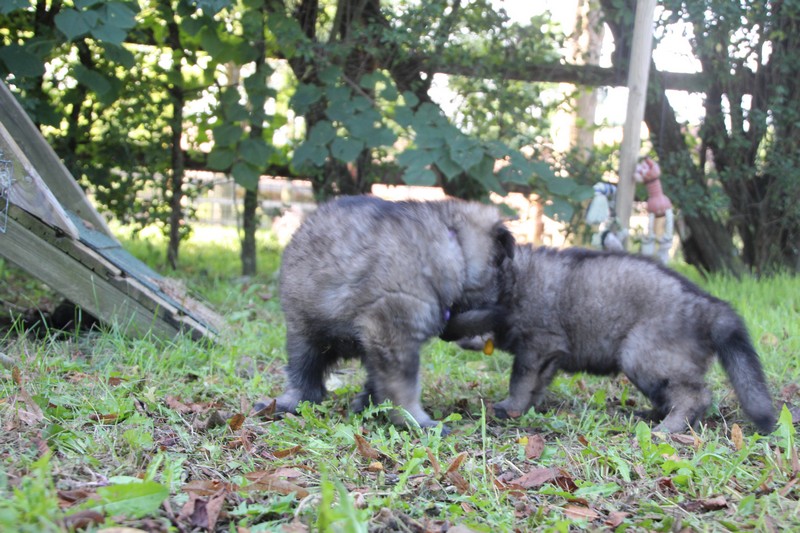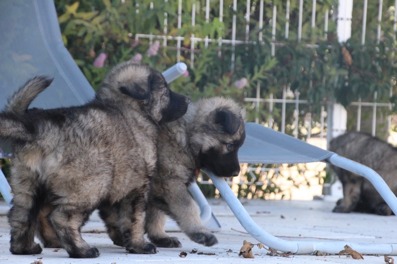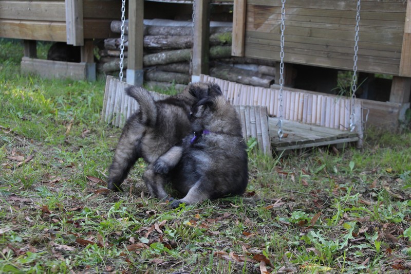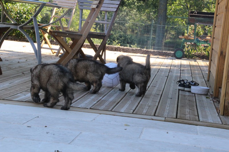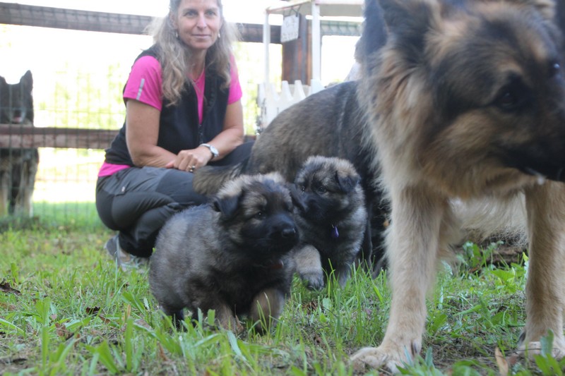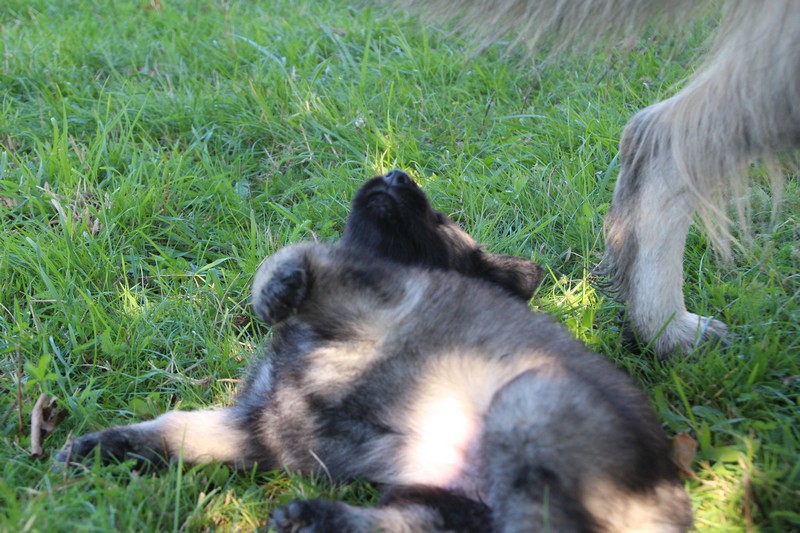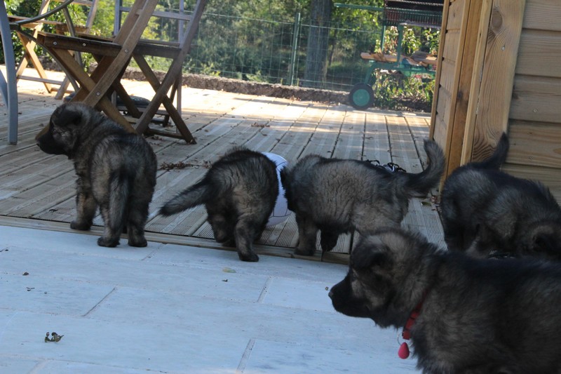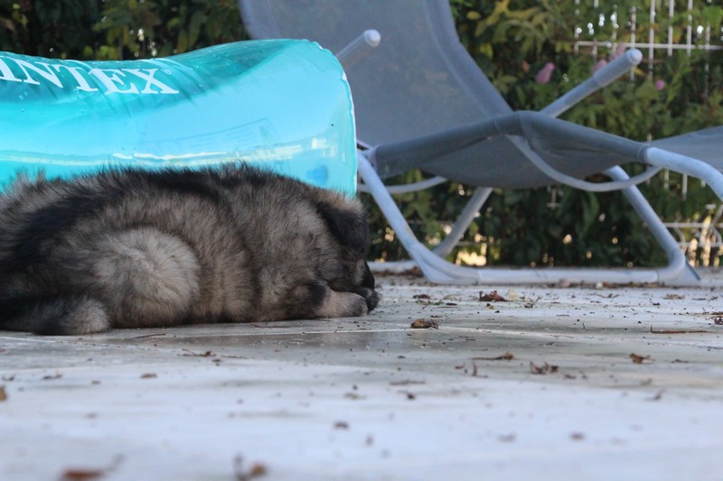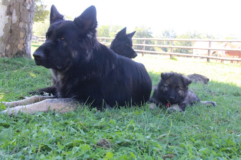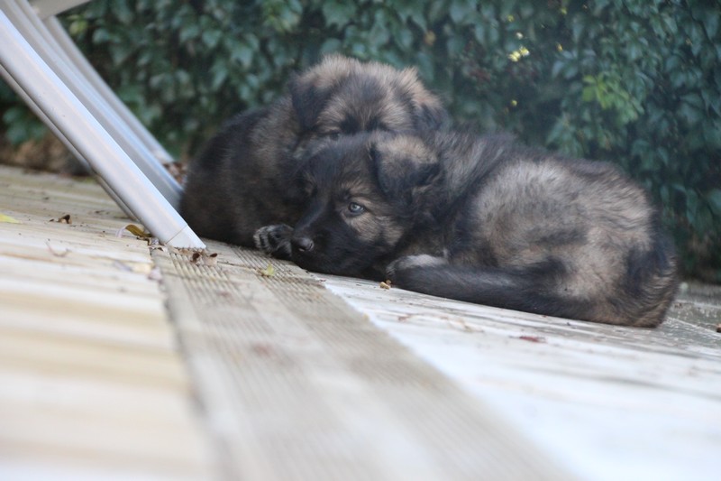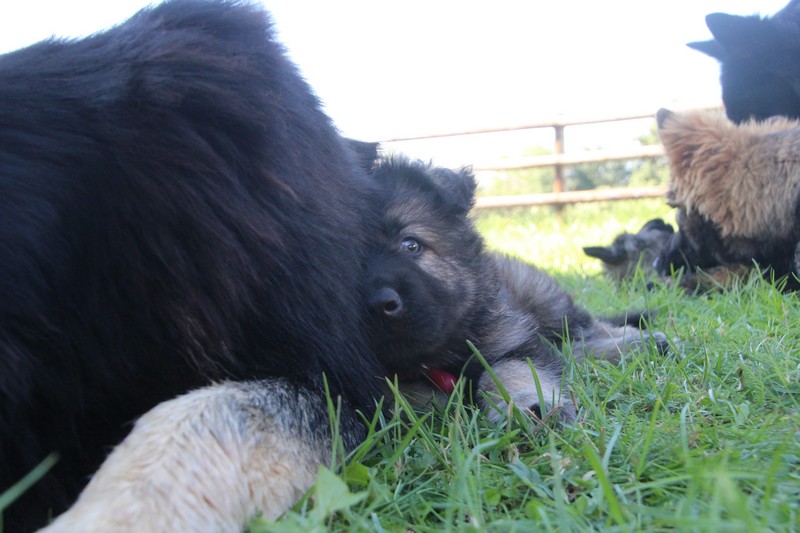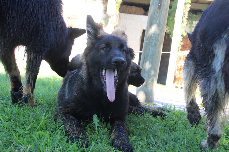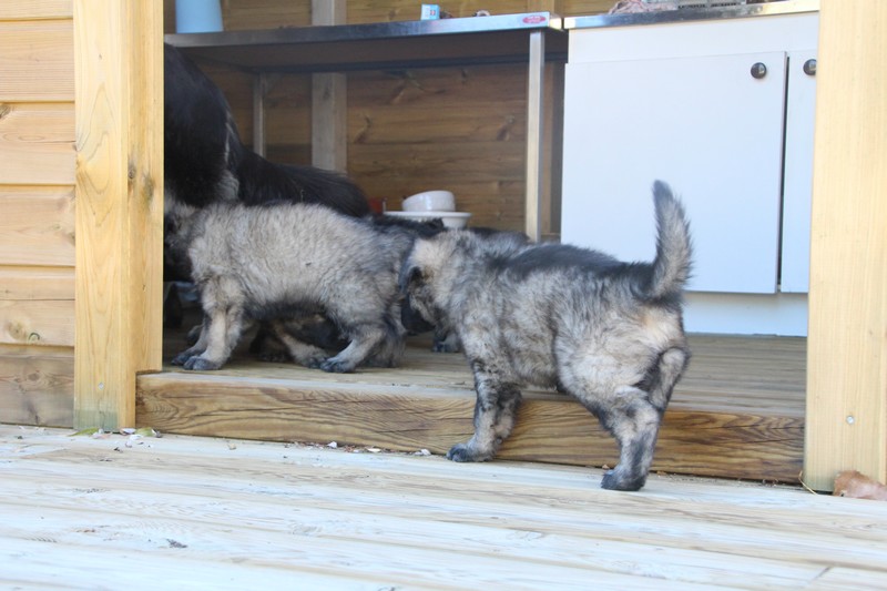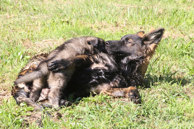 Maman nous a appris à creuser et l’on a vite compris le principe, nous avons eu également la visite de Kwando, un chien qui ne fait pas partie de la meute, un vieux copain de papa. Nous avons testé les divers agrès, mais notre coin préféré reste le tunnel ou nous nous entassons bien au chaud pour dormir.