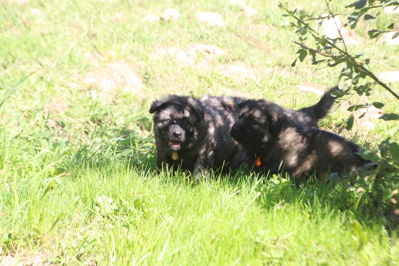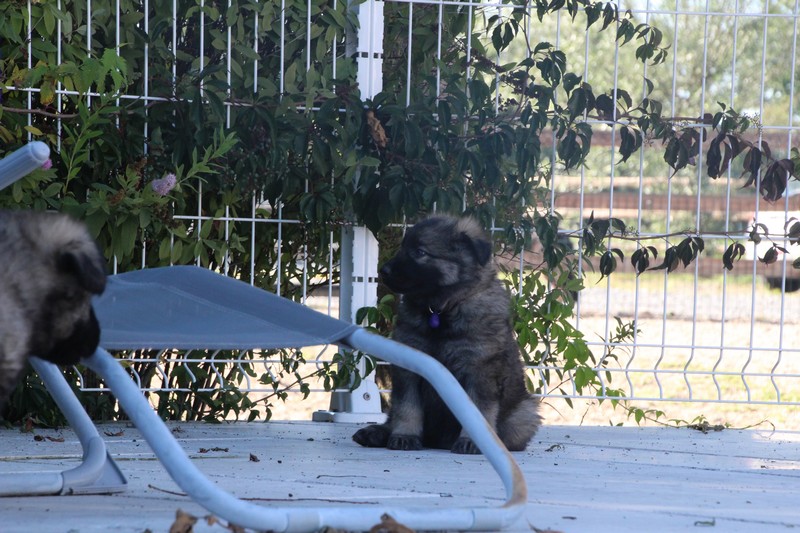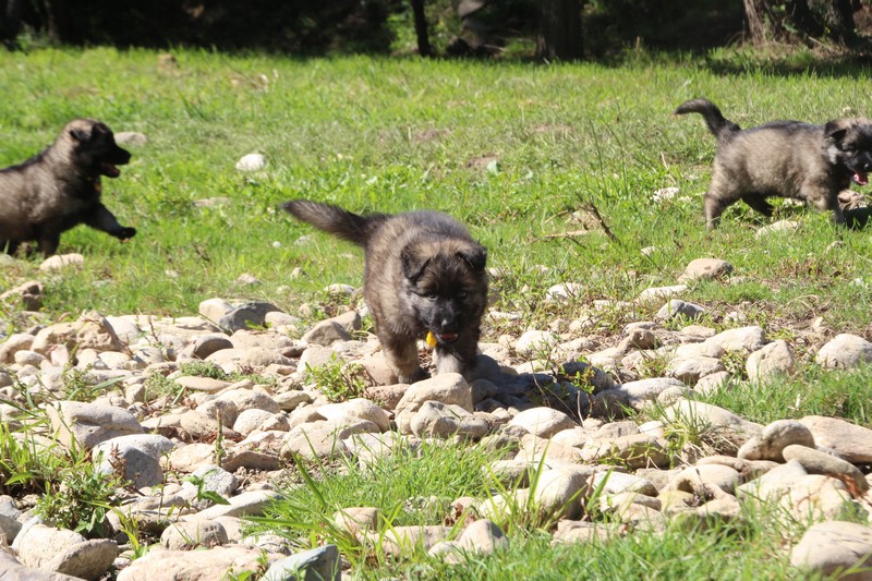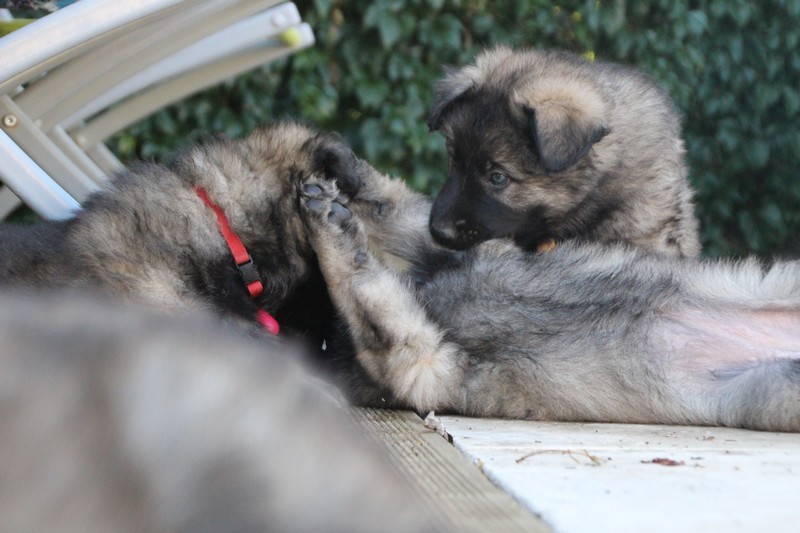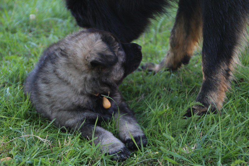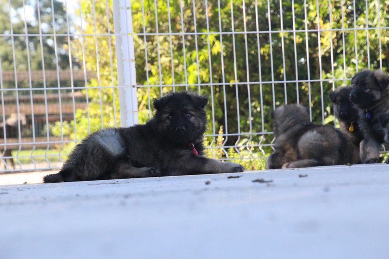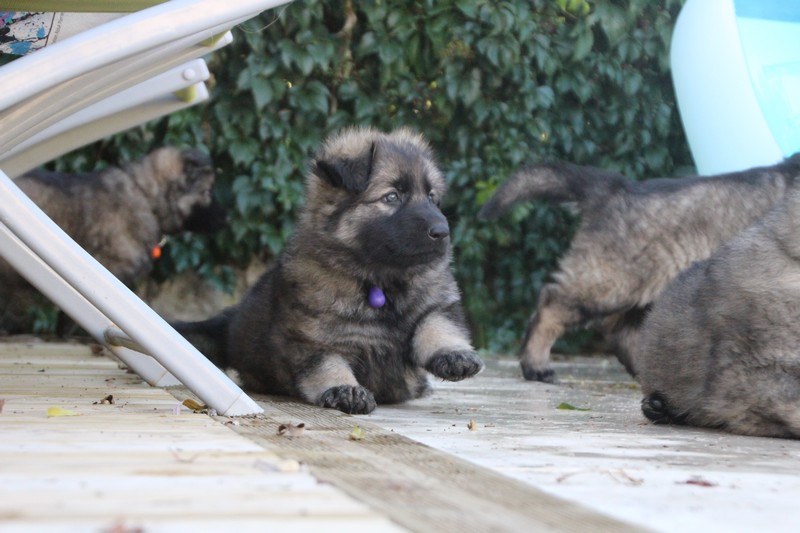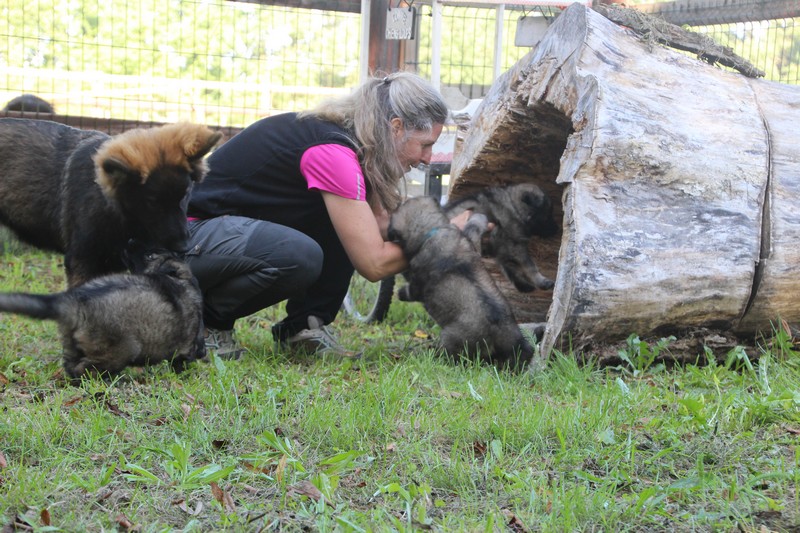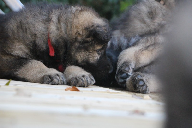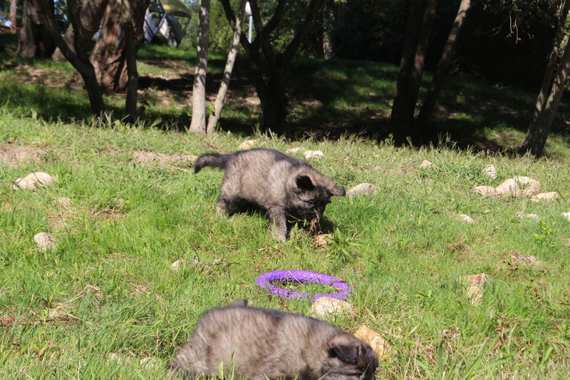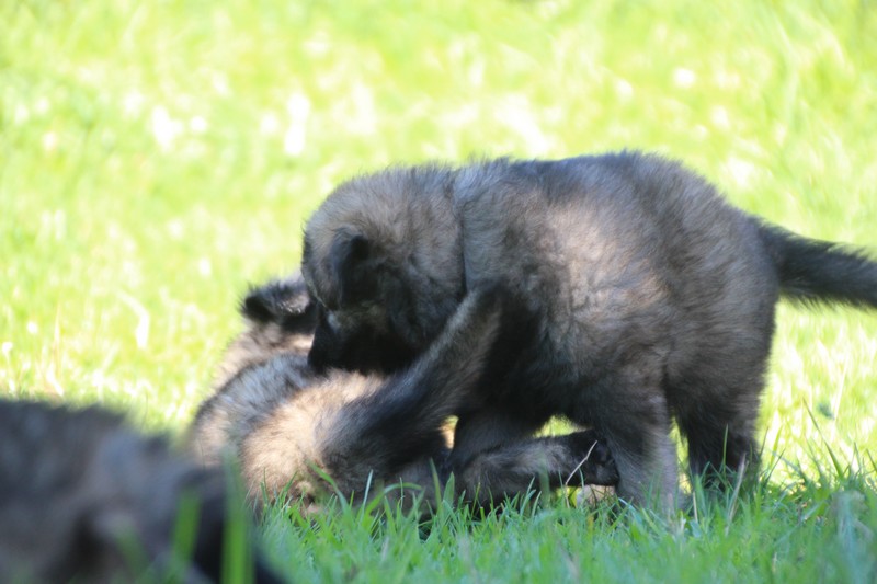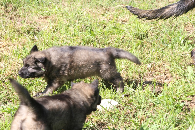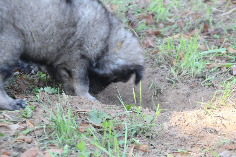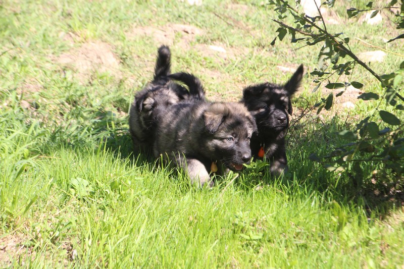 Maman nous a appris à creuser et l’on a vite compris le principe, nous avons eu également la visite de Kwando, un chien qui ne fait pas partie de la meute, un vieux copain de papa. Nous avons testé les divers agrès, mais notre coin préféré reste le tunnel ou nous nous entassons bien au chaud pour dormir.