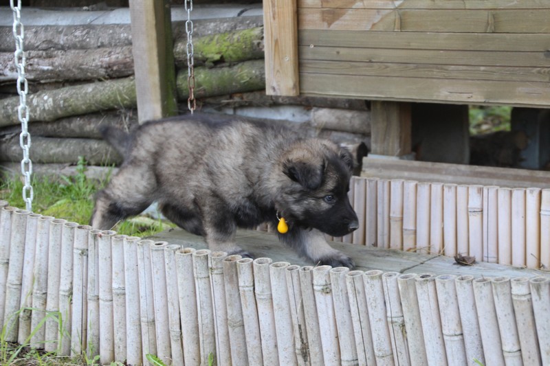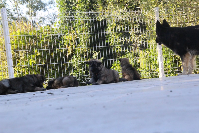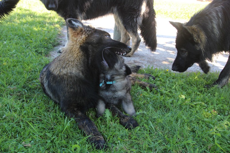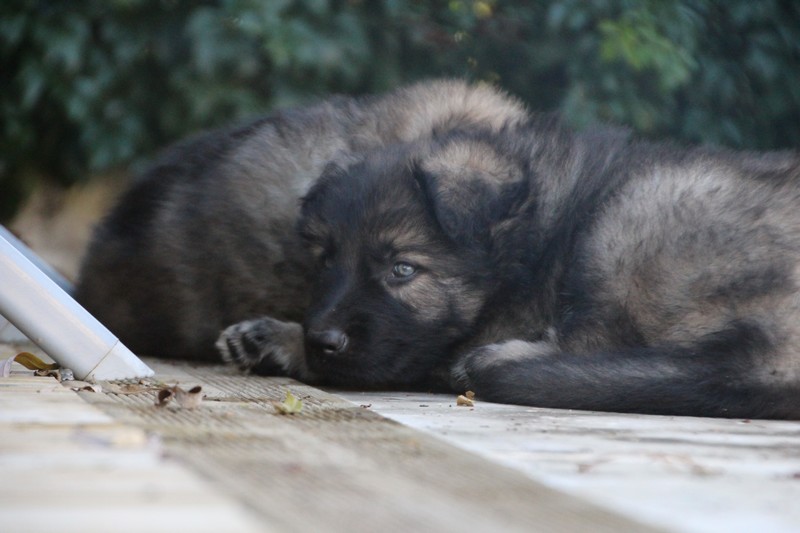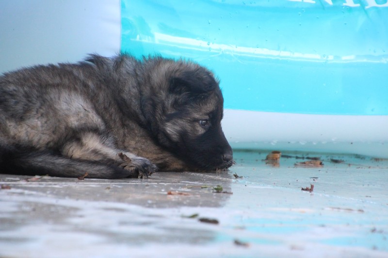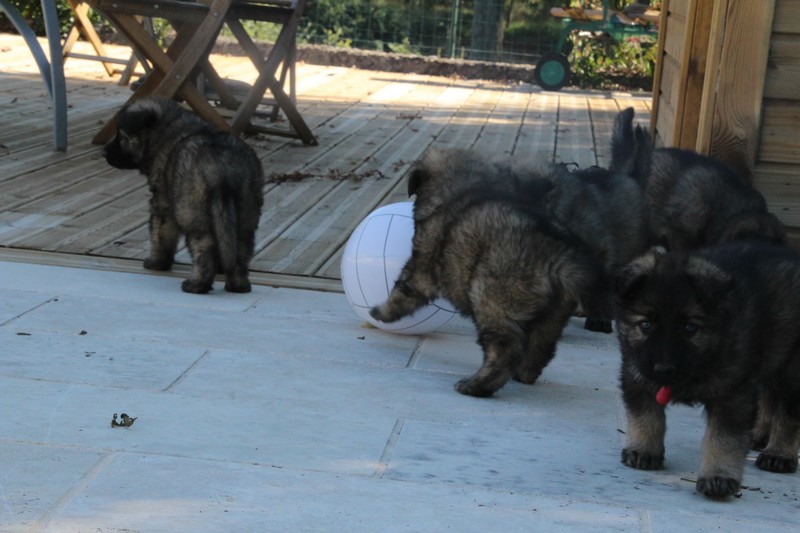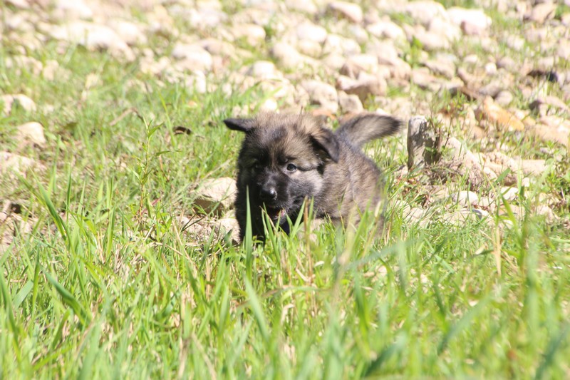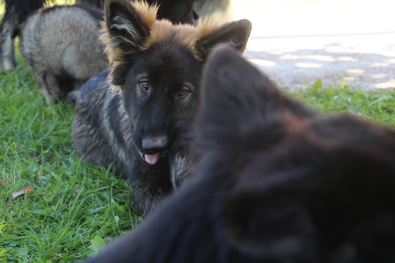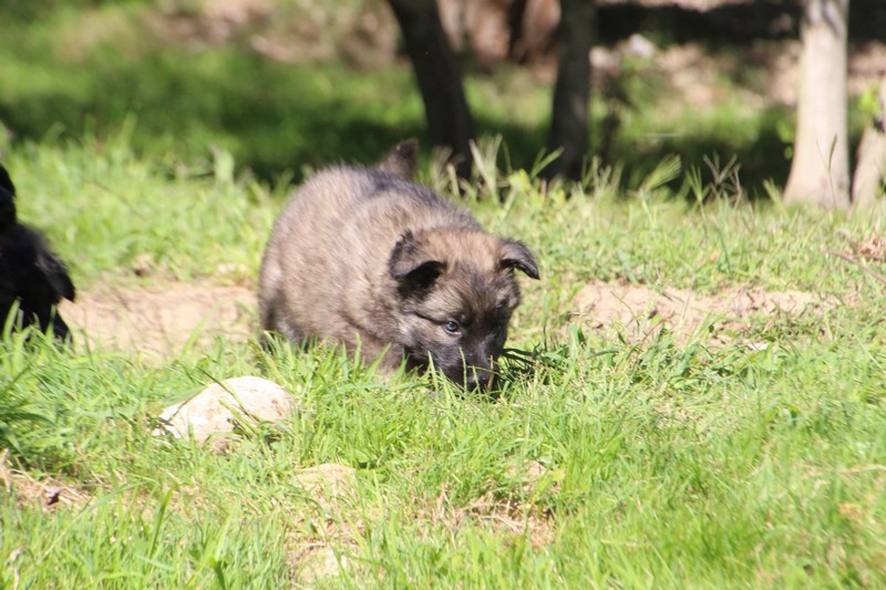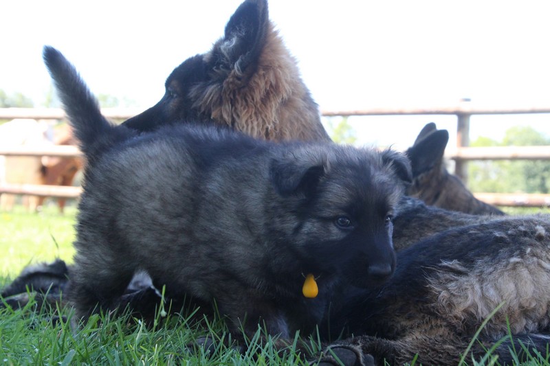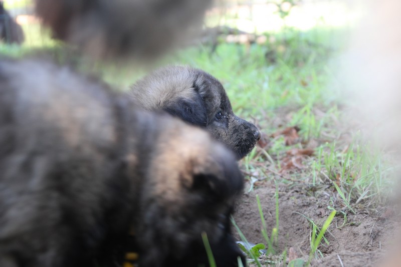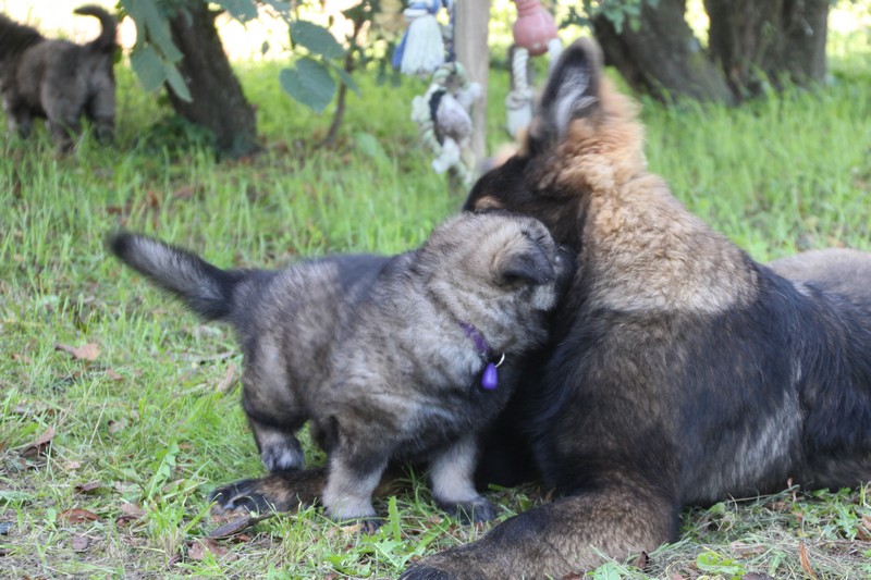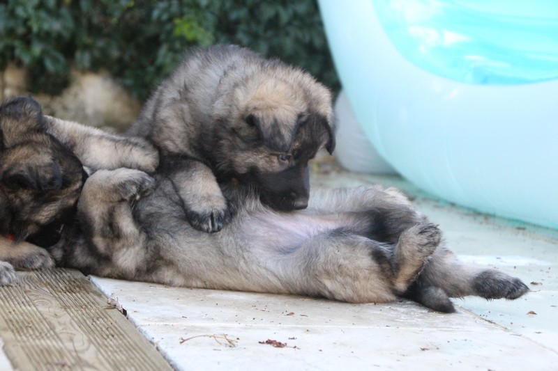Maman nous a appris à creuser et l’on a vite compris le principe, nous avons eu également la visite de Kwando, un chien qui ne fait pas partie de la meute, un vieux copain de papa. Nous avons testé les divers agrès, mais notre coin préféré reste le tunnel ou nous nous entassons bien au chaud pour dormir.