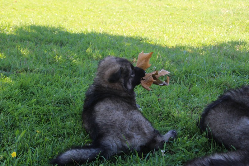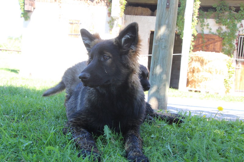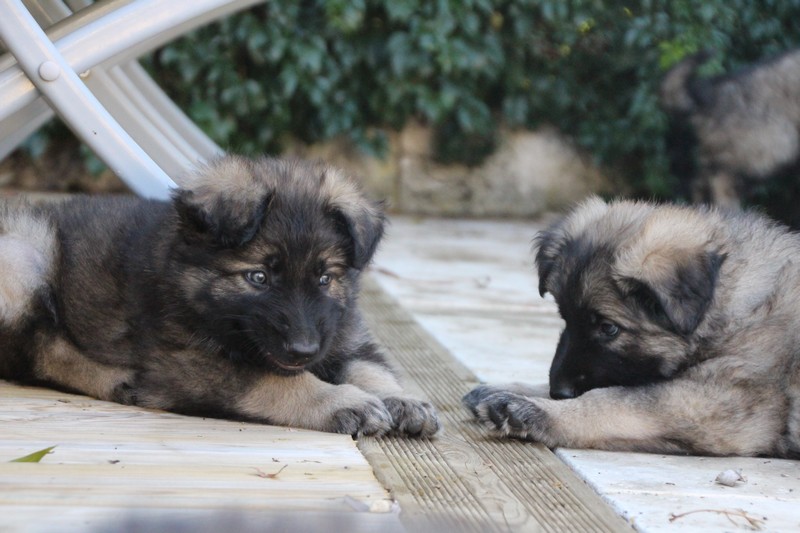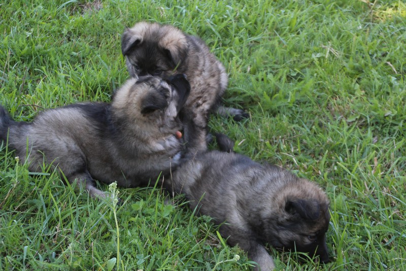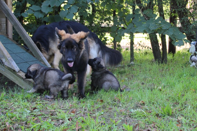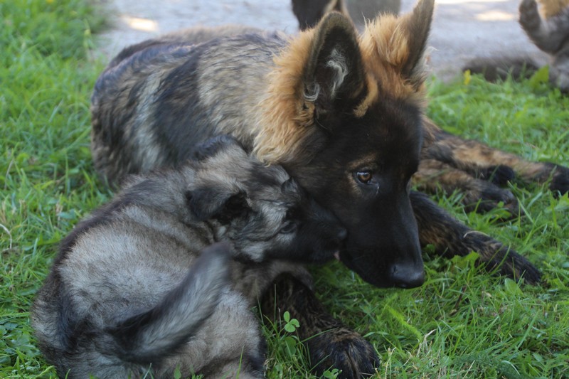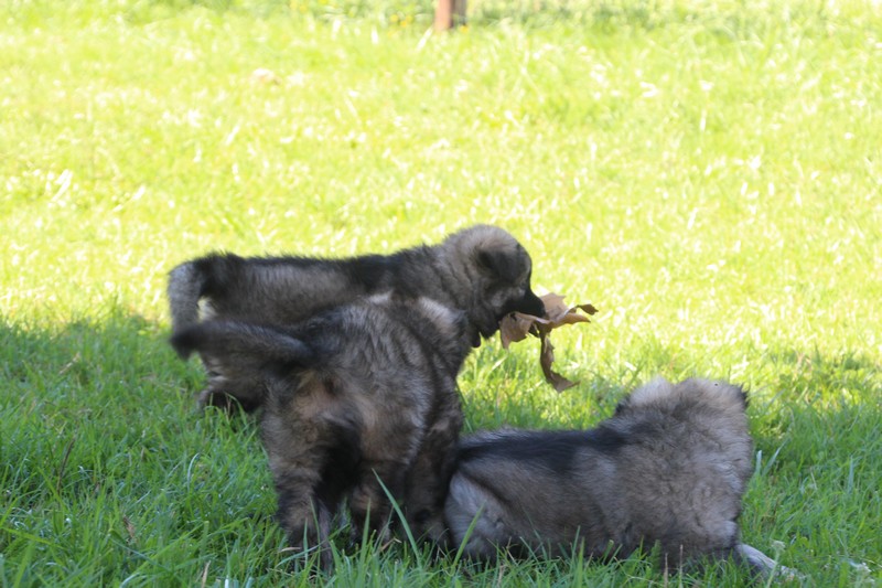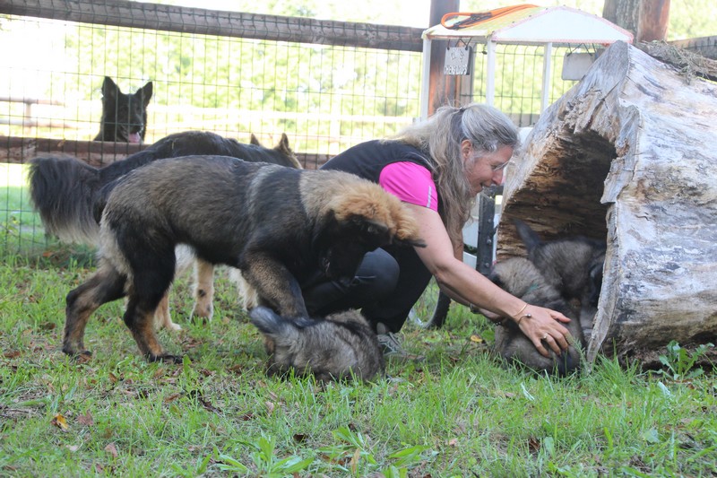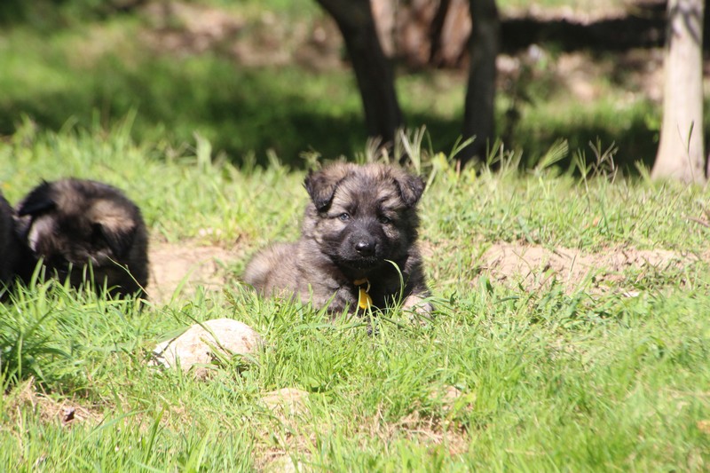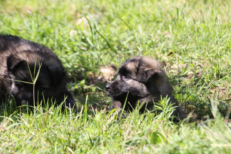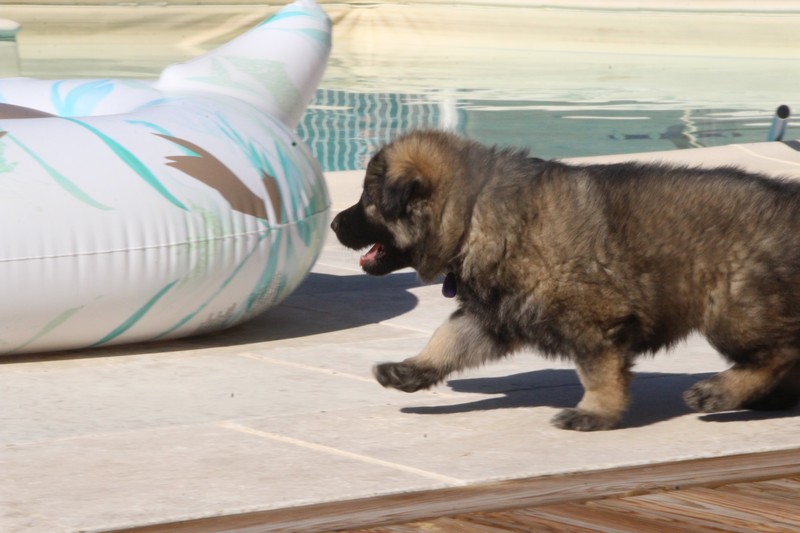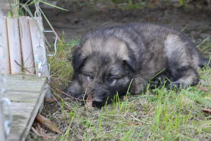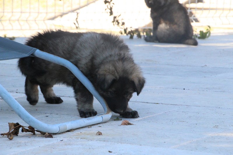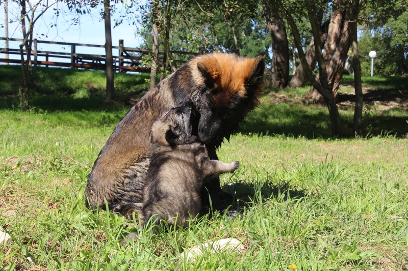 Maman nous a appris à creuser et l’on a vite compris le principe, nous avons eu également la visite de Kwando, un chien qui ne fait pas partie de la meute, un vieux copain de papa. Nous avons testé les divers agrès, mais notre coin préféré reste le tunnel ou nous nous entassons bien au chaud pour dormir.