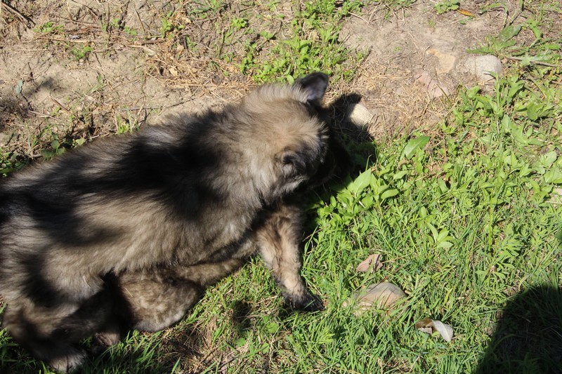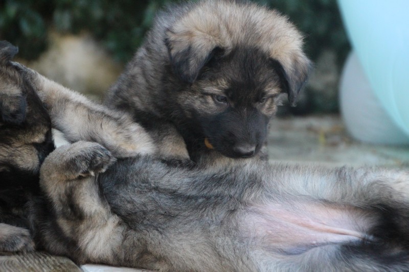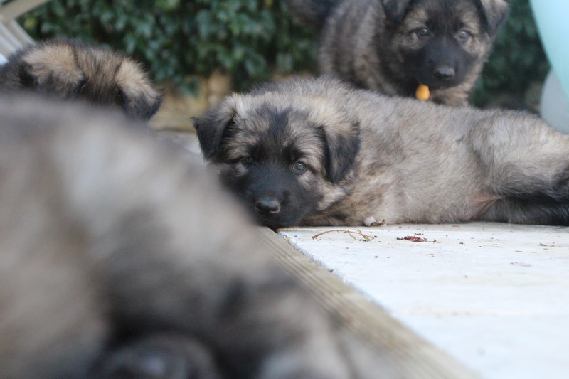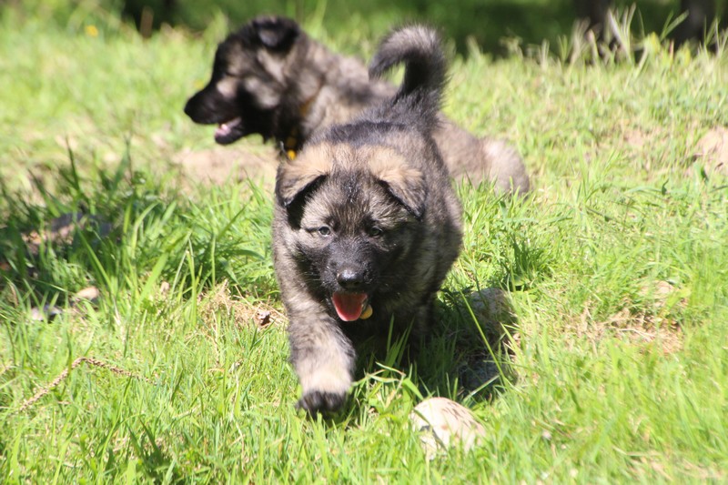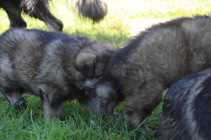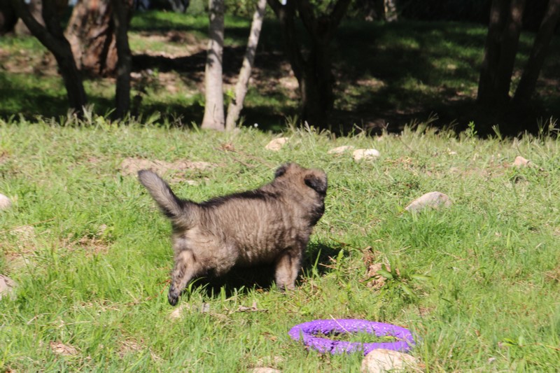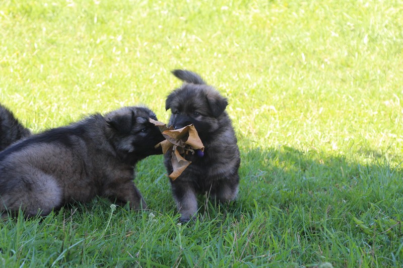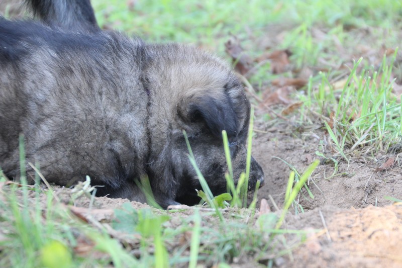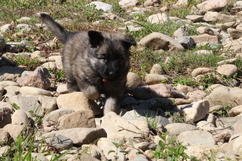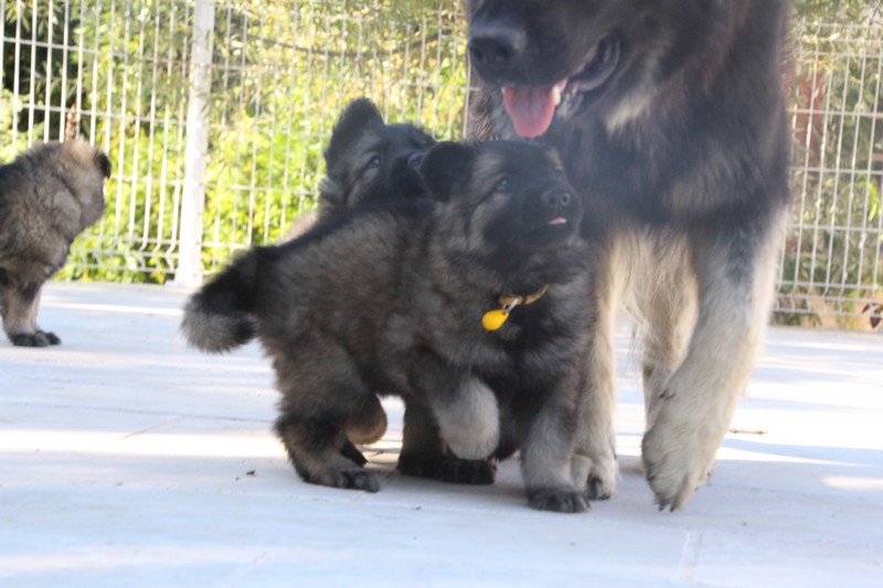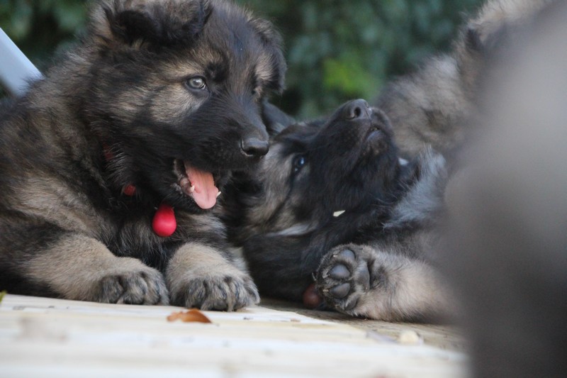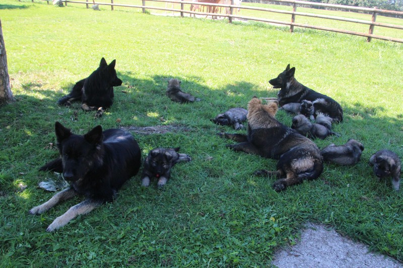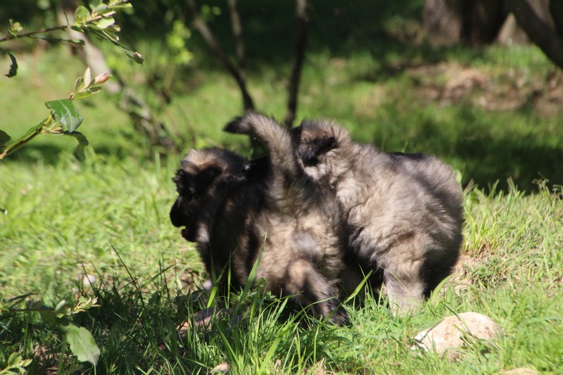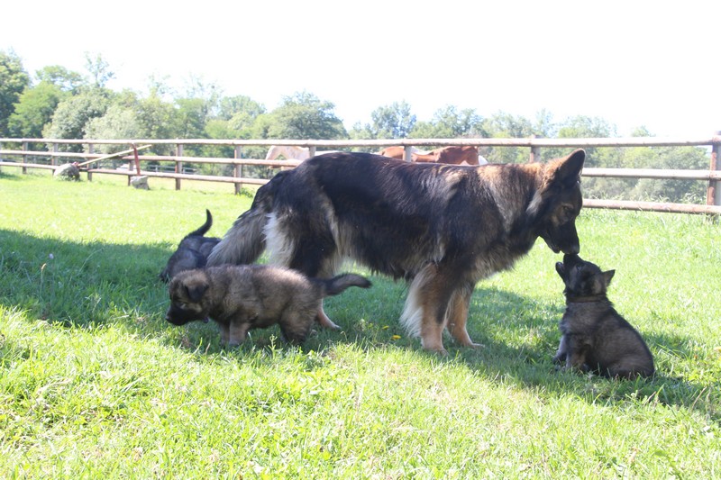 Maman nous a appris à creuser et l’on a vite compris le principe, nous avons eu également la visite de Kwando, un chien qui ne fait pas partie de la meute, un vieux copain de papa. Nous avons testé les divers agrès, mais notre coin préféré reste le tunnel ou nous nous entassons bien au chaud pour dormir.