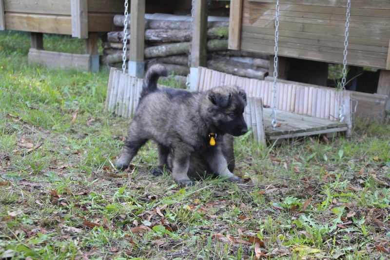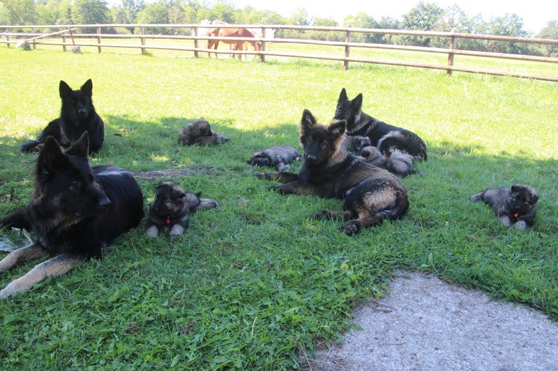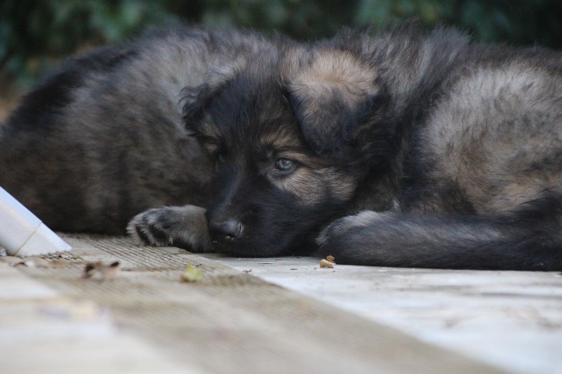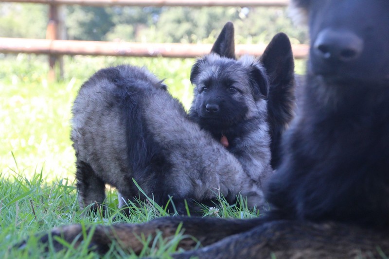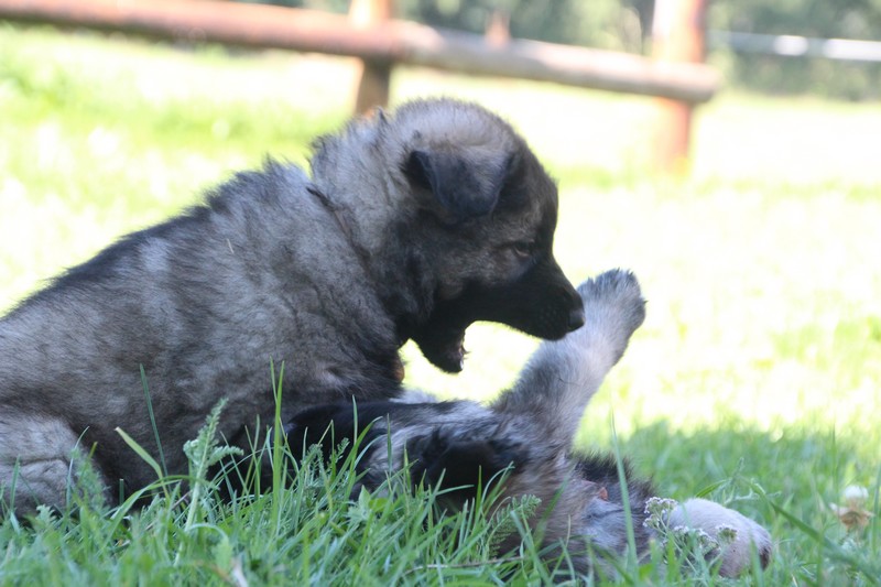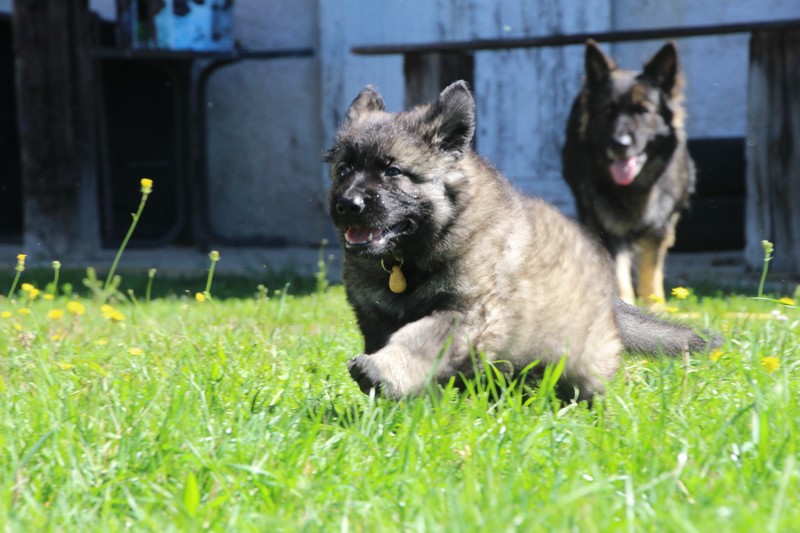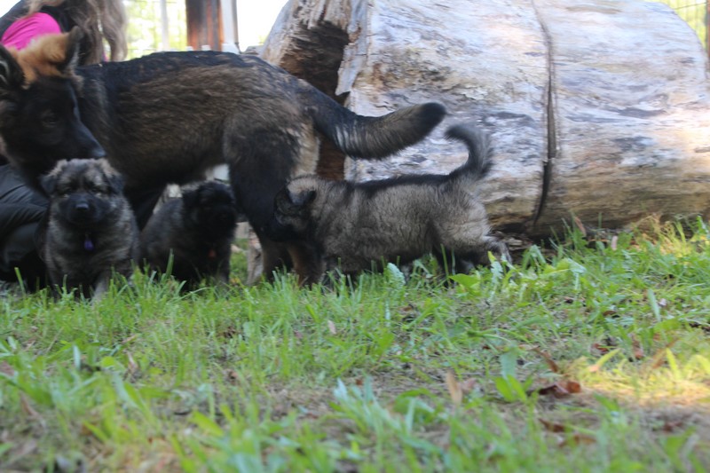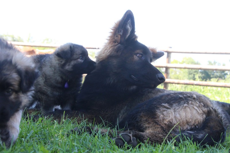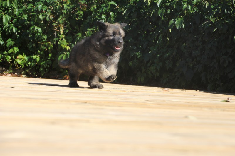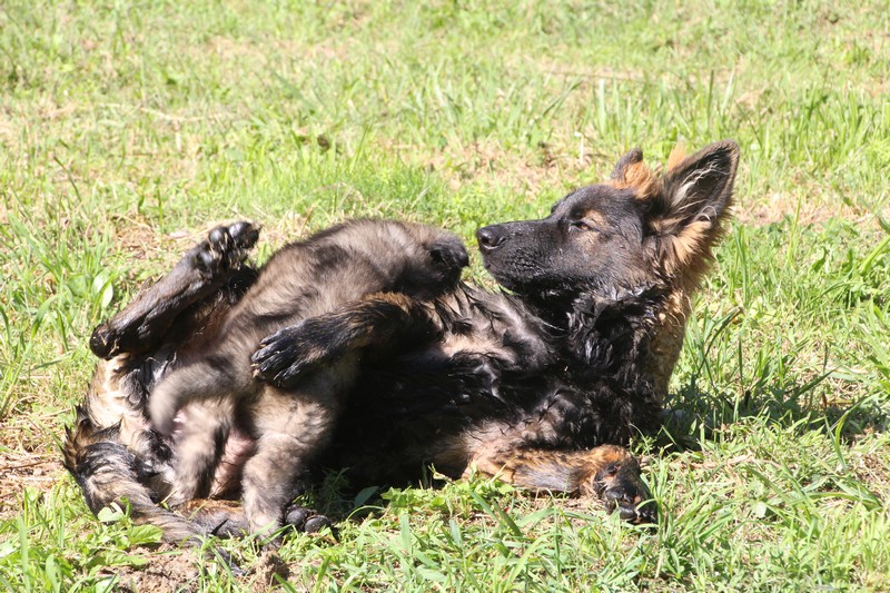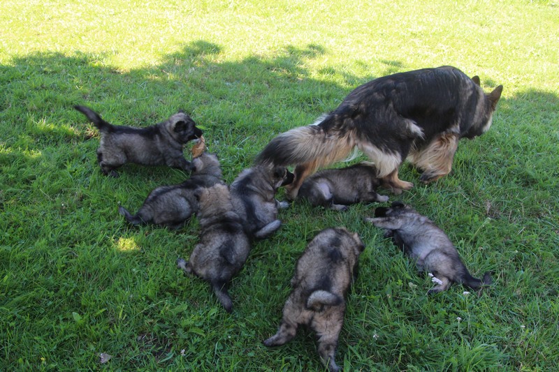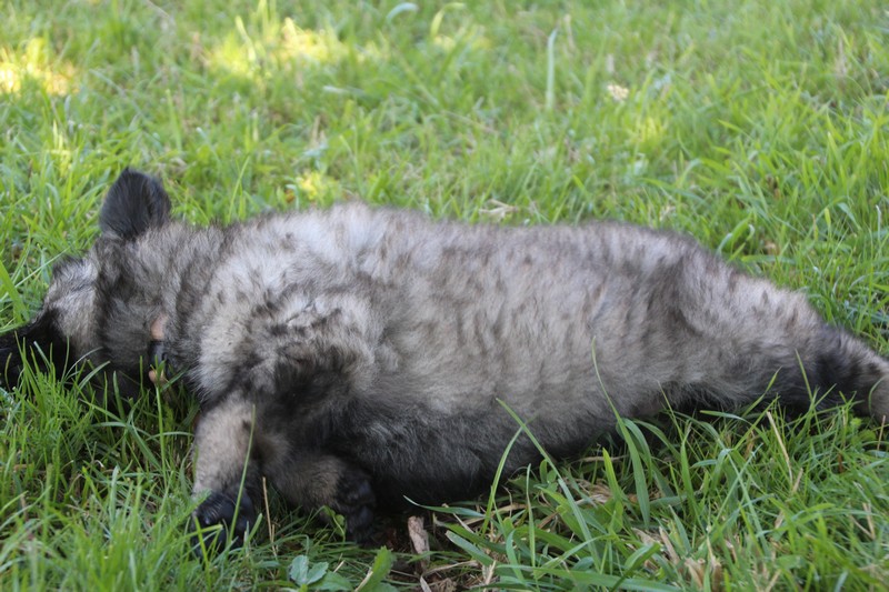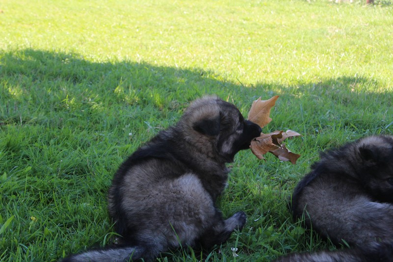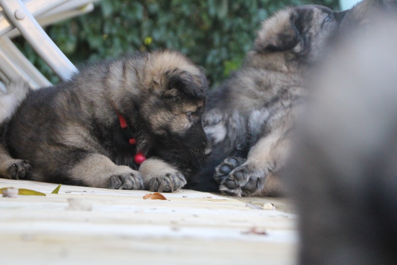 Maman nous a appris à creuser et l’on a vite compris le principe, nous avons eu également la visite de Kwando, un chien qui ne fait pas partie de la meute, un vieux copain de papa. Nous avons testé les divers agrès, mais notre coin préféré reste le tunnel ou nous nous entassons bien au chaud pour dormir.