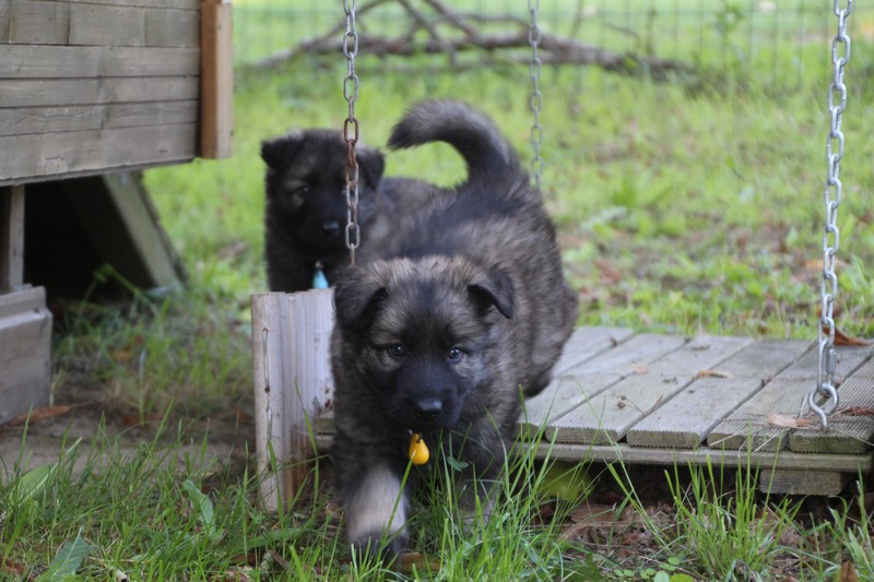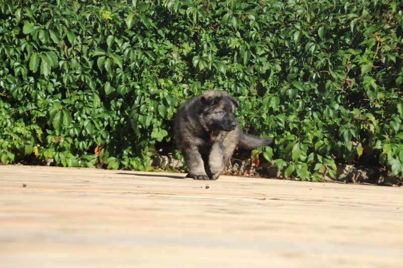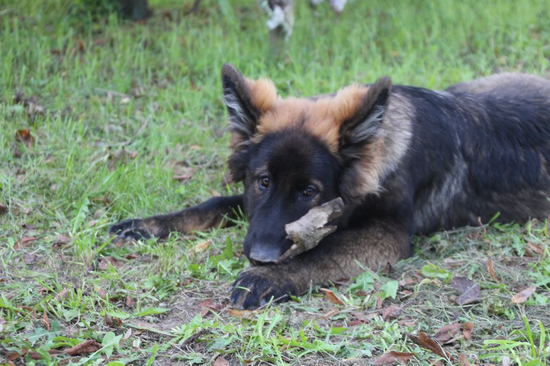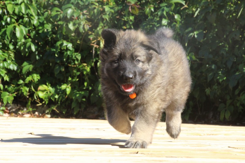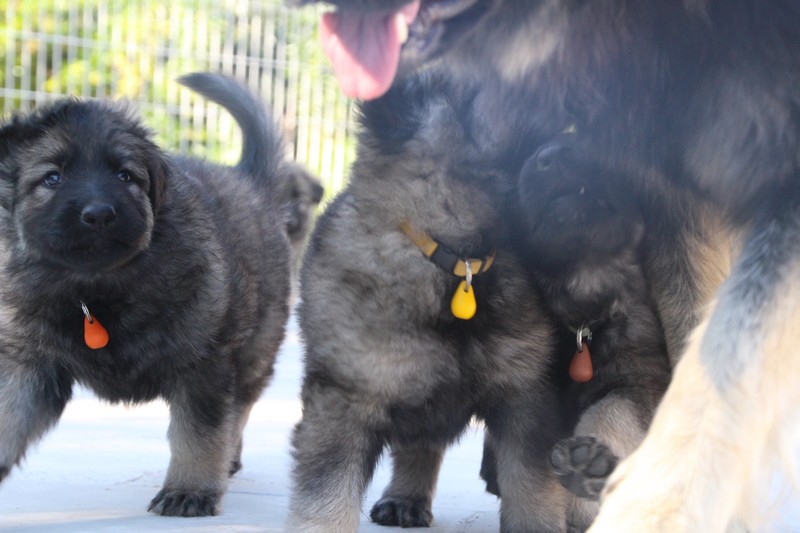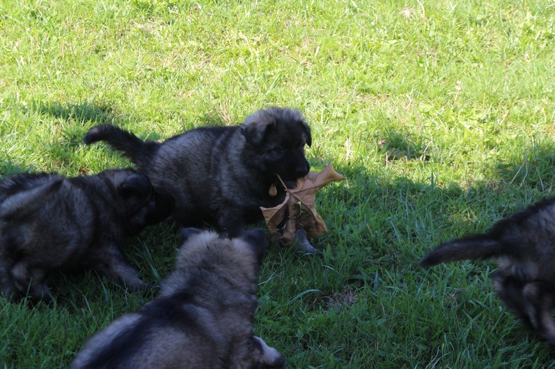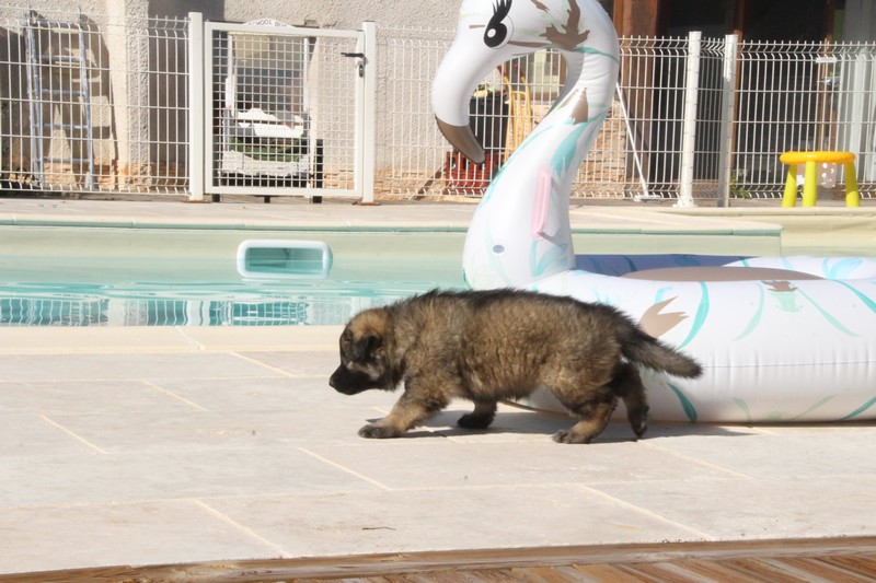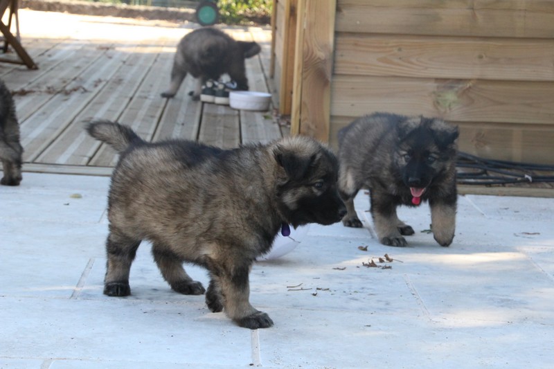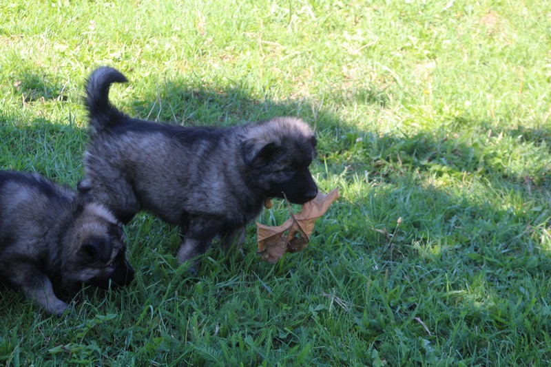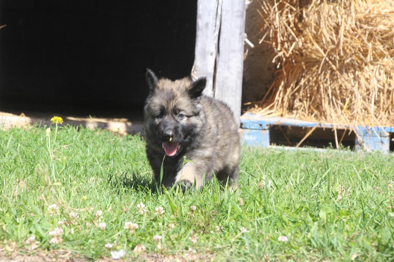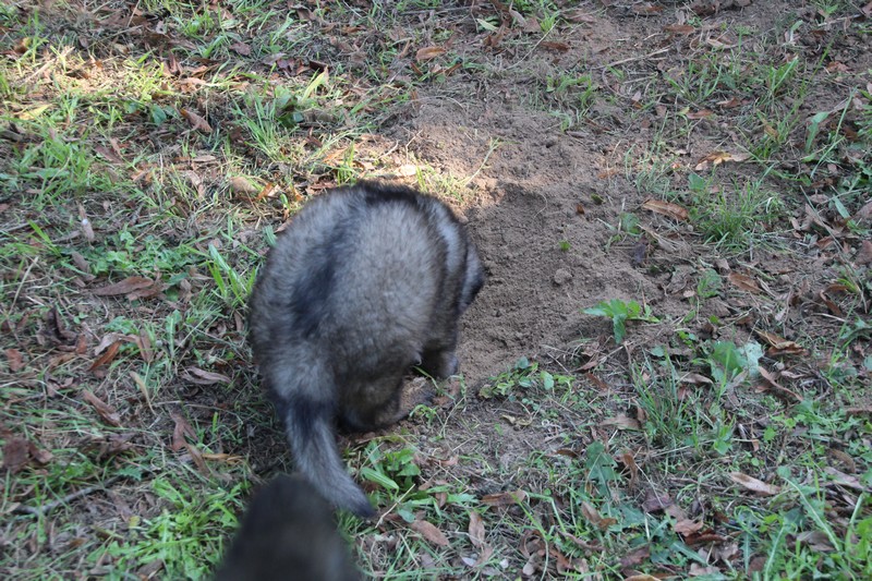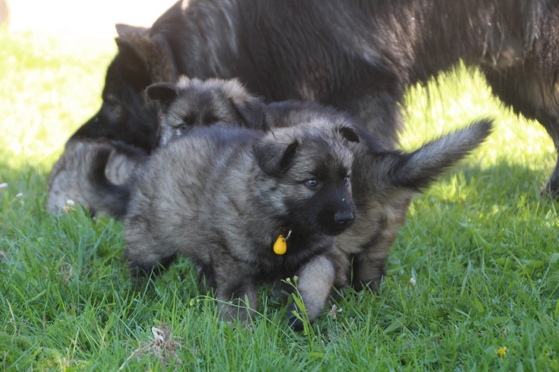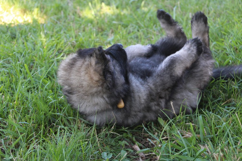 Maman nous a appris à creuser et l’on a vite compris le principe, nous avons eu également la visite de Kwando, un chien qui ne fait pas partie de la meute, un vieux copain de papa. Nous avons testé les divers agrès, mais notre coin préféré reste le tunnel ou nous nous entassons bien au chaud pour dormir.
