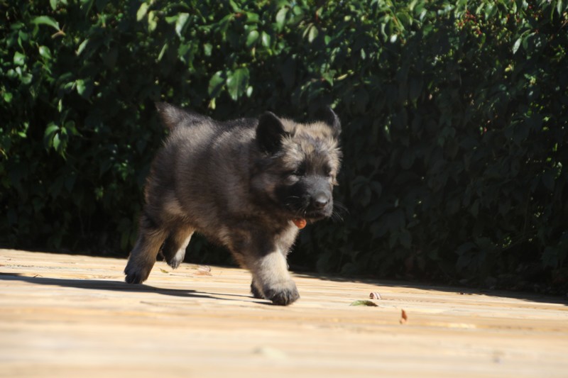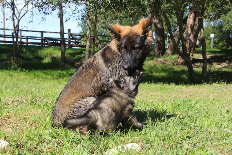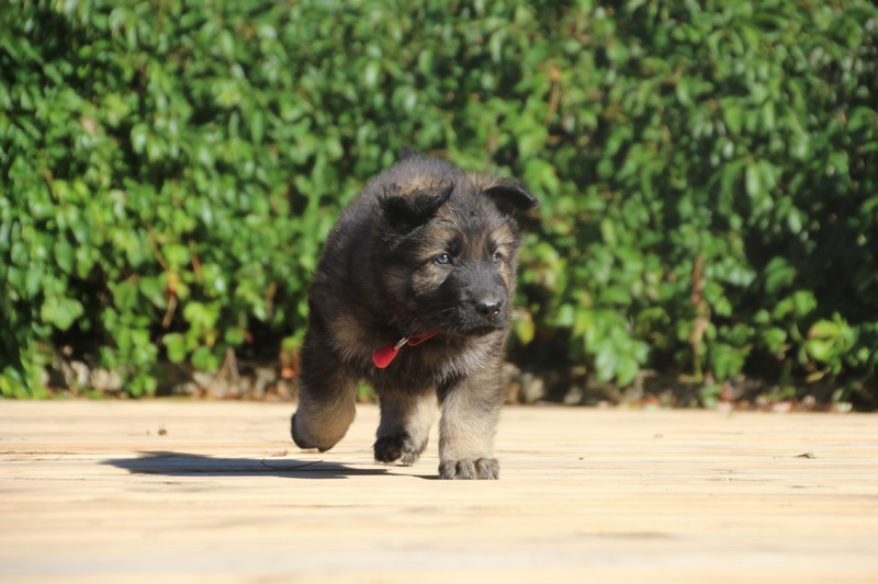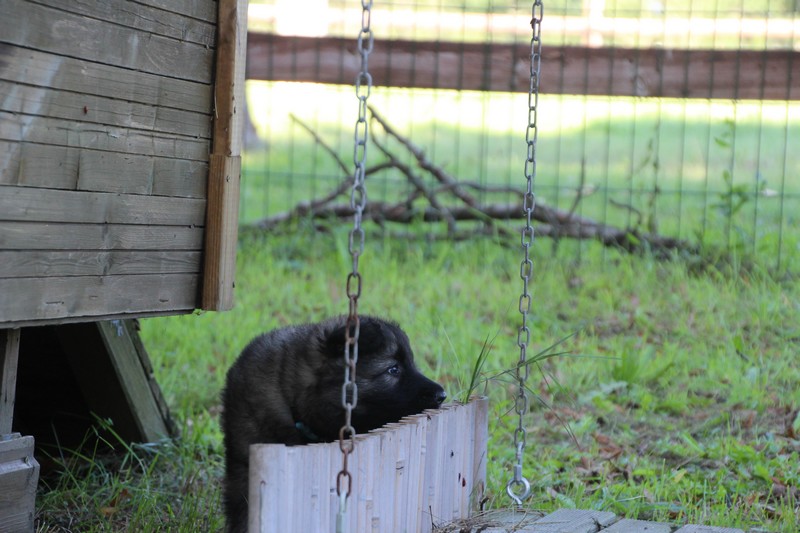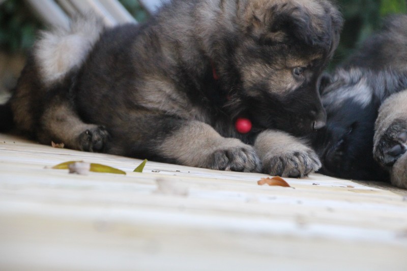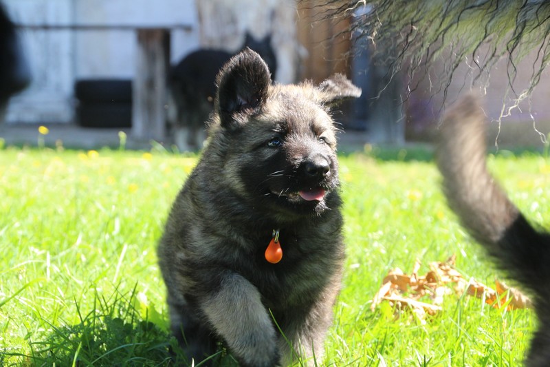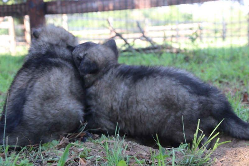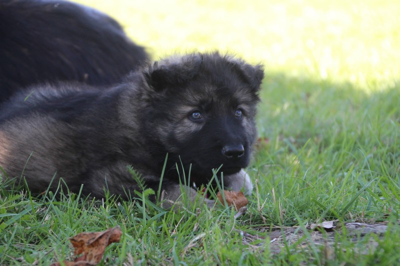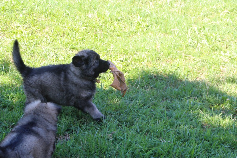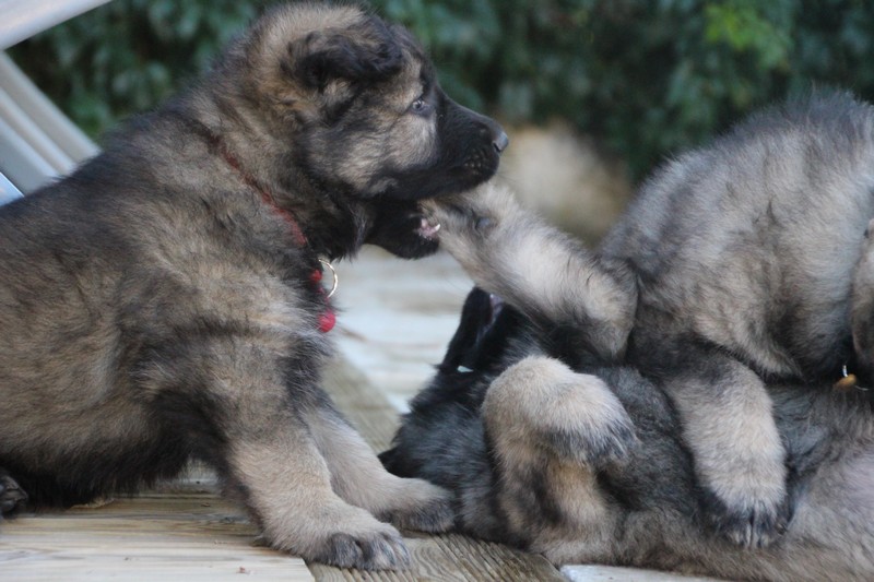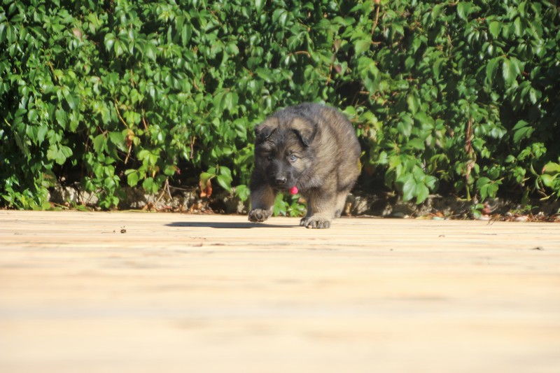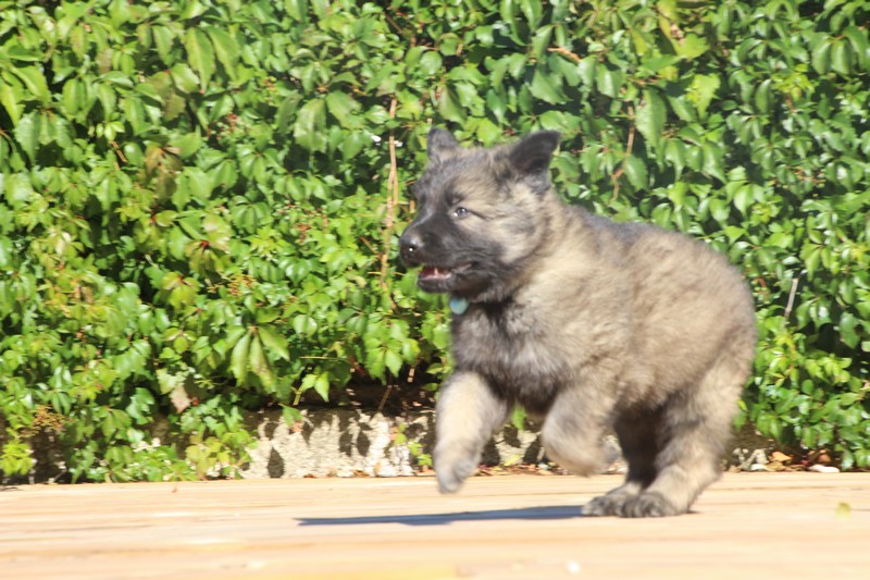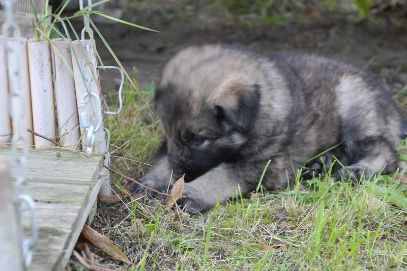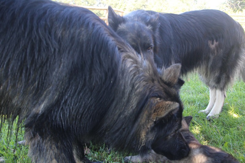 Maman nous a appris à creuser et l’on a vite compris le principe, nous avons eu également la visite de Kwando, un chien qui ne fait pas partie de la meute, un vieux copain de papa. Nous avons testé les divers agrès, mais notre coin préféré reste le tunnel ou nous nous entassons bien au chaud pour dormir.