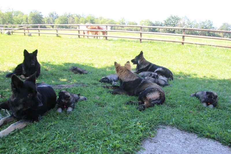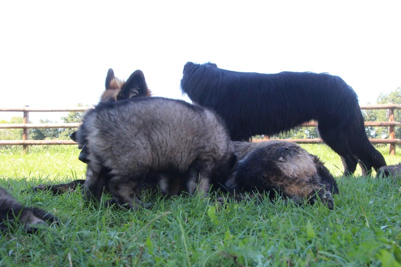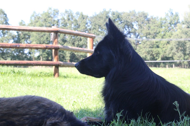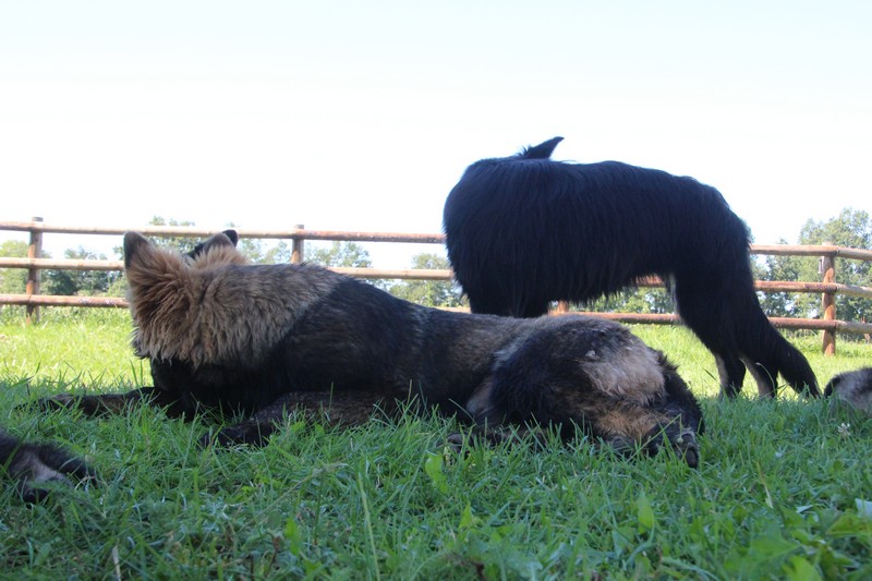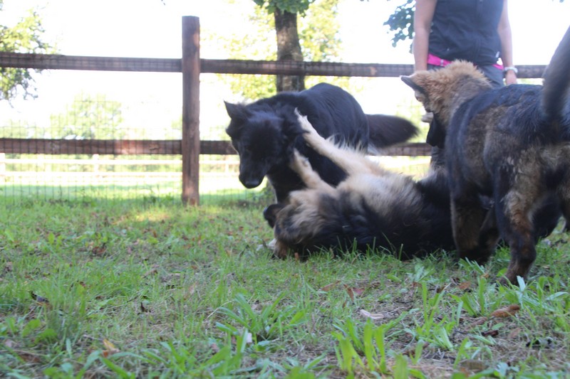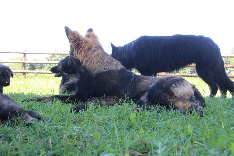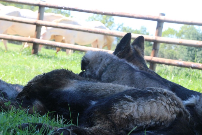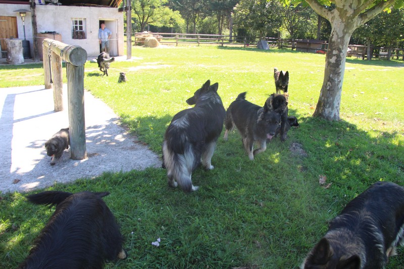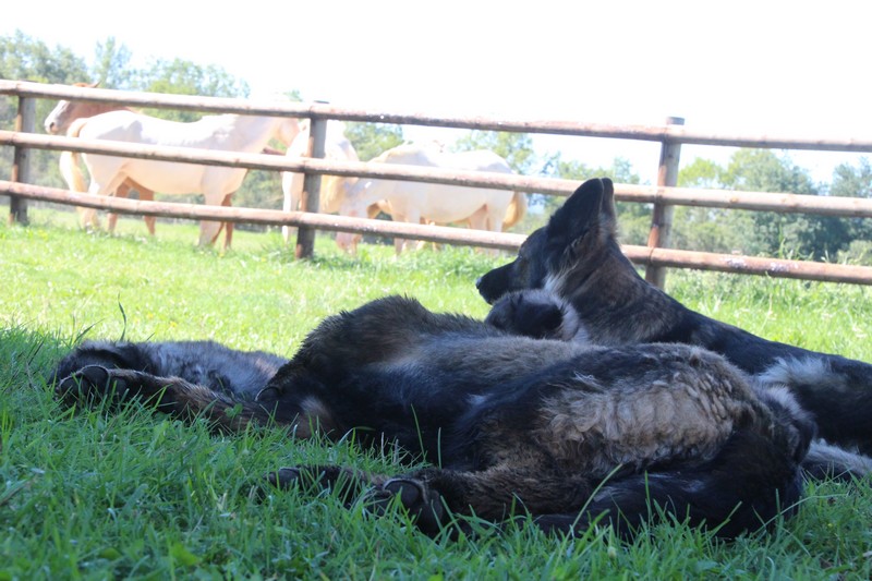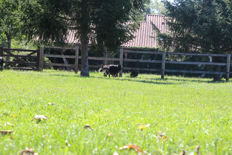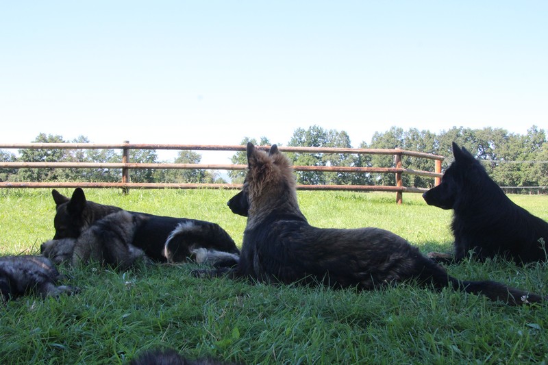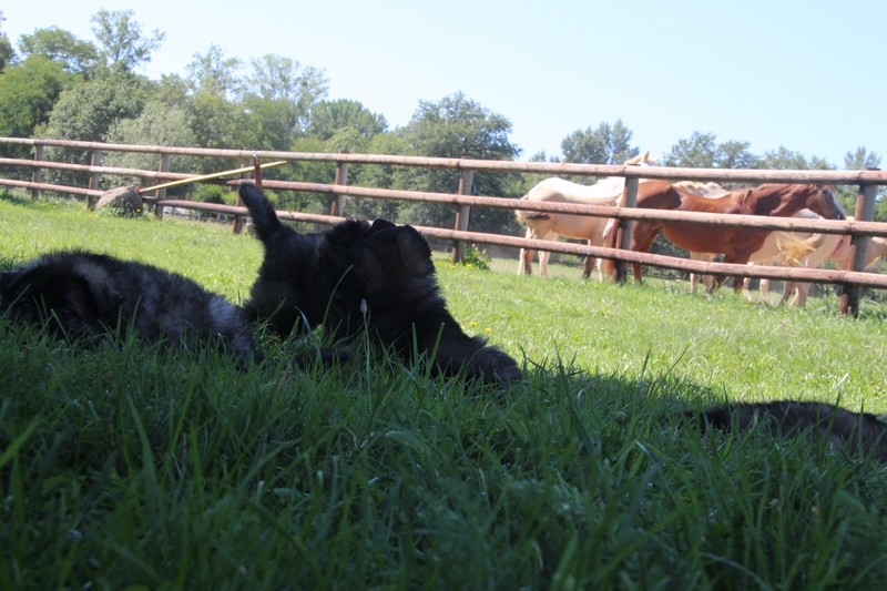 Découverte des boxes, toujours avec la meute. Un long moment à explorer l’environnement, bien que nous sommes plus du genre pot de colle et avons apprécié de rester coucher sous l’arbre.